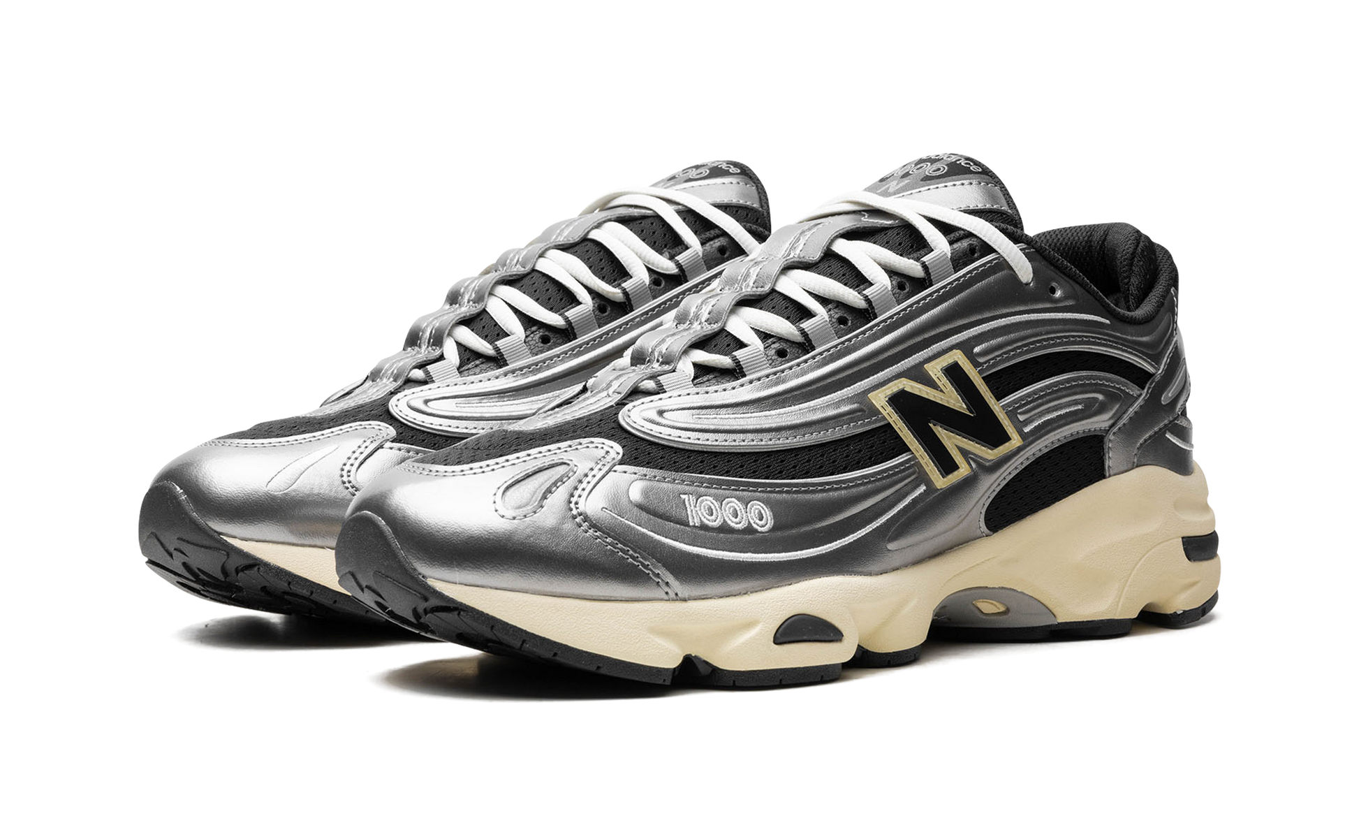 The New Balance 1000 "Silver Metallic" is the modern reissue of the shoe that debuted in 1999. Brought back by New Balance “Made in USAâ€?Creative Director Teddy Santis in 2024. the New Balance 1000 has a retro yet futuristic appearance. The upper has a black mesh base and sleek Silver Metallic leather overlays. A black “Nâ€?logo with yellow trim appears on the sides and a â€?000â€?logo can be found on the lateral side of the forefoot. “New Balance 1000â€?branding appears on the tongue and heel. A cream-colored foam midsole gives the shoe a decidedly vintage look. Release date: April 24. 2024
