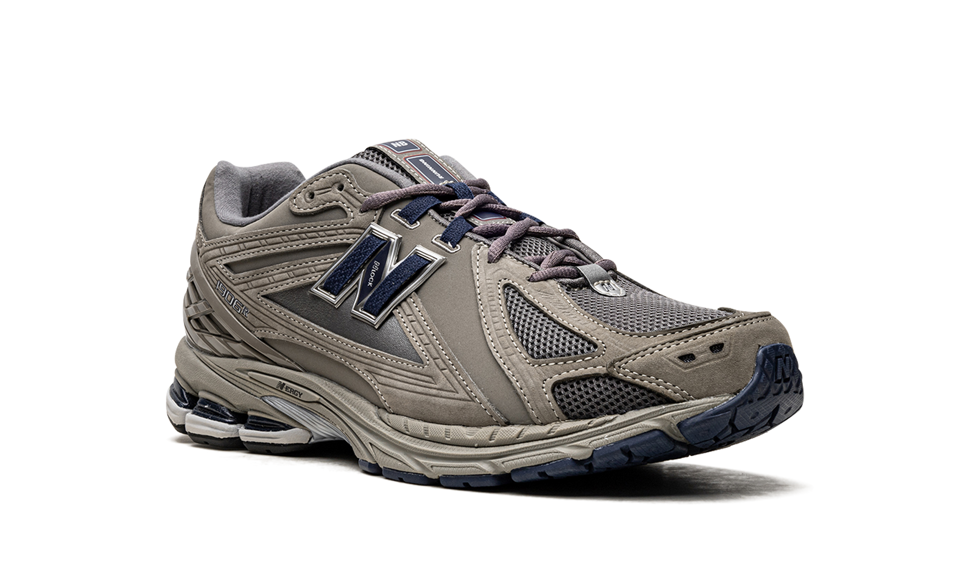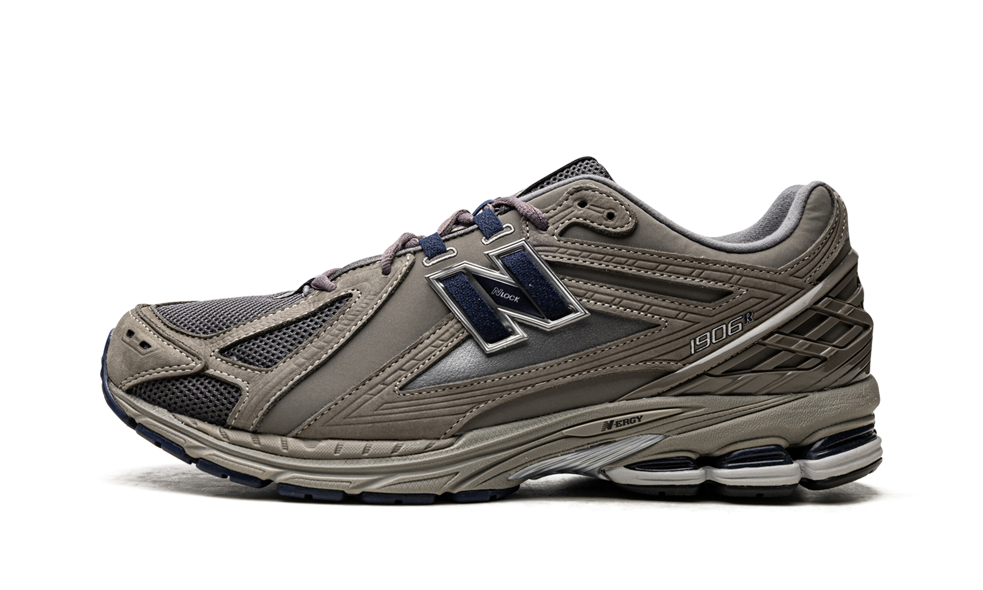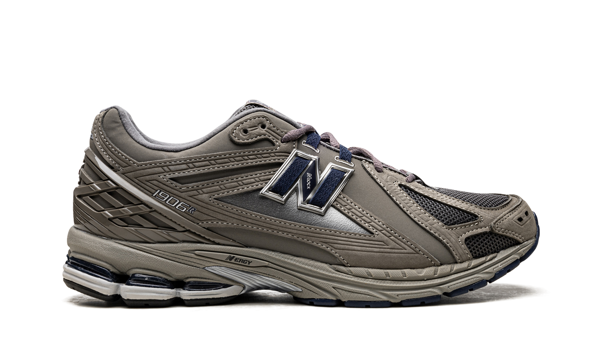 The New Balance 1906R “Castlerock/Natural Indigoâ€?is a versatile colorway of the popular lifestyle shoe. Loosely inspired by the New Balance 2002R. the 1906R features a future-forward appearance and a comfortable fit. The shoe is complete with what New Balance is calling a Natural Indigo mesh base. Contrasting dark grey or Castlerock overlays are found throughout the upper. including on the plastic heel counter that helps stabilize the wearer's foot. A navy “Nâ€?logo with grey trim appears on either side. The shoe rides on an “N-ERGYâ€?foam sole.