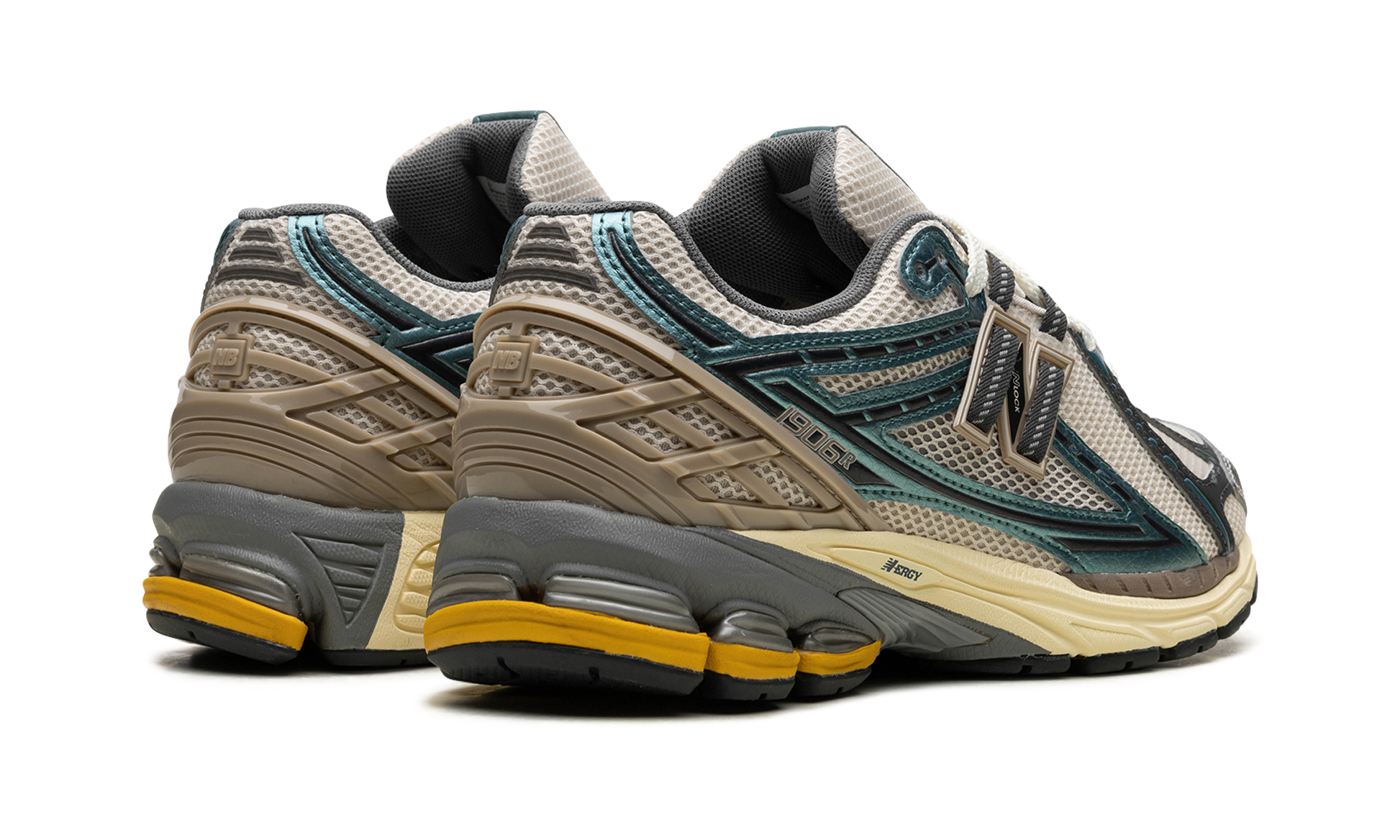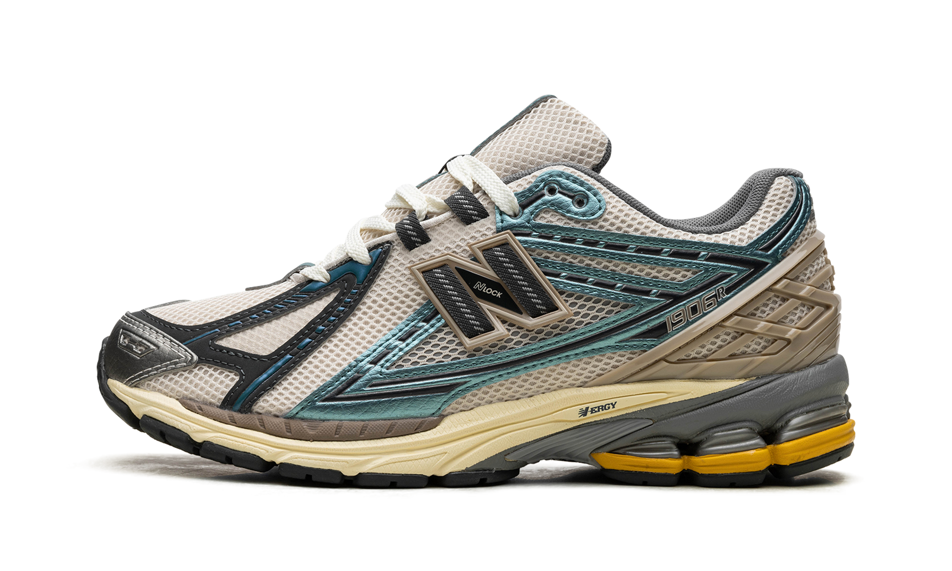 The New Balance 1906R “New Spruceâ€?is another unique colorway of the retro performance running shoe by the Boston shoe brand. The New Balance 1906R in “Spruceâ€?features an off white open mesh construction with New Spruce metallic synthetic leather overlays. A tan plastic heel counter can be found on the back of the shoe. while a tan “Nâ€?appears on either side. Underfoot. an N-ERGY cushioned midsole provides enhanced comfort.