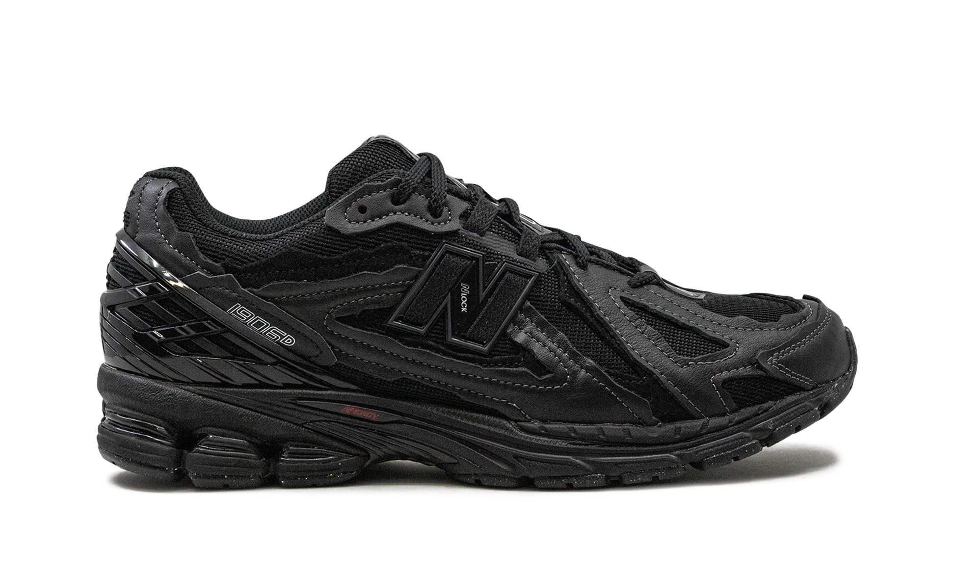 The New Balance 1906R "Protection Pack - Black/Silver Metallic/Crimsonâ€?is a mostly monochromatic black colorway of the casual shoe. Debuted back in 2010. the 1906R's design is inspired by retro running shoes from the early 2000s. On the “Black/Silver Metallic/Crimsonâ€?colorway. the model undergoes an almost all-black redesign. The shoe features a black mesh base with “rippedâ€?tonal leather overlays throughout. The “Nâ€?branding on the sides has been colored in black to give the shoe a shadowy look. as has the black plastic heel counter that helps stabilize the wearer's foot. Underfoot. the shoe is mounted on an “N-ERGYâ€?foam sole. Release date: July 22. 2023