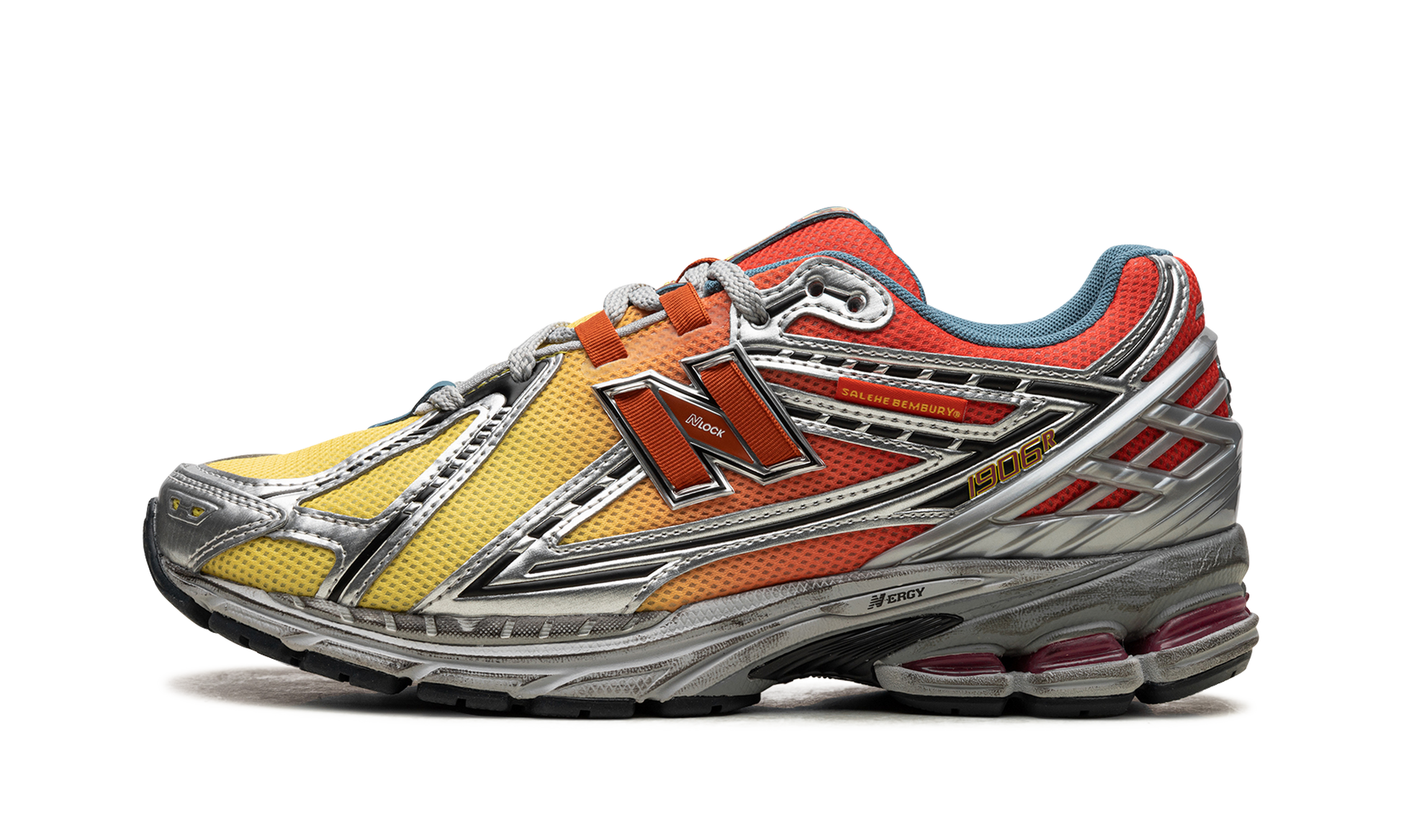 The Salehe Bembury x New Balance 1906R “Heat Be Hot - Lavaâ€?is a collaboration by the acclaimed footwear designer on a fiery colorway of the lifestyle shoe. Inspired by 2000s-era performance running sneakers. the New Balance 1906R has both a retro and contemporary design. and here. Salehe Bembury modifies its appearance with details emulating the lava pantone. The shoe features flashy metallic silver overlays on a gradient. yellow. orange. and red mesh base. An orange “Nâ€?logo appears on the sides. while Salehe's signature branding is found on the orange tab on the lateral side of the collar. Underfoot. the shoe's techy-looking N-ergy foam midsole has ash-like black accenting to complete the shoe's volcano-inspired motif. Release date: January 11. 2024