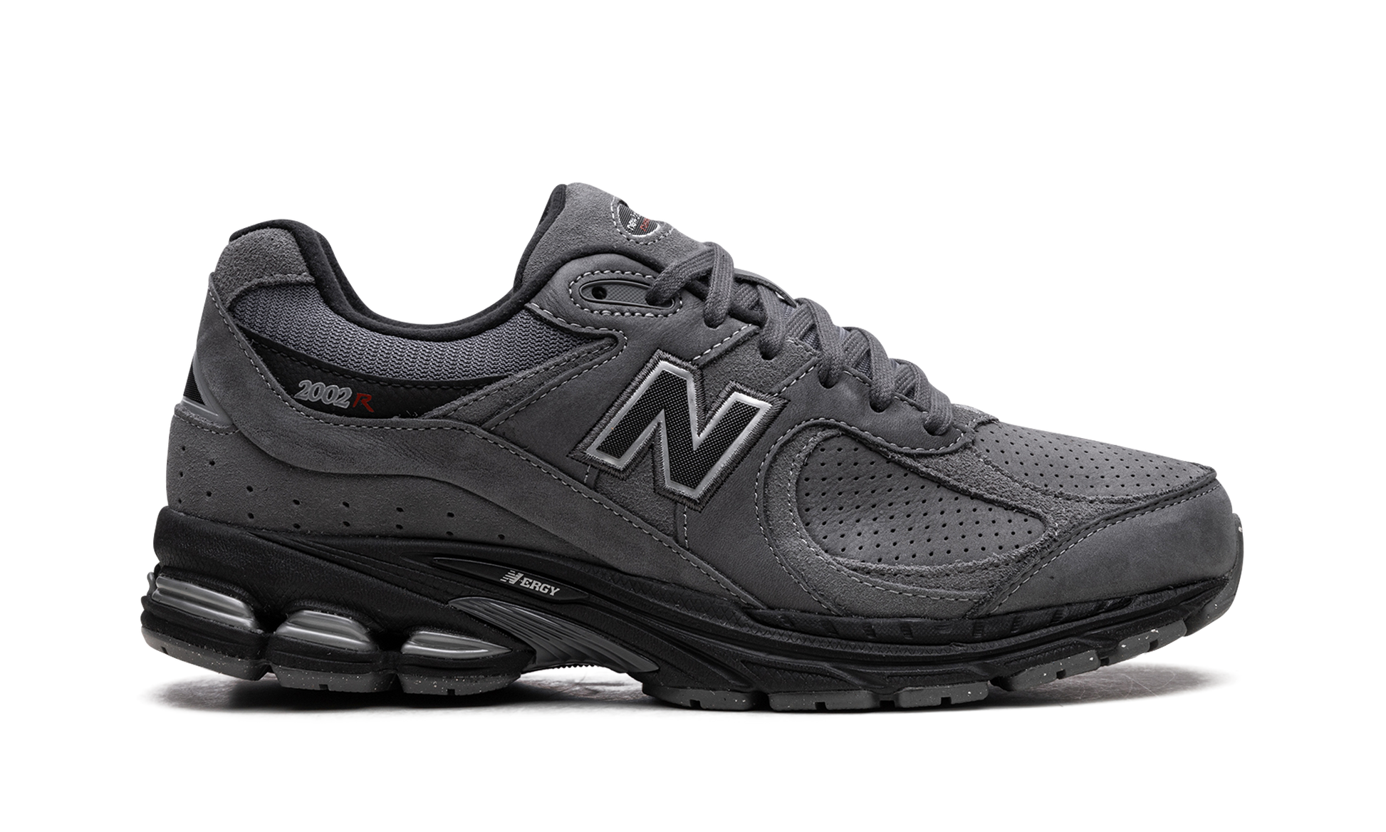 The New Balance 2002R "Castlerock/Black" is a greyscale colorway of the retro running and lifestyle shoe. The New Balance 2002R debuted in 2010 and then returned as a casual shoe a decade later in the early 2020s. On the “Castlerock/Blackâ€?colorway. the shoe has a grey perforated suede base with tonal overlay panels throughout the design. A grey “Nâ€?logo appears on either side of the shoe. â€?002Râ€?detailing is found on the lateral side of the collar. An N-ergy cushioned midsole in black provides all day comfort. Release date: October 6. 2023