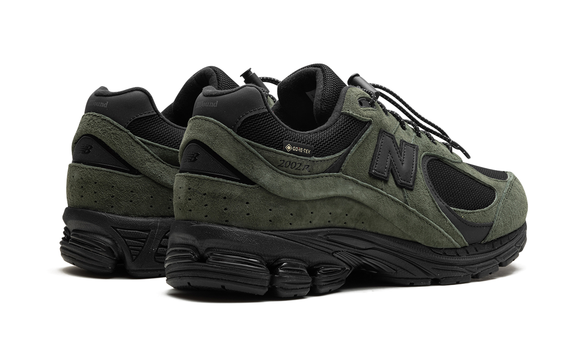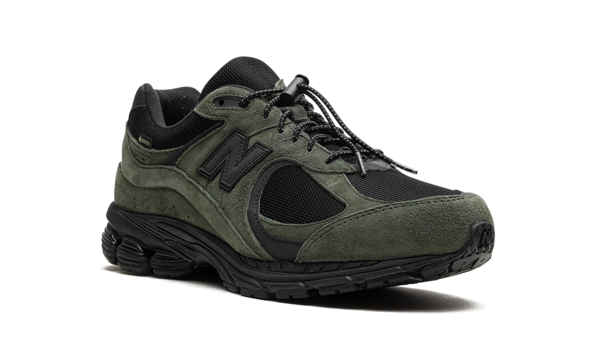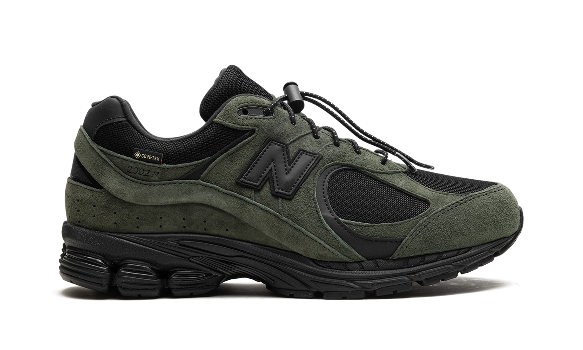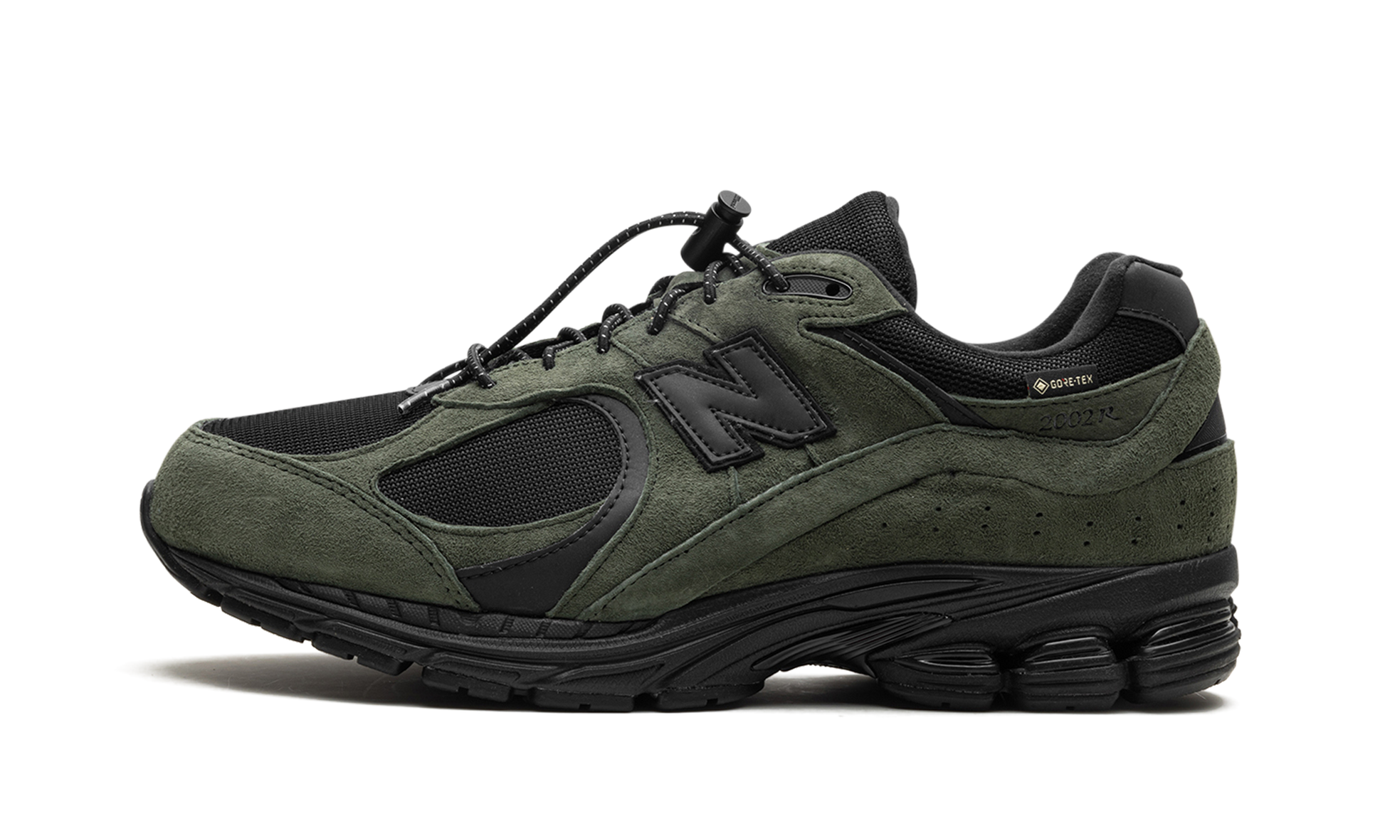 The JJJJound x New Balance 2002R Gore-Tex “Pine" is a collaboration by Justin Saunders' clothing brand and design studio and New Balance on a winter-ready version of the casual shoe. The New Balance 2002R Gore-Tex “Pineâ€?by JJJJound has water-resistant Gore-Tex technology that keeps the wearer's foot dry in harsh weather conditions. The upper has a black mesh base and olive suede overlays. Reflective detailing on the “Nâ€?logo and leather heel tab ensure enhanced visibility. A “Gore-Texâ€?hang tag appears on the lateral side of the midfoot. Underfoot. New Balance's ABZORB cushioning is embedded within the midsole.