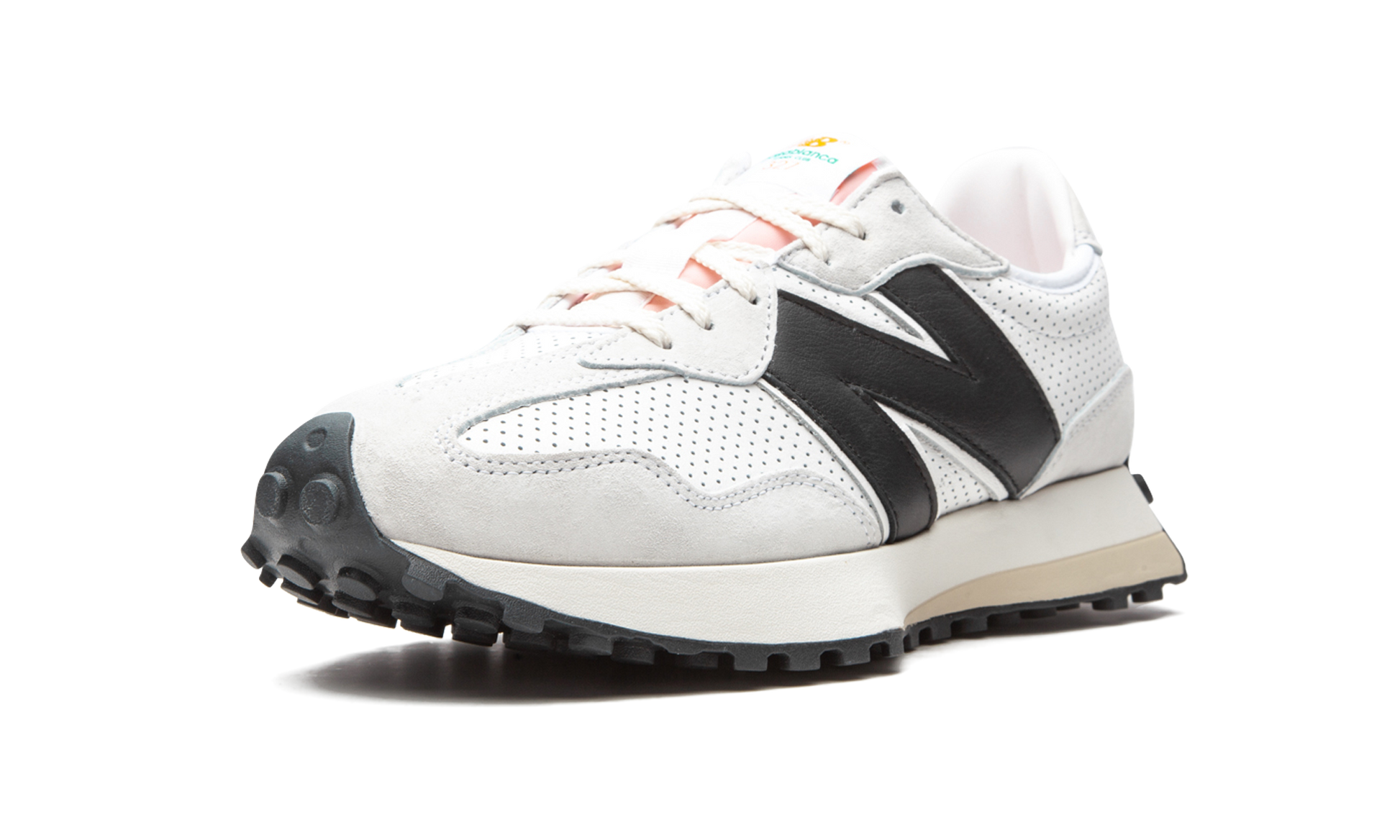 The Casablanca x New Balance 327 “White/Blackâ€?fuses effortless elegance with heritage sport for this collaboration. Featuring an all-white upper with perforated leather and buttery suede panels. the shoe also sports a contrasting oversized “Nâ€?logo in black. pale orange tongue. and black outsole. This pair and another green colorway mark the second time the Paris fashion house and New England footwear brand have partnered. Both Casablanca x New Balance 327 colorways debuted at Casablanca's Fall/Winter 2020 show in Paris.