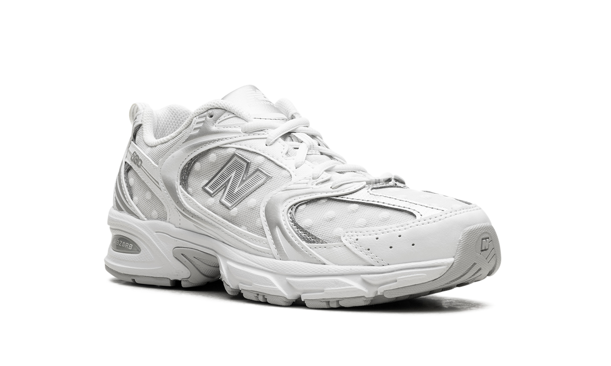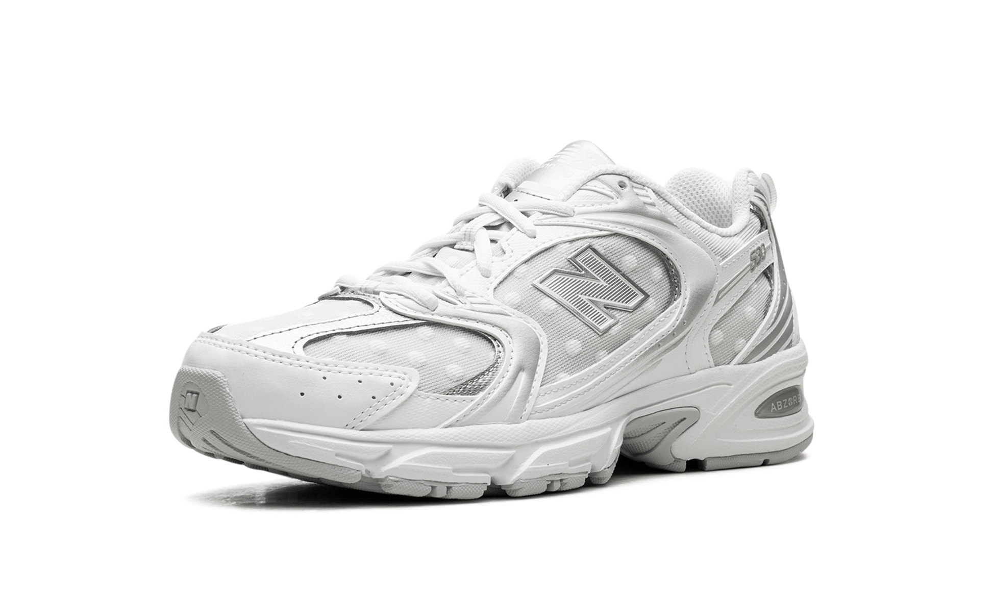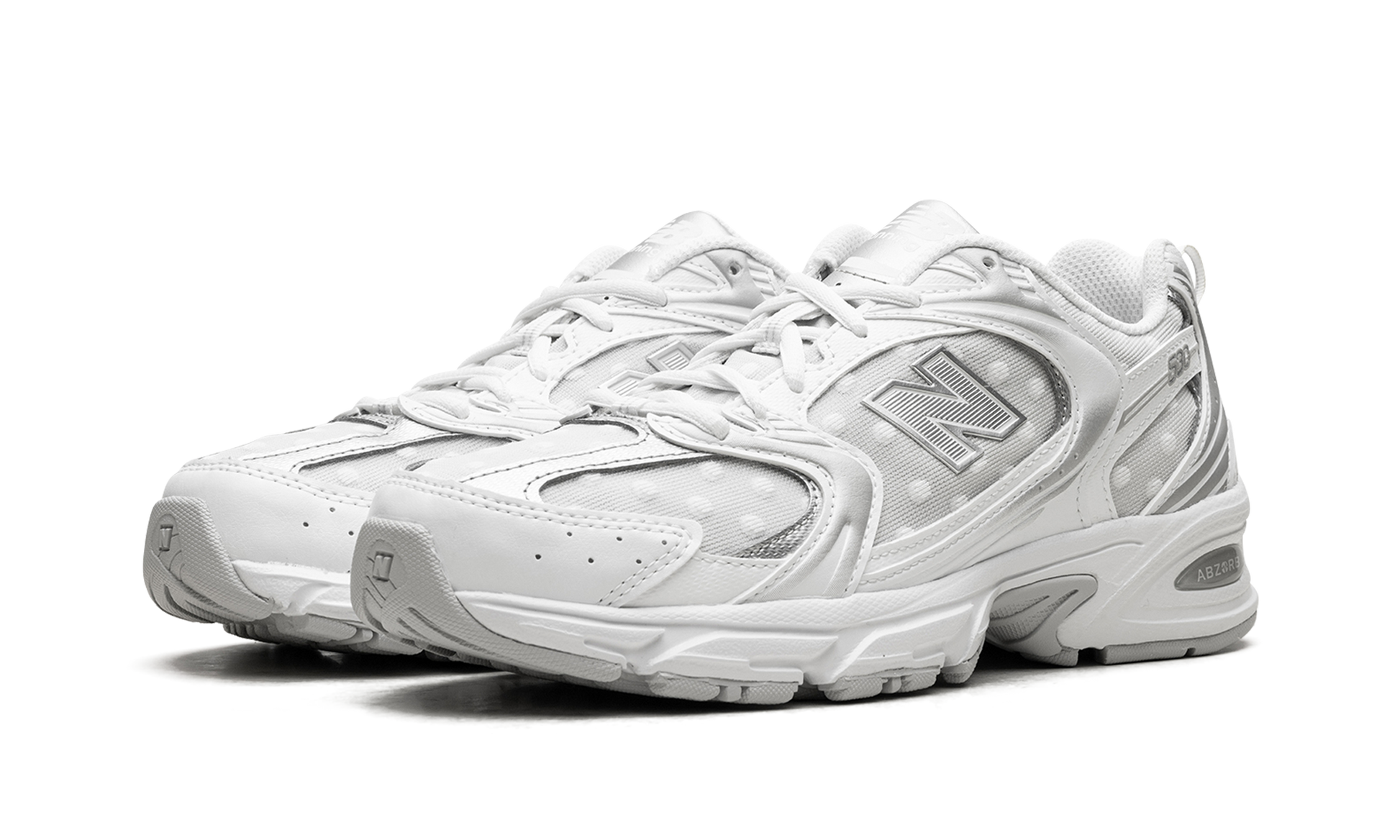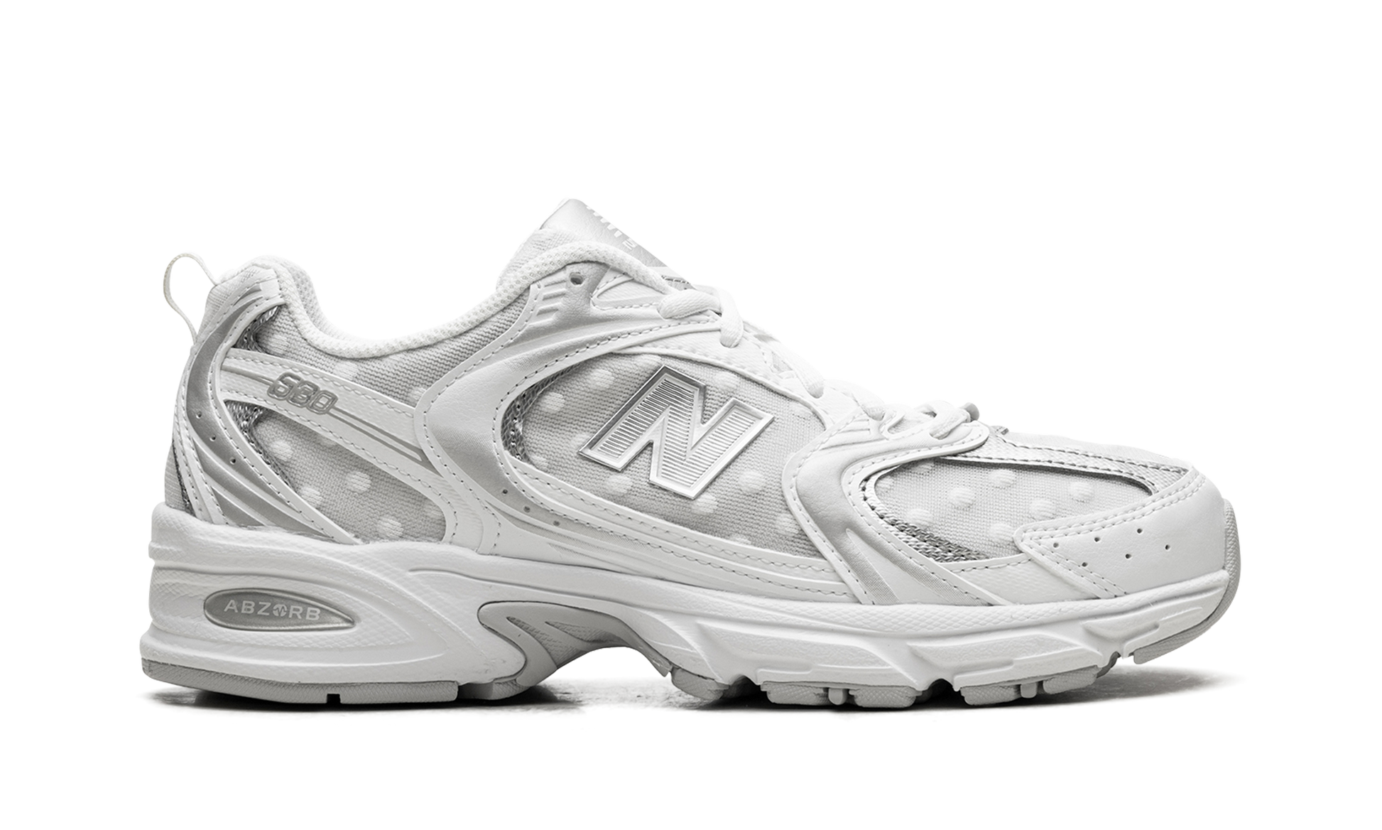 Step out in a fresh take on a classic with the New Balance 530. also known as the "Silver Metallic Polka Dots." These sneakers offer a stylish blend of retro inspiration and modern flair. The clean white base is accented with eye-catching silver metallic detailing. creating a look that's both timeless and on-trend. Experience all-day comfort with the cushioned design and breathable materials. Add a touch of sparkle to your everyday style with these versatile and iconic sneakers.