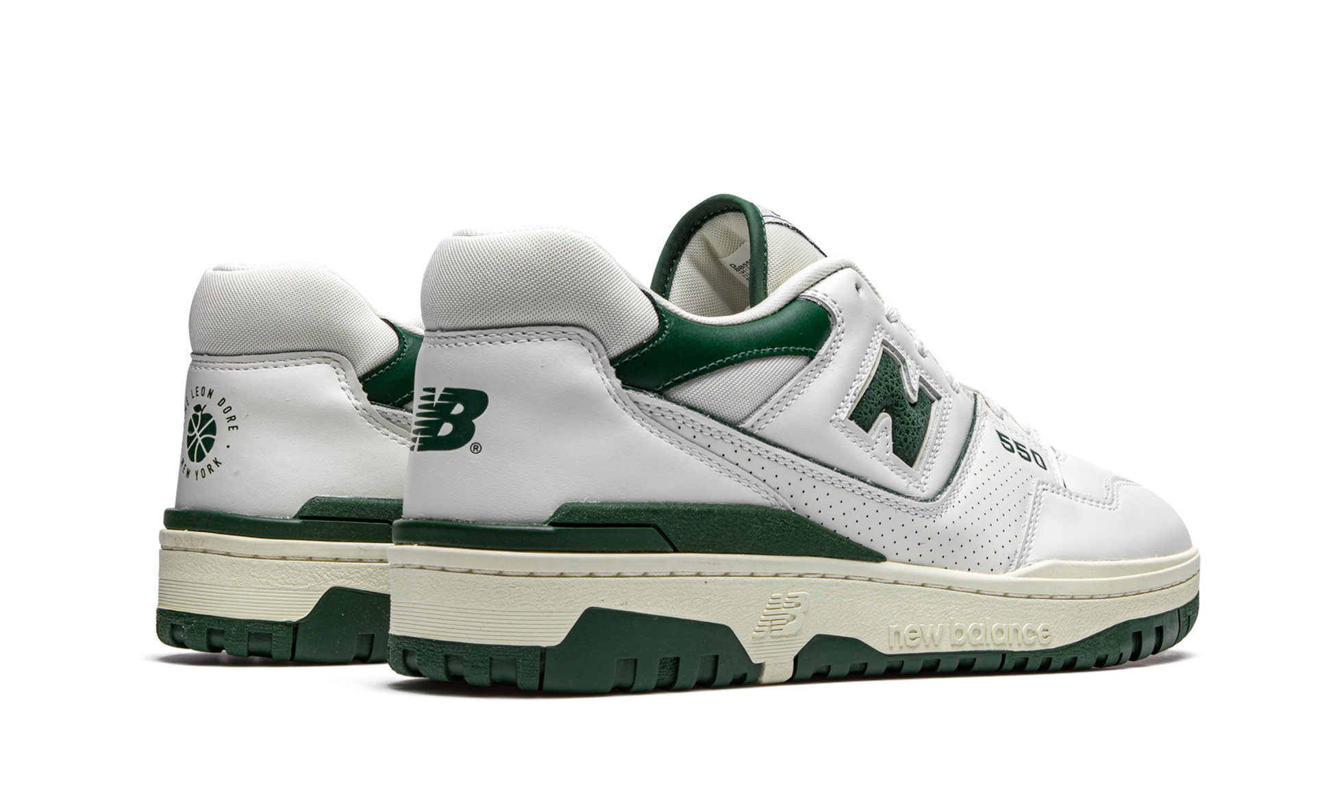 The Aime Leon Dore x New Balance 550 “Greenâ€?is one of four white-based colorways of the retro performance basketball silhouette brought back by the New York City streetwear brand in October 2020. The 550 model originally debuted in 1989 as part of New Balance's performance footwear program. Never tied to one player. the shoe nonetheless remained largely unheralded. forgotten even. until Aime Leon Dore worked with New Balance to re-release it for Fall 2020. The retro design features a mixture of smooth and dotted white leather on the upper. Green accenting on the â€?50â€?insignia on the forefoot and “Nâ€?branding on the mid-panel add a subtle pop of color against the white background. Dual Aime Leon Dore and “NBâ€?detailing can be found on the back of the left and right shoe. respectively. Additional design elements include green molding on the heel and green leather on the collar. The pre-yellowed midsole is a nod to the nostalgic vibe of the New Balance 550. Release date: October 9. 2020.