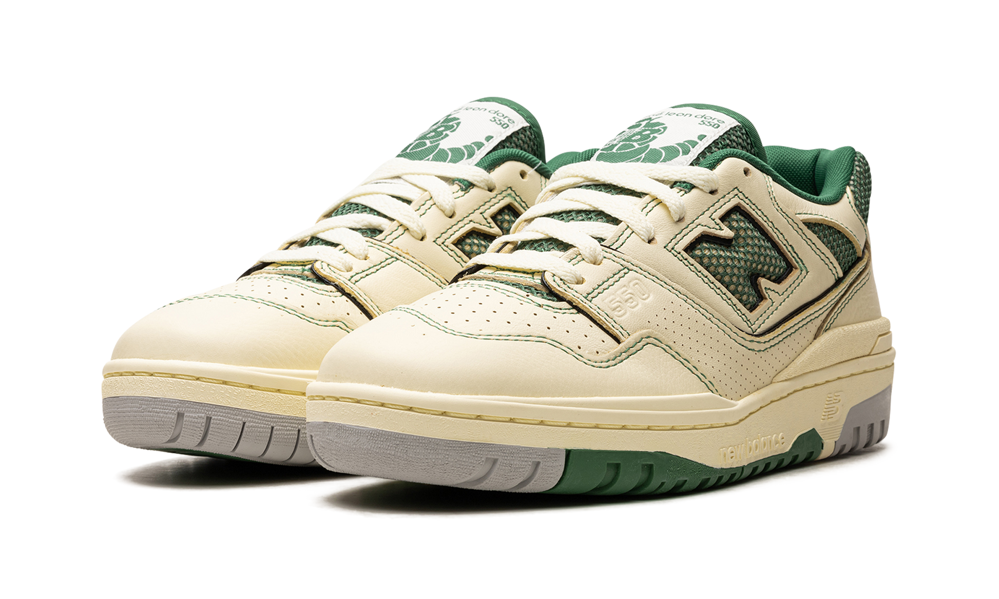 The Aimé Leon Dore x New Balance 550 "Masaryk Community Gym - Green" is a collaboration by Teddy Santis's clothing brand on a colorway of the retro basketball shoe with green features. Aimé Leon Dore and New Balance draw inspiration from New York's Masaryk Community Gymâ€?on this version of the old school hoops shoe. The upper features a Dawn Glow (a yellowish-cream hue) leather construction with green mesh “Nâ€?branding outlined in black on the sides. “Aimé Leon Doreâ€?branding can be seen on the tongue while co-branding appears on the heel. A cream midsole and a grey and green outsole complete the look.