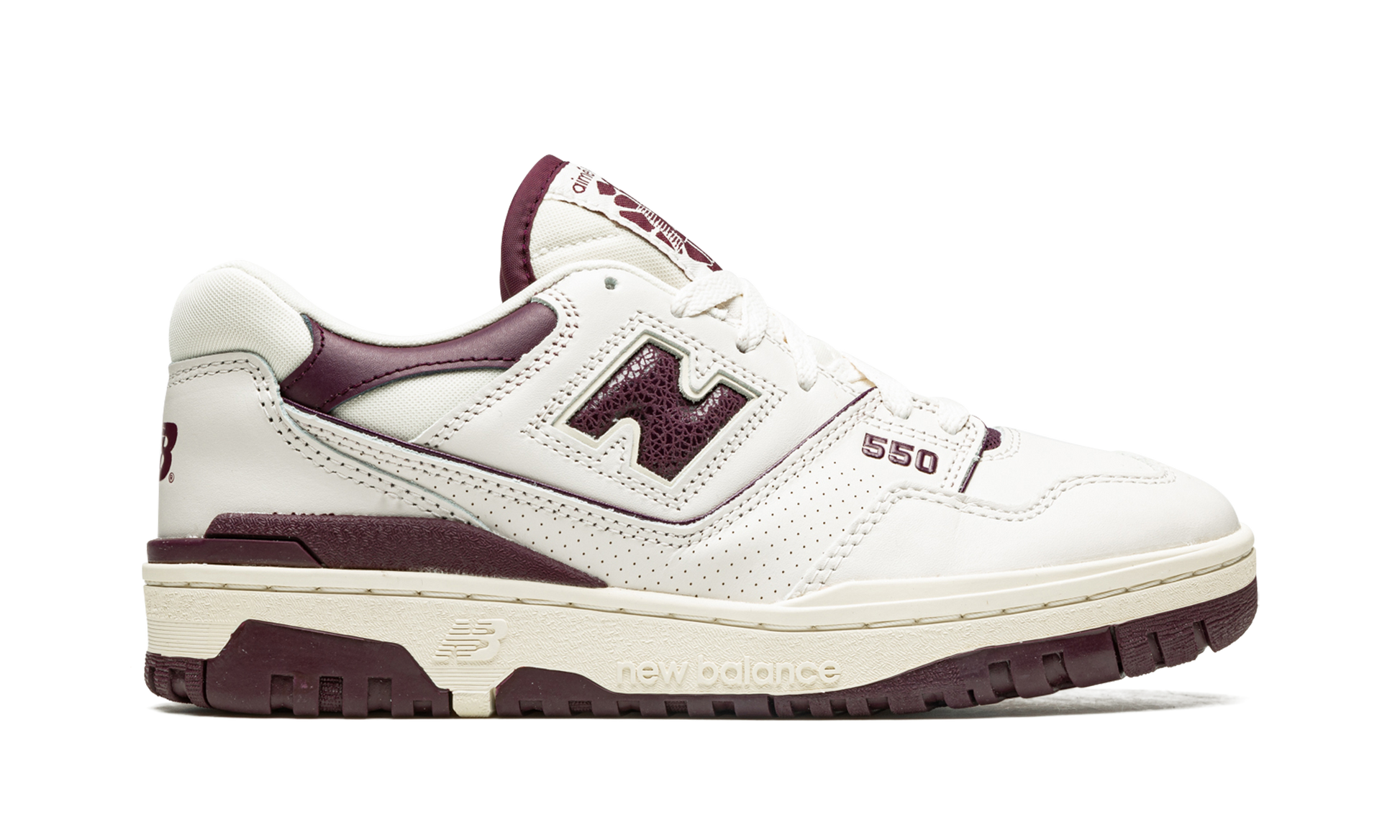 The Aimé Leon Dore x New Balance 550 “Purpleâ€?is yet another neutral color on the retro basketball shoe designed by Teddy Santis and his popular New York based clothing brand. The 550 model was brought back by Aimé Leon Dore in 2020 when Santis rediscovered the shoe while combing through New Balance's archives for design inspiration. On the “Purpleâ€?colorway. details include a cream perforated leather construction with contrasting dark purple “Nâ€?branding on either side of the shoe. Purple â€?50â€?branding appears on the forefoot and dual “Aimé Leon Doreâ€?and “New Balanceâ€?branding is located on the heel of the left and right shoe. respectively. Additional purple accenting comes into play on the leather overlay on the collar and the trim on the sides near the midsole A thick. vintage-inspired cream rubber midsole completes the look. Release date: June 21. 2022
