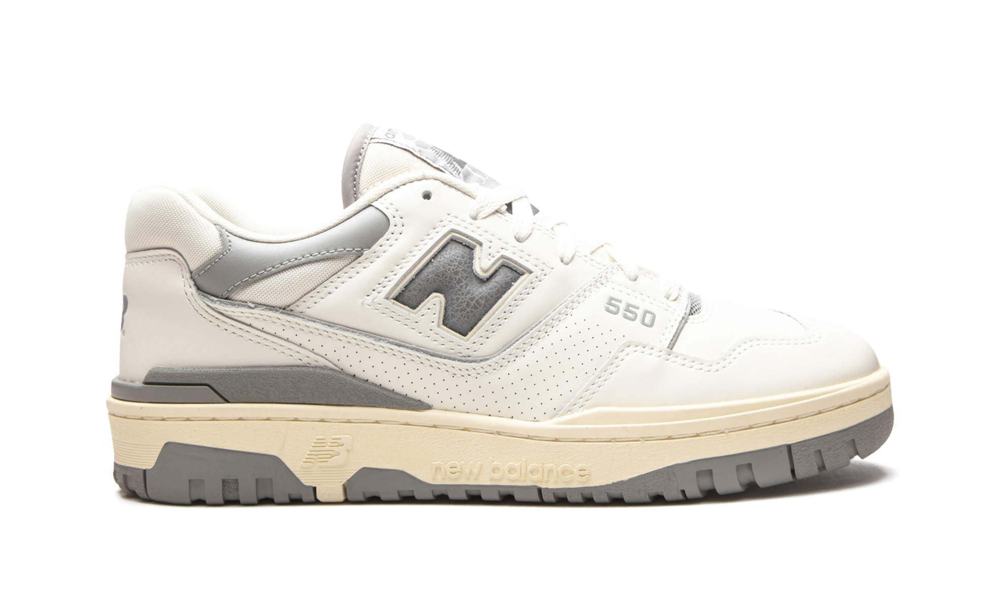 The Aimé Leon Dore x New Balance 550 "Silver" is a timeless look for the retro basketball shoe that was brought back by the New York based streetwear brand in October 2020. Debuting in the late '80s as part of New Balance's basketball segment. the 550 was never tied to one player or memorable moment in the NBA or otherwise. which largely contributed to the model's obscurity in the years following its first release. In 2020. Aimé Leon Dore unearthed the model as part of its growing partnership with New Balance. giving the shoe a second life as a modern. retro-inspired lifestyle silhouette. A combination of smooth and dotted white leather appears on the upper. Silver â€?50â€?detailing on the forefoot and “Nâ€?branding on either side provide a low contrast against the white leather base. Dual Aimé Leon Dore and “NBâ€?branding can be found on the back of the left and right shoe. respectively. Silver molding on the heel and silver leather on the collar provide additional design elements. The pre-yellowed midsole gives the shoe a nostalgic vibe that's consistent with Aime Leon Dore's other 550 colorways. Release date: October 9. 2020.