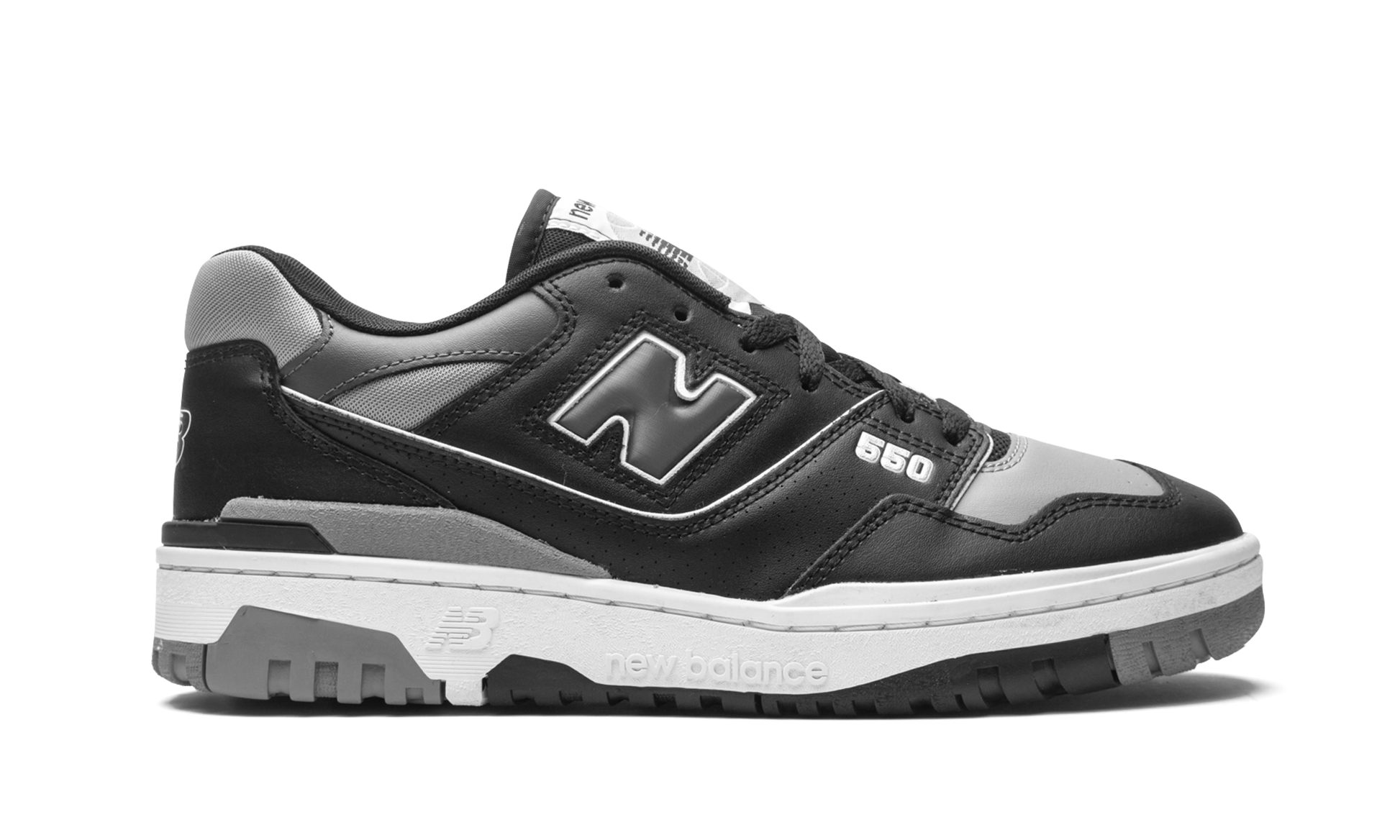 The New Balance 550 “Blackâ€?is a versatile. black-based colorway of the popular retro basketball and lifestyle shoe. The 550 has become one of the most desirable shoes in sneakers. with collaborations by Aime Leon Dore and Joe Freshgoods and a slew of easy-wearing colorways fueling its resurgence. In the “Blackâ€?colorway. the shoe features black leather overlays against a grey leather base. A grey “Nâ€?logo appears on either side of the shoe. A â€?50â€?logo is embroidered on the forefoot. Additional branding includes an “NBâ€?logo on the heel. and retro-inspired “New Balance 550 USAâ€?detailing on the tongue. Underfoot. a chunky white rubber midsole is contrasted with a black and grey outsole.