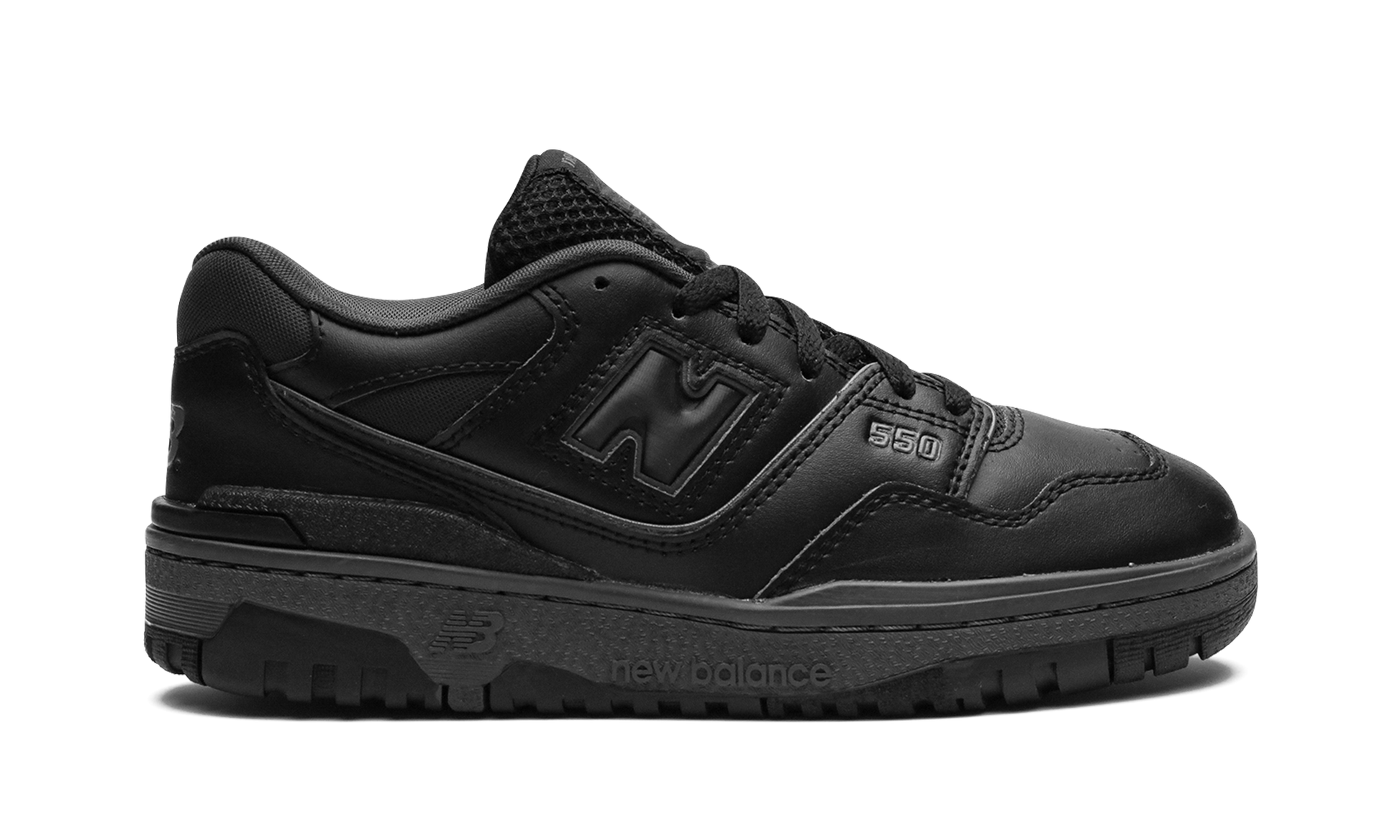 The New Balance 550 GS “Triple Blackâ€?is the youth sizing of the retro basketball shoe in a monochromatic black colorway. The “Triple Blackâ€?550 for kids features an all-black leather upper with tonal leather overlays. Black “Nâ€?branding appears on the side and black â€?50â€?insignia is embroidered on the lateral side of the forefoot. Black “NBâ€?detailing is seen on the heel. To complete the all-black design. the shoe has black “New Balance 550â€?branding on the tongue and a black rubber sole.