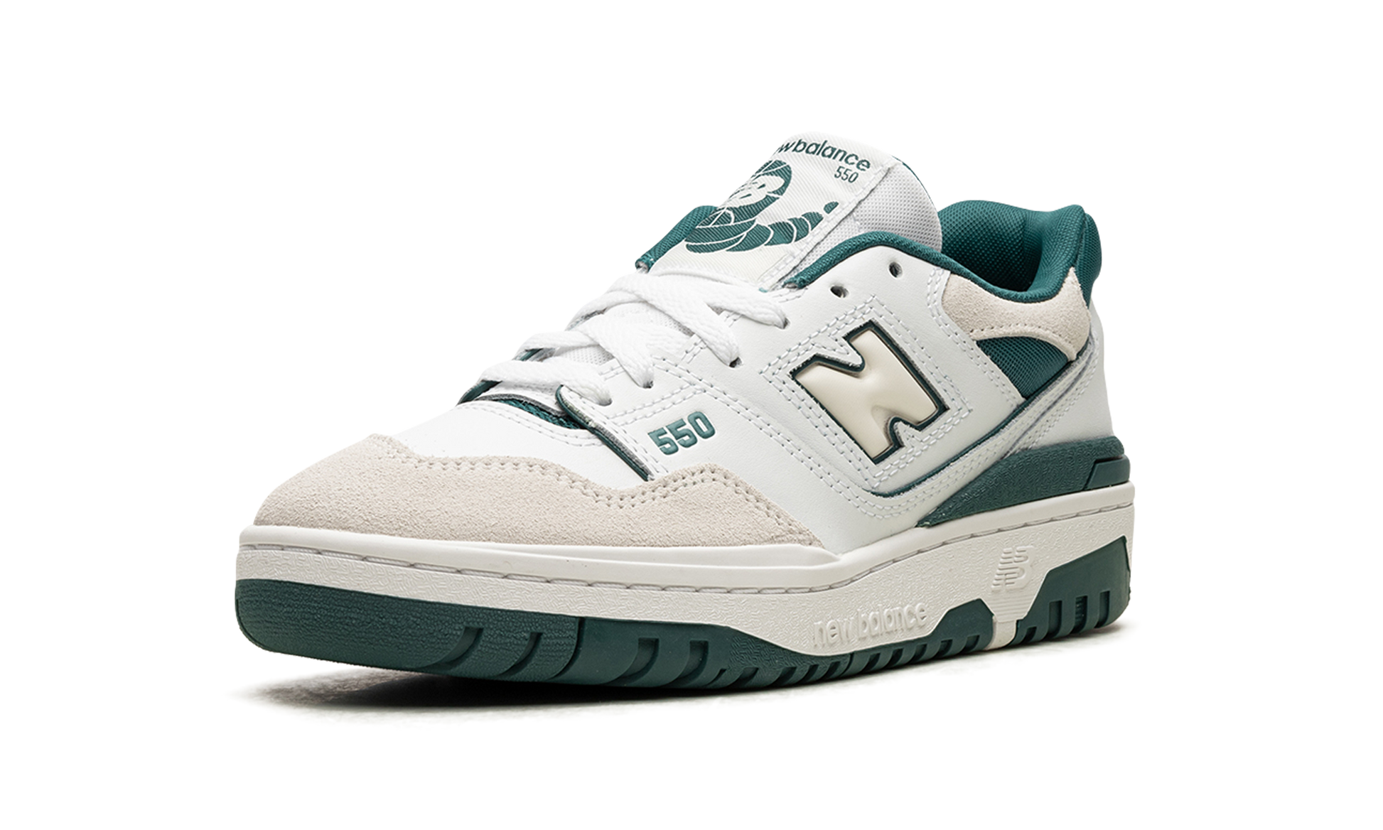 The New Balance 550 GS "Vintage Teal" is the youth sizing for the colorway of the retro basketball sneaker with a summer look. The “Vintage Tealâ€?features a look that's perfect for warm weather wear. White leather appears on the shoe's upper while a light grey suede overlay is seen on the toe. A milky white “Nâ€?logo with Vintage Teal trim appears on the side. More Vintage Teal accenting is seen on the â€?50â€?branding on the lateral side of the forefoot. the “NBâ€?logo on the heel. and the “New Balance 550â€?graphic on the tongue tag. Both the mesh collar and inner lining are also finished in Vintage Teal. Underfoot. the chunky white rubber midsole is matched with a teal rubber outsole. Release date: June 21. 2023