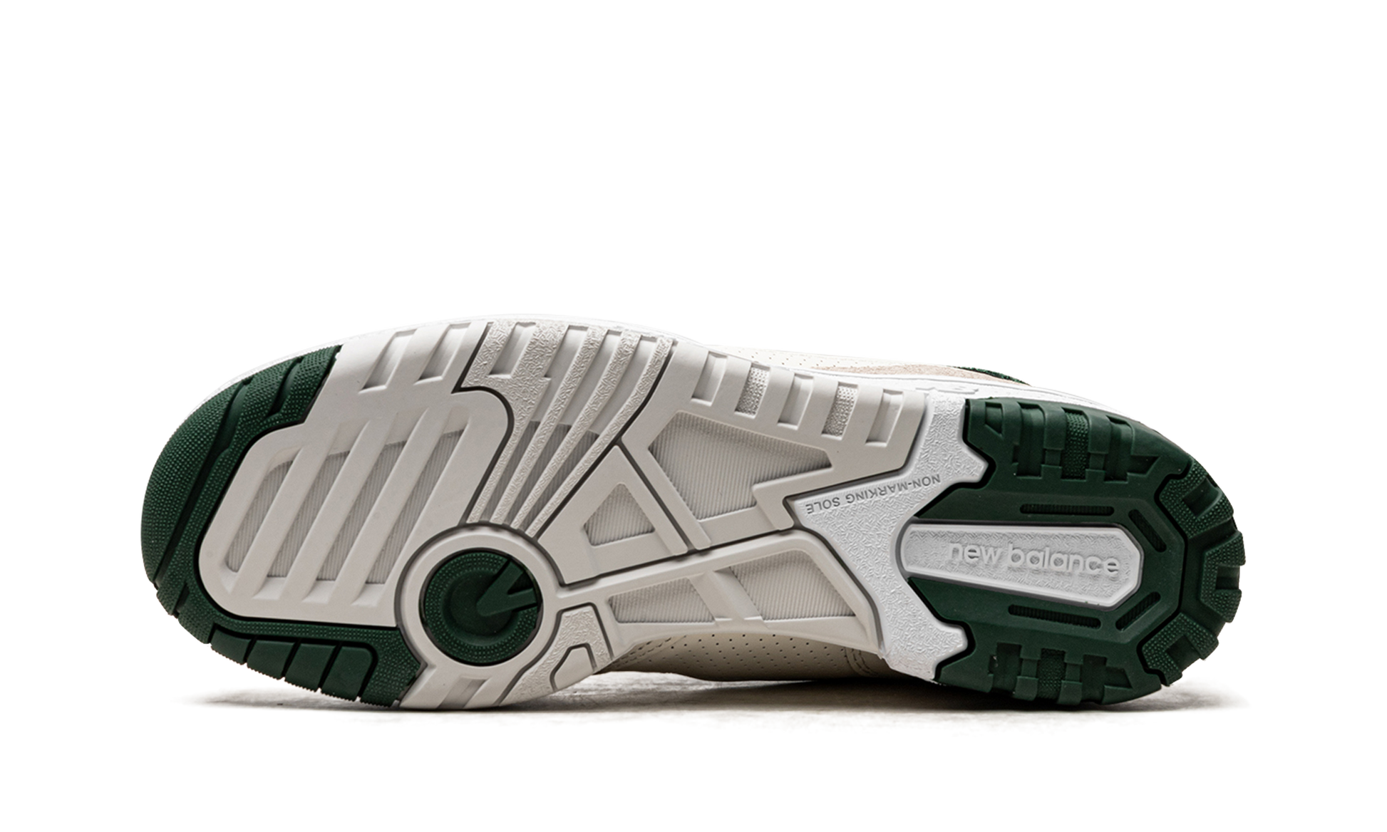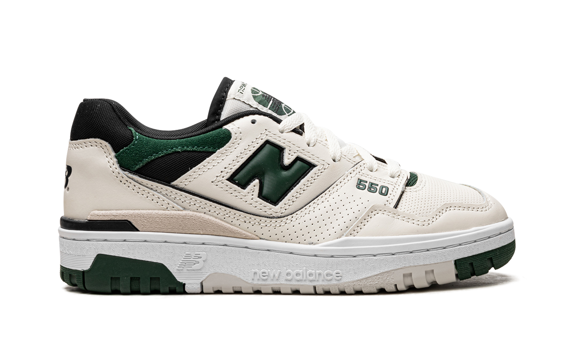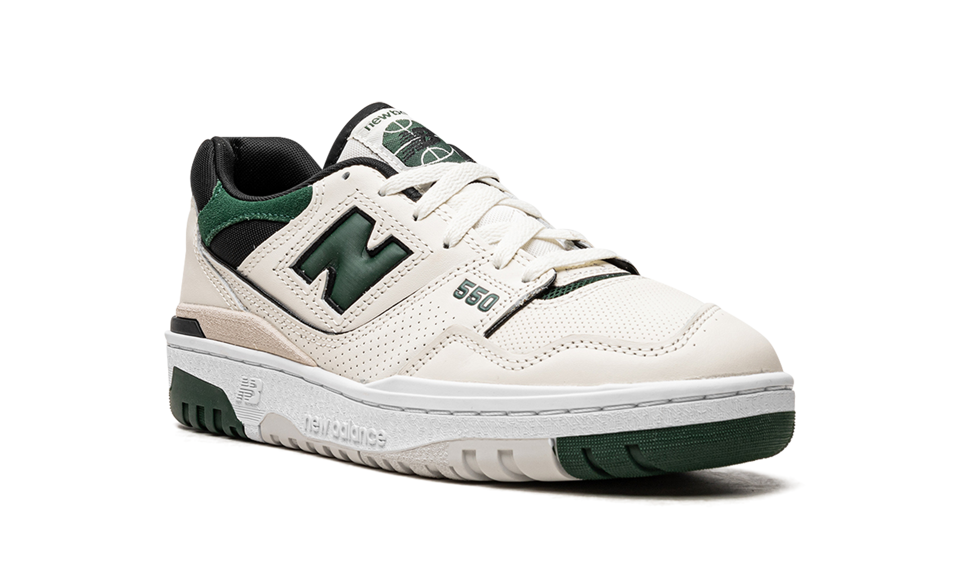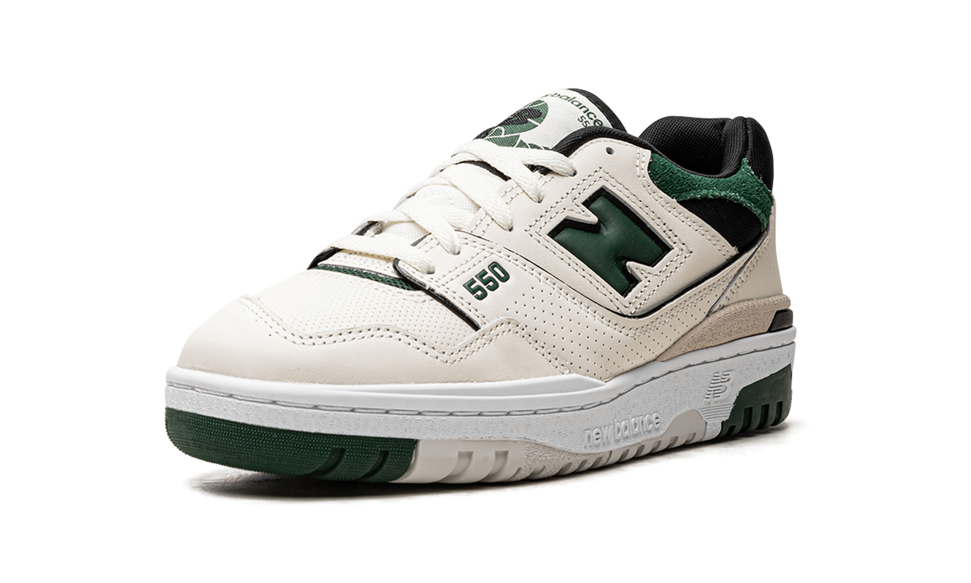 The New Balance 550 “Sea Salt/Pine Greenâ€?is a mostly two-tone. green-and-cream-colored version of the retro basketball shoe. The colorway features a Sea Salt leather upper with a Pine Green “Nâ€?logo on the side. Pine Green â€?50â€?branding appears on the lateral side of the forefoot and green “NBâ€?branding is seen on the heel. A green suede overlay is found on the black mesh collar. Underfoot. the shoe rides on a white rubber midsole and a cream and green rubber outsole.