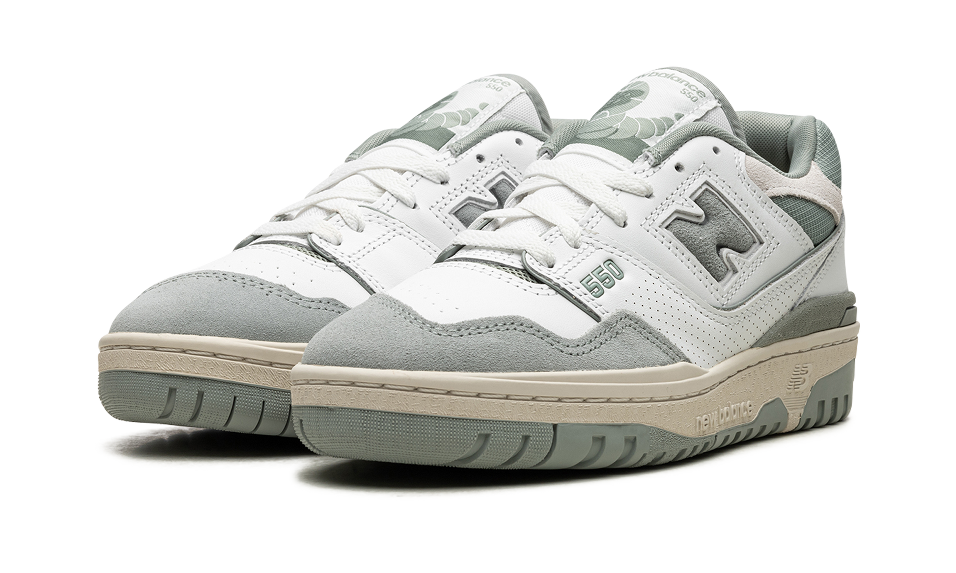 The New Balance 550 "Seafoam Green" is a colorway of the retro basketball and lifestyle shoe with eye-pleasing green accents. Debuted in the late 1980s and reissued in 2020 due in part to Aimé Leon Dore. the New Balance 550 has a classic. old school basketball shoe design. Here. the sneaker is featured with a white leather construction with Seafoam Green accenting on the “Nâ€?logo on the sides. the â€?50â€?branding on the lateral side of the forefoot. and on the suede overlay on the toe. The green hue is also seen on the “NBâ€?branding on the tongue and heel. and on the mesh found on the collar. Underfoot. the shoe's aged midsole is paired with a Seafoam Green outsole.