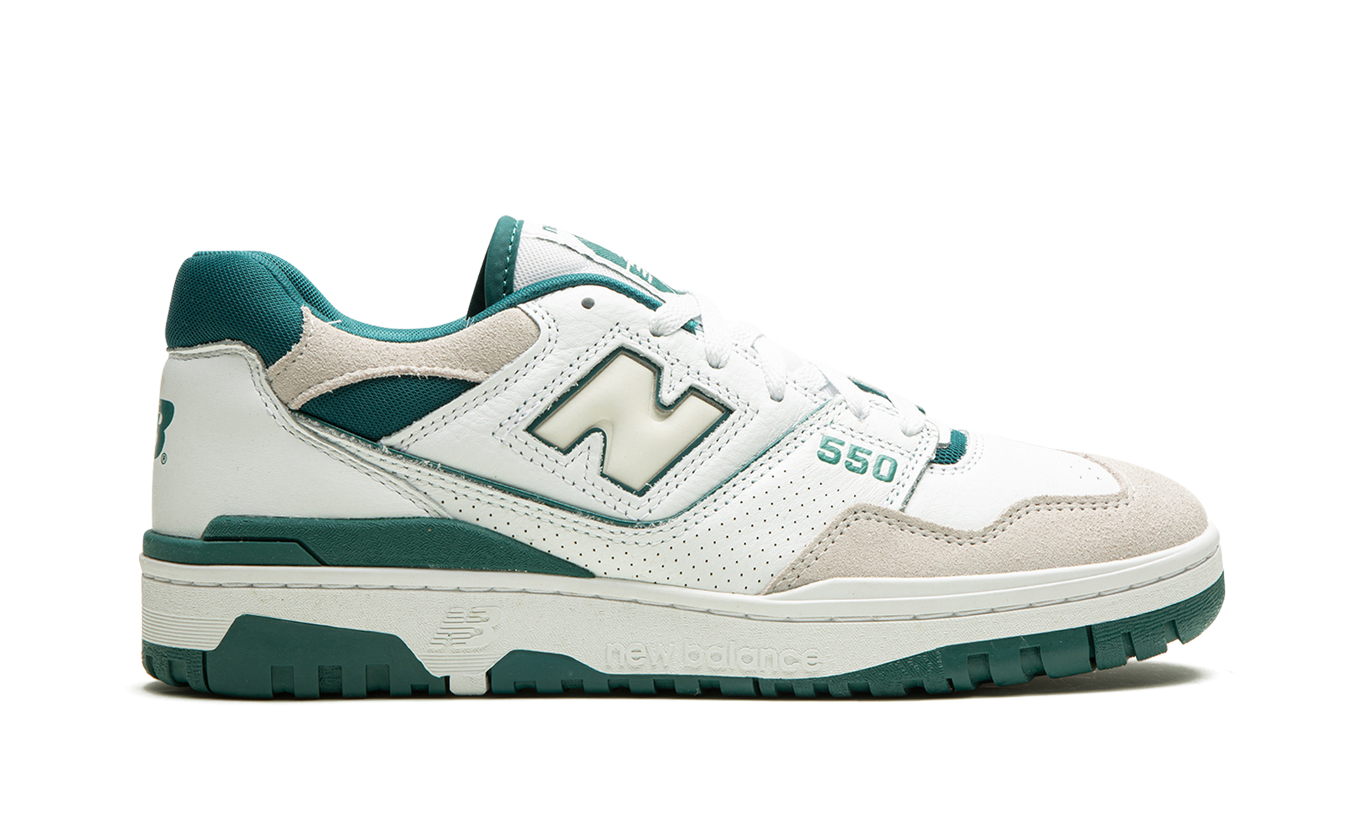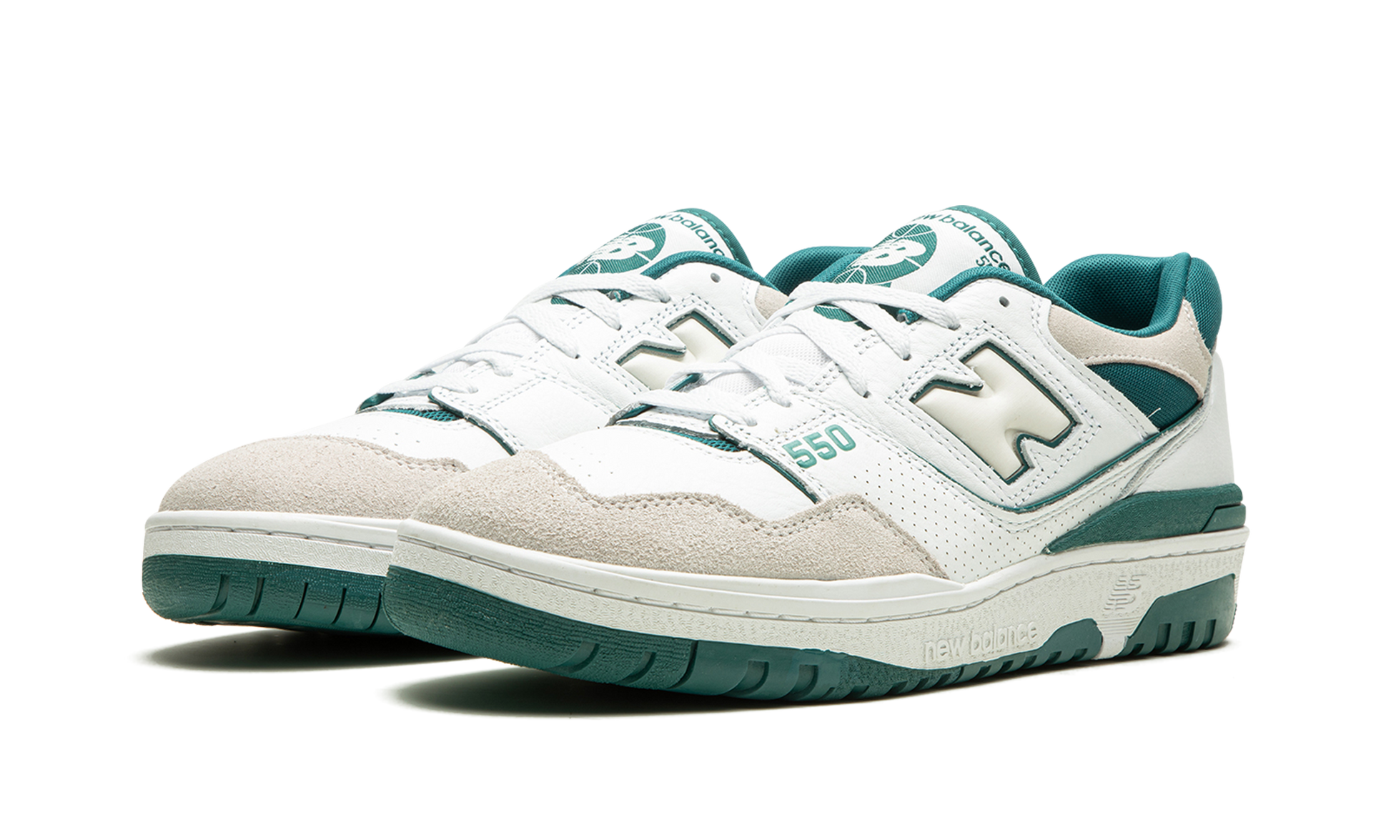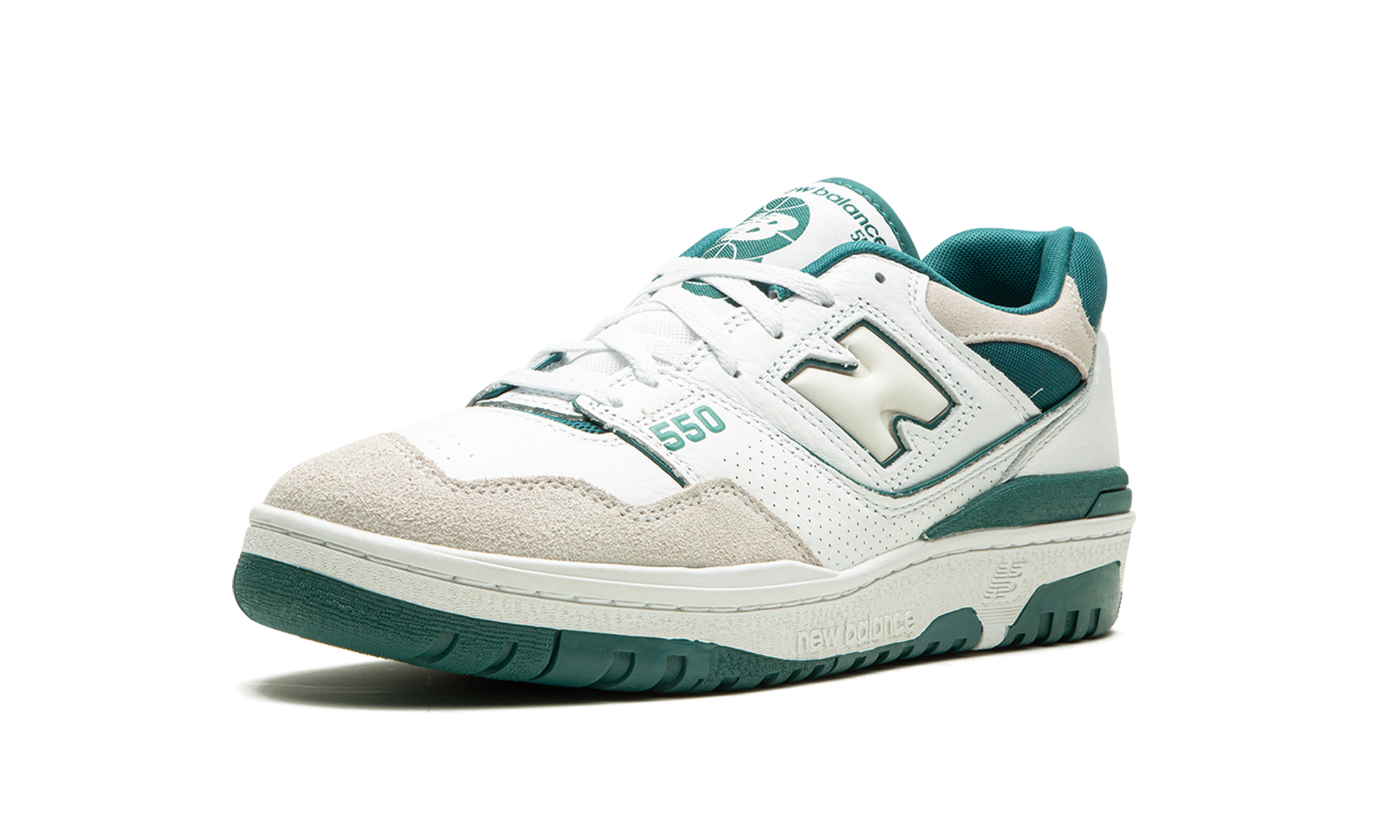 The New Balance 550 "Vintage Teal" is a summertime-ready colorway of the retro basketball shoe that was released in 2023. The “Vintage Tealâ€?gives the popular silhouette an easy-on-the-eyes makeover that's perfect for warm weather wear. White leather appears on the shoe's upper while a light grey suede overlay is seen on the toe. A milky white “Nâ€?logo with Vintage Teal trim appears on the side. More Vintage Teal accenting is seen on the â€?50â€?branding on the lateral side of the forefoot. the “NBâ€?logo on the heel. and the “New Balance 550â€?graphic on the tongue tag. Both the mesh collar and inner lining are also finished in Vintage Teal. Underfoot. the chunky white rubber midsole is matched with a teal rubber outsole. Release date: June 21. 2023