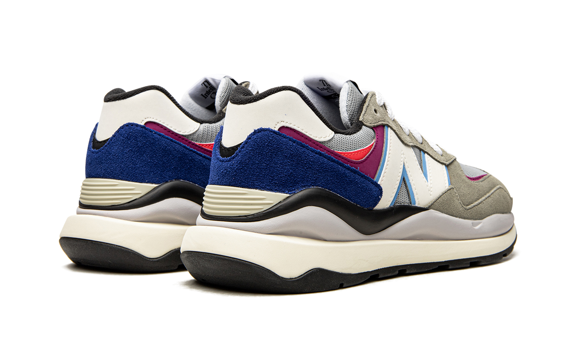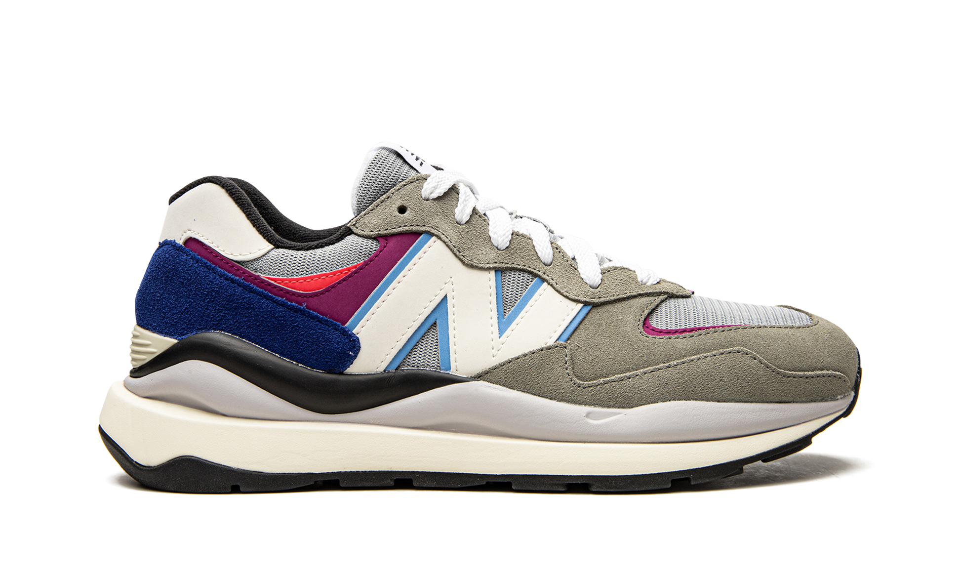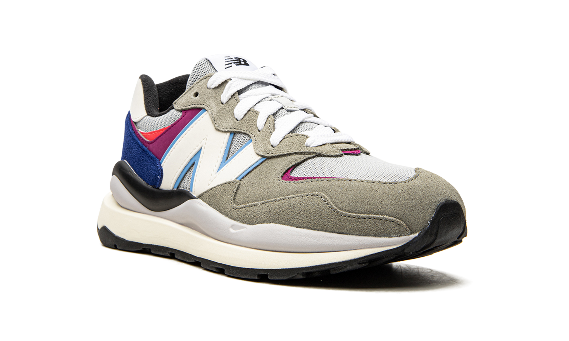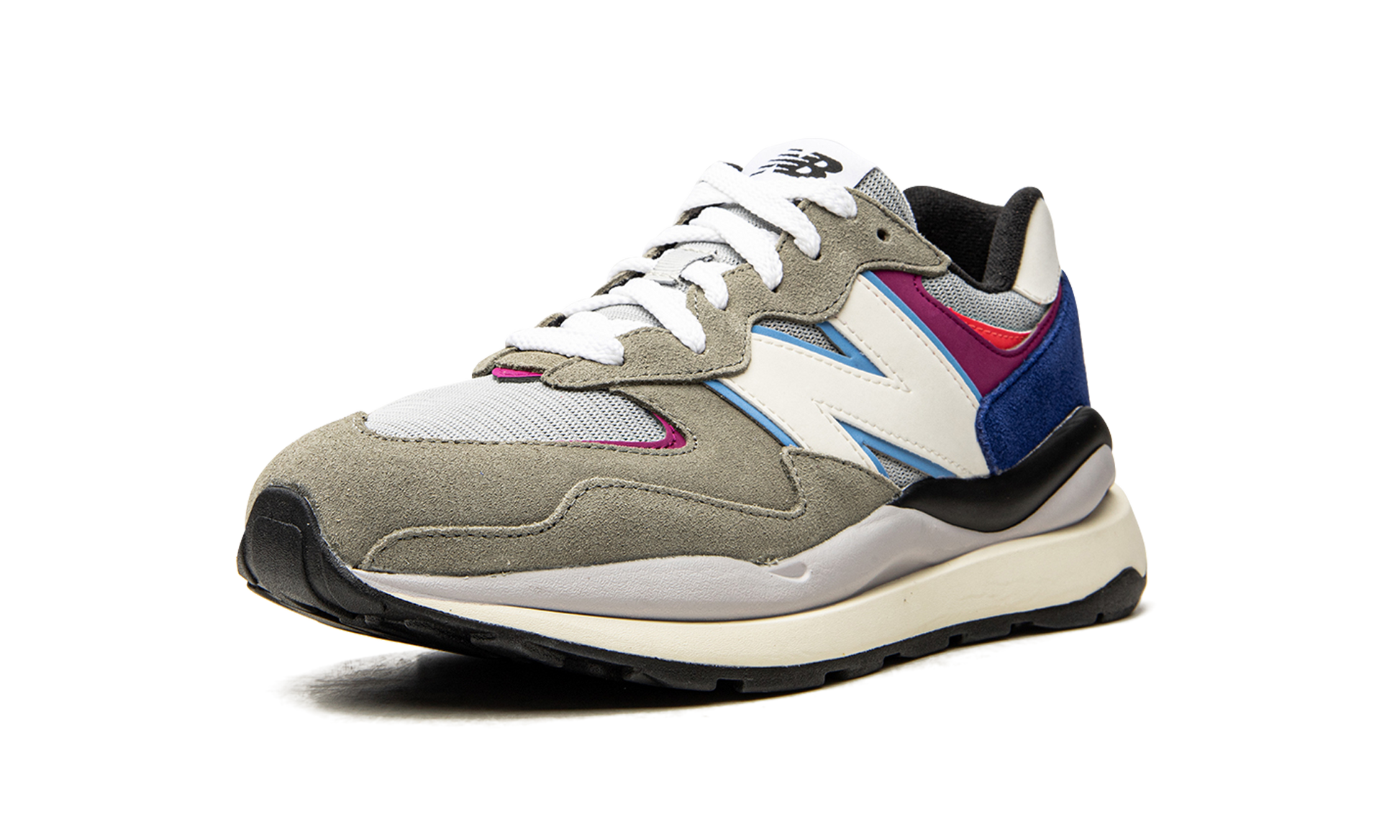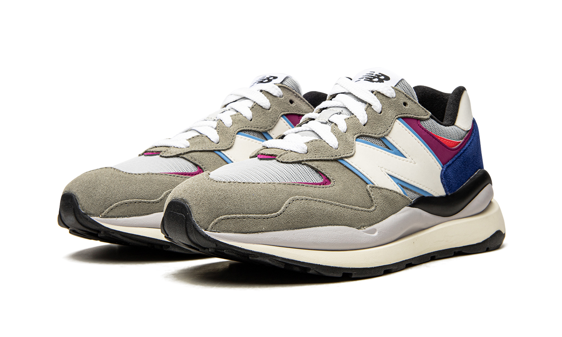 The New Balance 57/40 “Incubation Packâ€?is a grey-based colorway of the hybrid shoe by New Balance that gives a contemporary look to the New Balance 574. Based on the 574 model. the 57/40 debuted in 2020 and has several design elements that give the shoe a futuristic look that still honors the original 574 shoe. The “Incubation Packâ€?colorway is mostly grey in appearance. as it features a light grey mesh base and dark grey suede on the toe cap. forefoot. and eyelets. Light blue trim accents the oversized white leather “Nâ€?logo on the sides and magenta detailing is found on the overlay on the heel. Additional pops of color arrive in the form of a navy blue suede overlay on the heel and neon pink detailing on the collar. A chunky. retro-inspired wheat foam midsole gives the shoe a decidedly vintage. performance running shoe-style look.