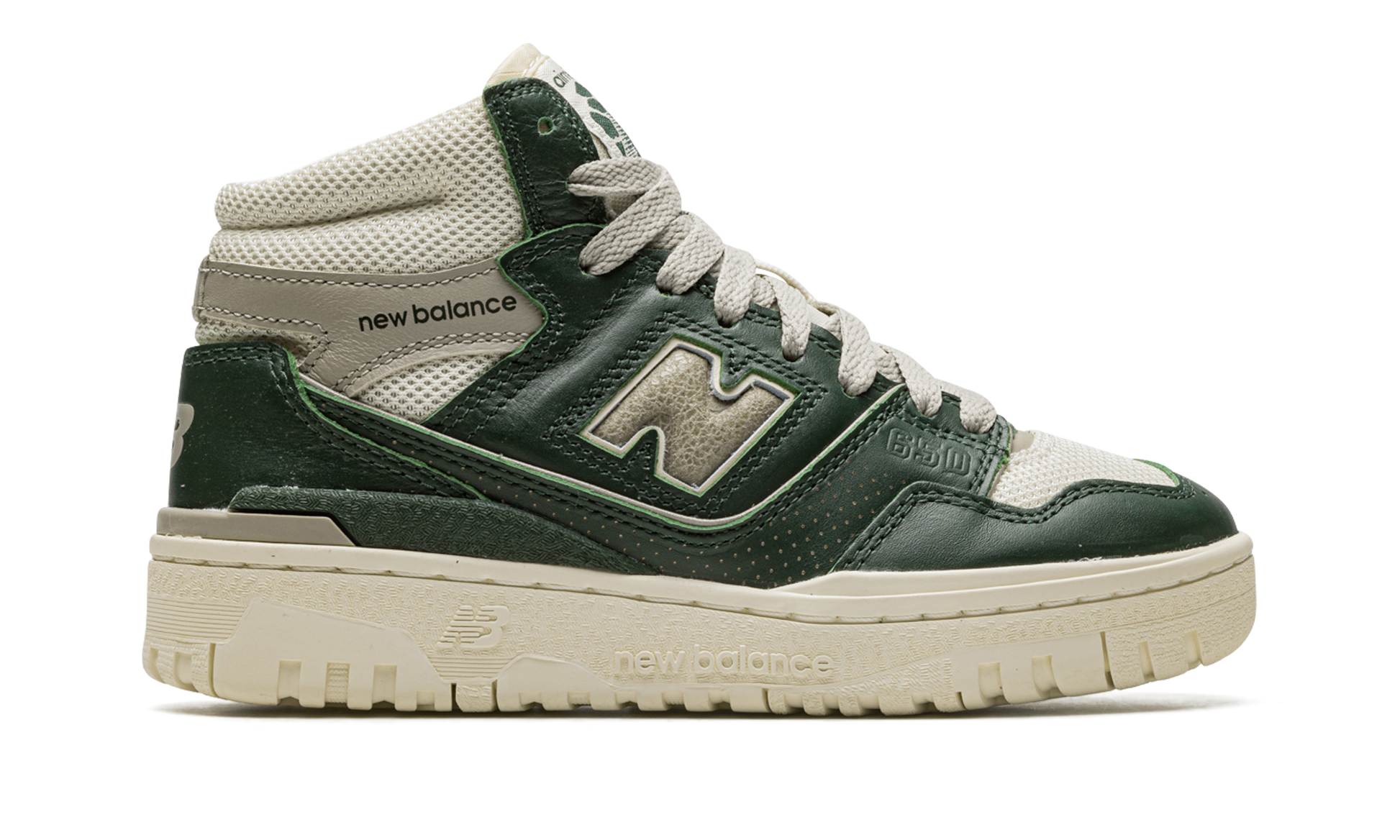 The Aimé Leon Dore x New Balance 650 “Greenâ€?is a green and grey colorway of the retro basketball shoe co-designed by Teddy Santis's popular clothing brand and New Balance. The New Balance 650 was brought back by Aimé Leon Dore following the success of its collaboration with New Balance on the 550 model. another retro basketball shoe that debuted in the 1980s. Like the 550. the 650 features vintage design elements. including. on the “Greenâ€?colorway. a cream midsole that mimics the look of a sole that's undergone the process of oxidation. Grey mesh appears on the shoe's base while green leather overlays are found throughout the upper. A tan “Nâ€?logo appears on the sides. Dual “Aimé Leon Doreâ€?and “NBâ€?branding is found on the back of the left and right shoe. respectively. Release date: October 6. 2022