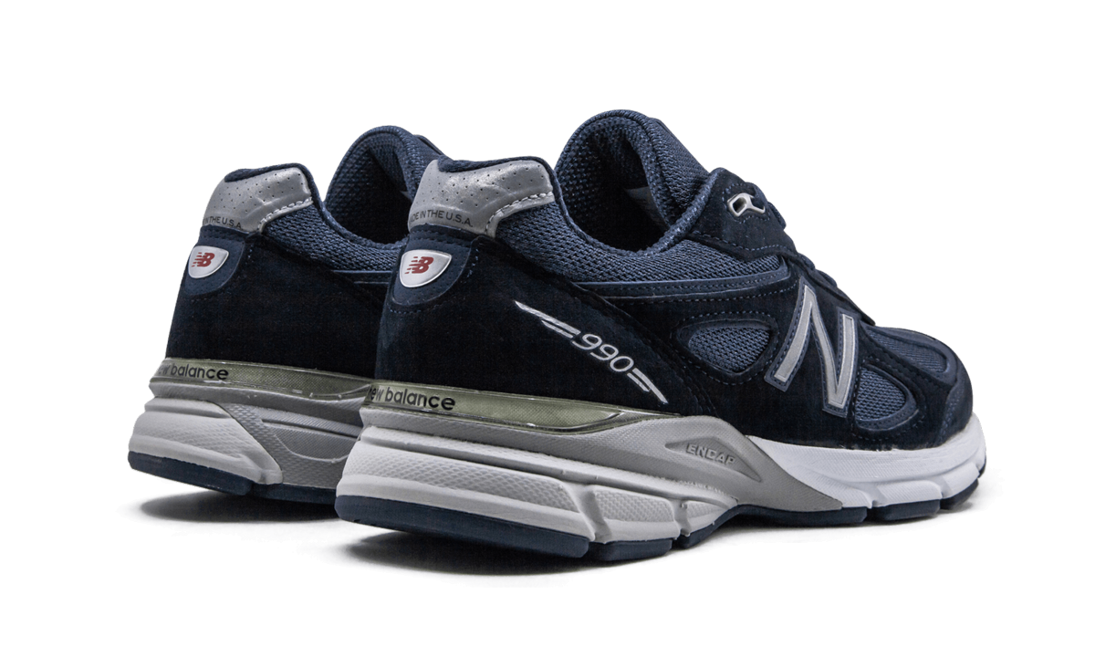 The New Balance 990v4 “Navy/Greyâ€?is a clean colorway of New Balance's famed 990v4 model. The 990v4 has long been regarded as one of the premier designs from New Balance thanks to its “Made in the USAâ€?heritage. use of elevated materials. and durability. The ubiquitous “Navy/Greyâ€?colorway of the 990v4 keeps a streamlined approach to its appearance due to a contrasting upper with dark navy suede overlays on the toe. mid panel. eyelets and heel. A lighter toned blue mesh base appears on the mid panel. toe. ankle collar. and tongue. Customary reflective bits on the 990v4 include a grey 3M “Nâ€?on the mid panel. grey “Made In the USAâ€?branding on the tongue and heel. and quarter panel. A dual-colored white and grey ENCAP midsole with foam offer the perfect combination of comfort and stability.