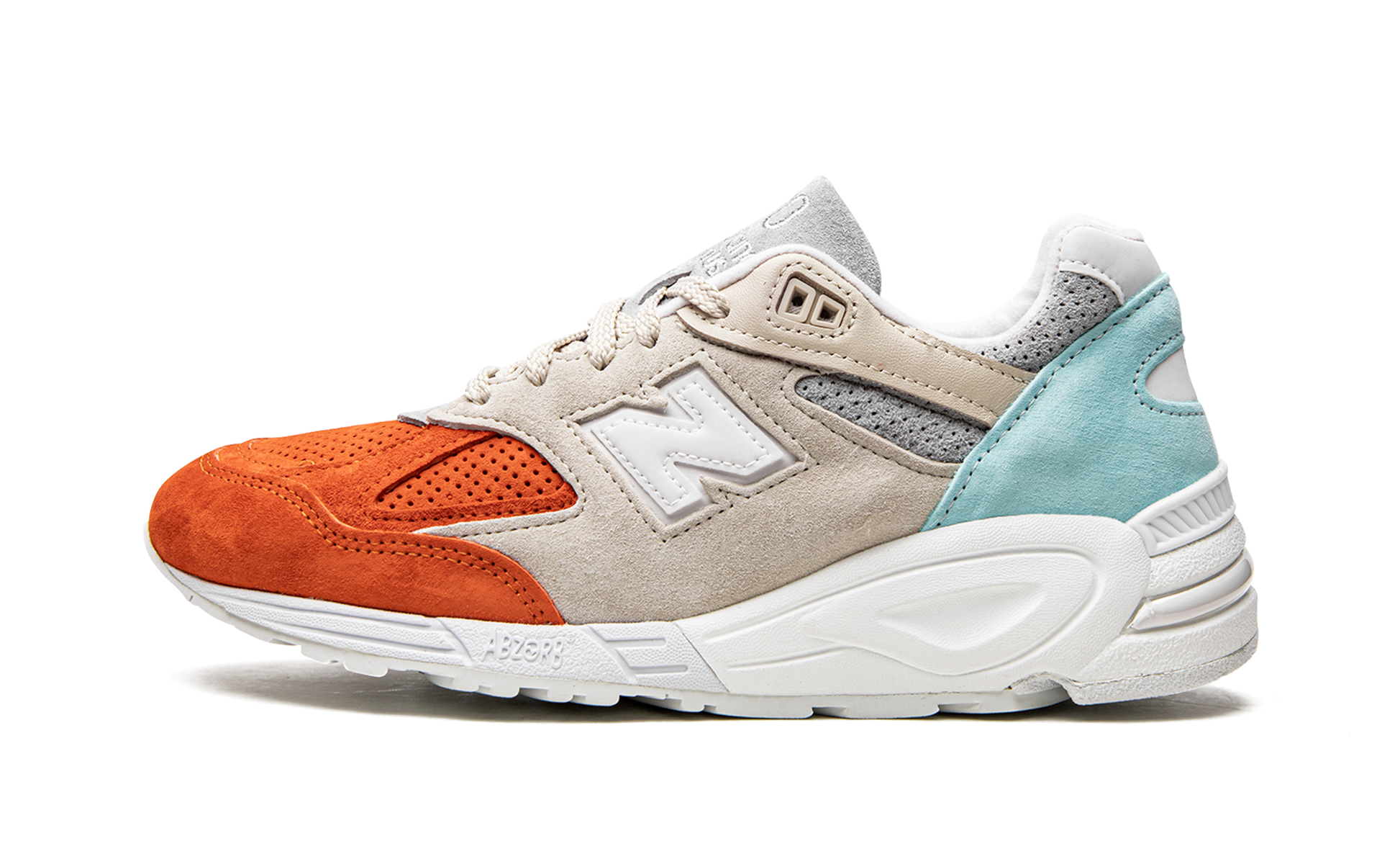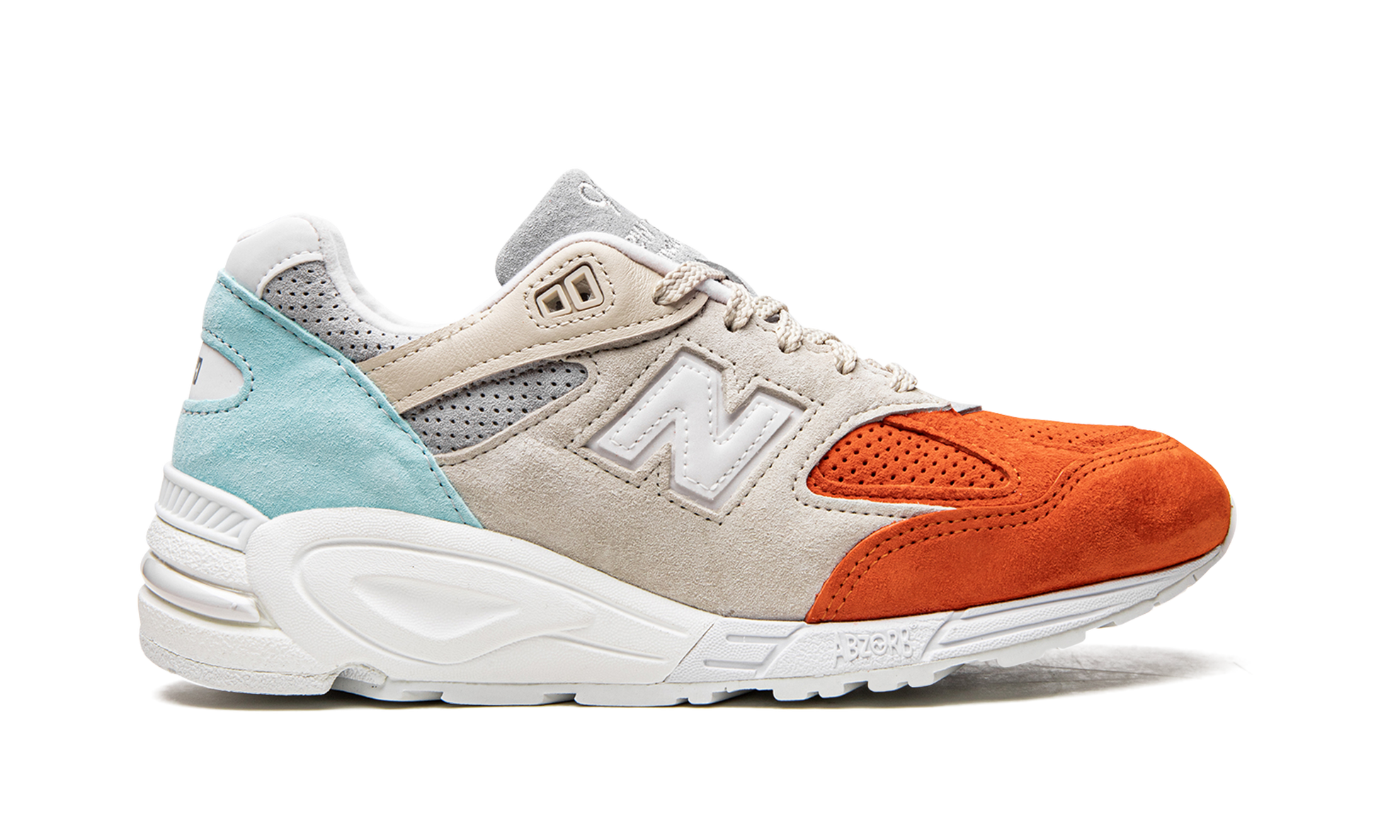 The Kith x New Balance 990 V2 “Cycladesâ€?is a special collaboration between Ronnie Fieg's sneaker boutique and New Balance in a colorway of the lifestyle shoe that celebrates both Kith's 10-year anniversary and the 990's 40-year anniversary. From a four-piece collection co-designed by Kith and New Balance. the 990 V2 “Cycladesâ€?features a tri-color block suede upper that combines an orange suede toe with a cream suede mid-panel and teal suede heel. New Balance's classic “Nâ€?branding is found on either side of the shoe. The perforated collar is designed in light grey. and balances out the look. â€?90â€?and “Made in the USAâ€?branding is embroidered on the tongue while an anniversary “KXTHâ€?logo appears on the heel. Release date: June 17. 2022