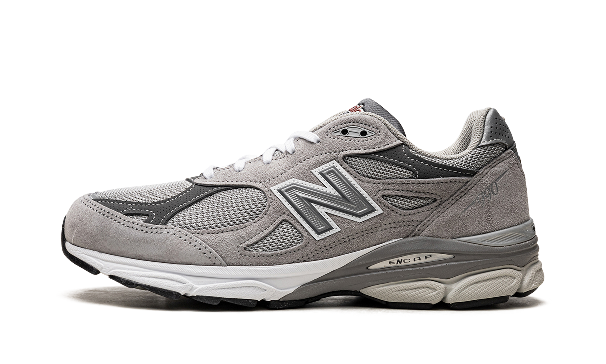 The New Balance 990 V3 “Greyâ€?is a classic. original colorway of the popular lifestyle shoe by the Boston footwear company. Dubbed simply the “Greyâ€?colorway. this New Balance 990 V3 is the third installment of the retro running shoe that was originally released in 2012 as part of the silhouette's 30th anniversary celebration. The “Greyâ€?features a grey mesh base with tonal suede and leather overlays throughout its design. Silver â€?90â€?branding is found on the lateral side of the heel. red “NBâ€?detailing appears on the heel. and “New Balance Made in USAâ€?insignia is located on the tongue. An ENCAP cushioned white-and-cream midsole completes the look.