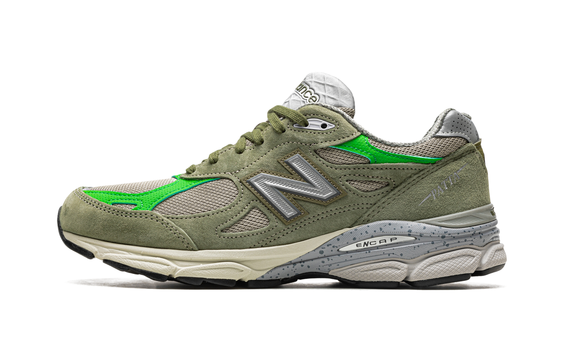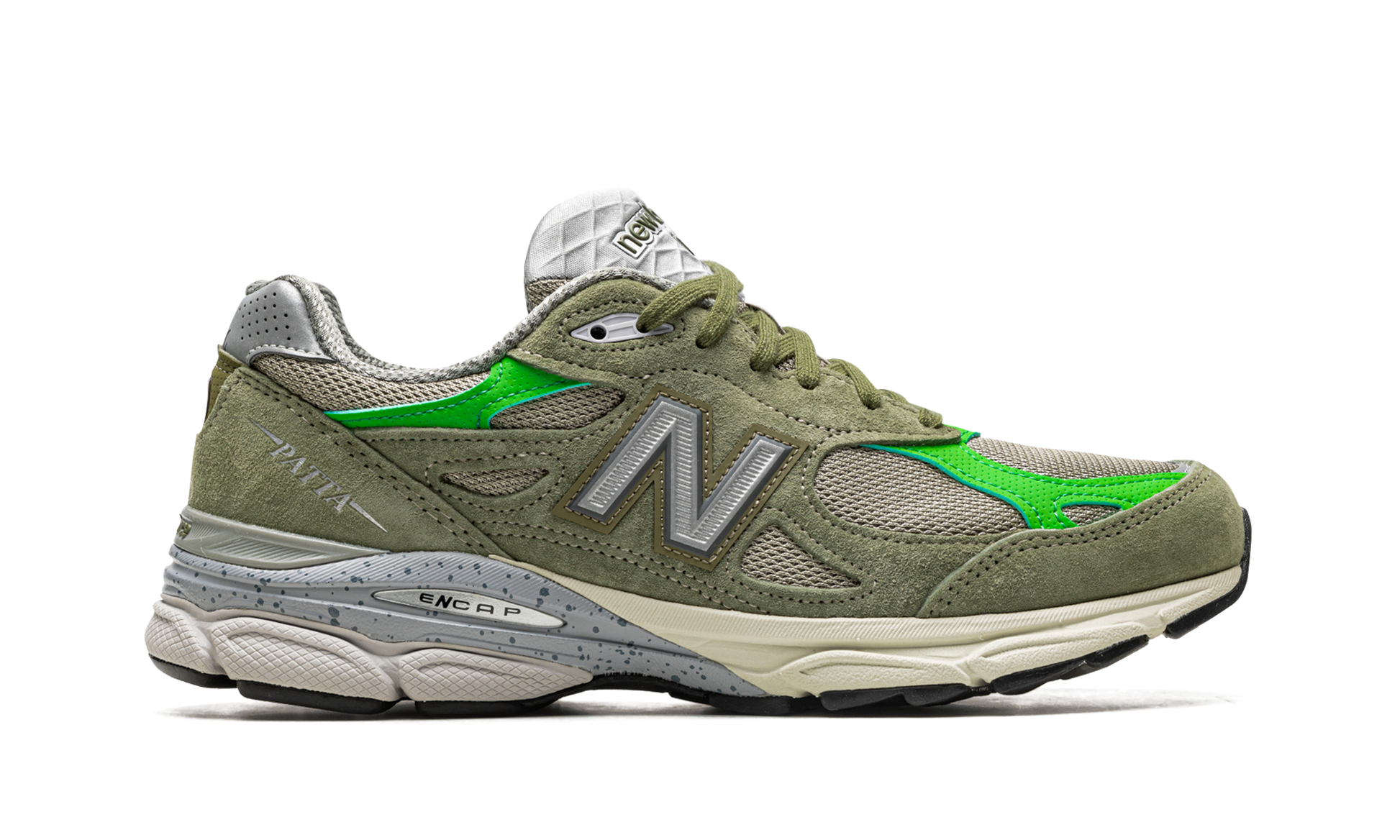 The Patta x New Balance 990 V3 is a collaboration between the Amsterdam-based sneaker boutique and New Balance that dresses the lifestyle shoe in an earth tone colorway. The New Balance 990 V3 by Patta is yet another standout release by both entities. which is hardly surprising given Patta and New Balance's longevity in footwear. Here. the shoe features an olive green mesh base with tonal suede overlays throughout. A grey “Nâ€?logo can be found on either side of the shoe. Silver “Pattaâ€?branding appears on the lateral side of the heel. and dual “Pâ€?and “Made in USAâ€?detailing is found on the heel. The 990 V3's original “New Balance USAâ€?branding dots the tongue. A two-tone midsole with cream on the forefoot and grey with speckle detailing on the heel completes the look. Release date: October 7. 2022