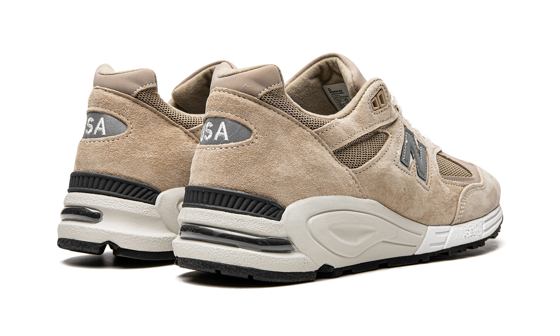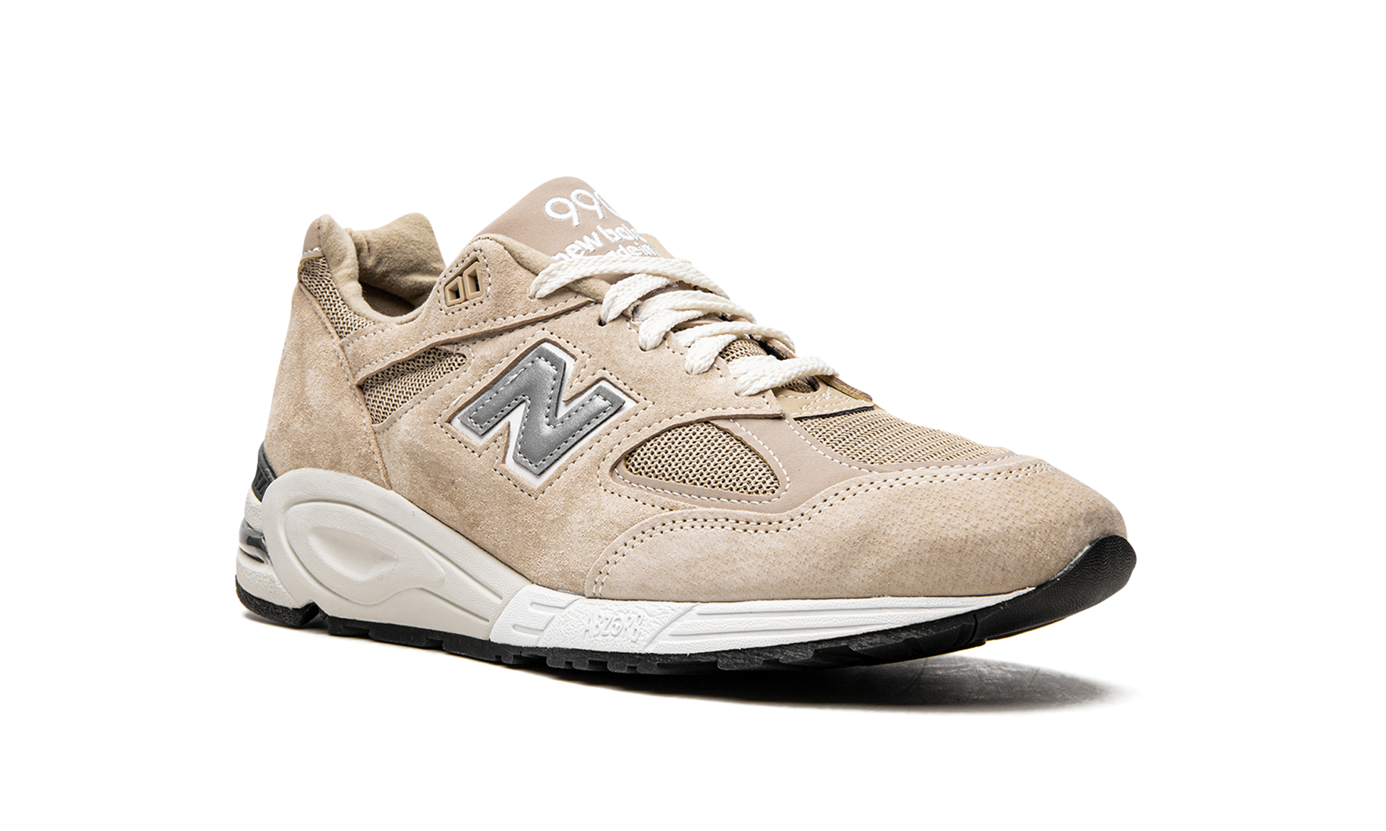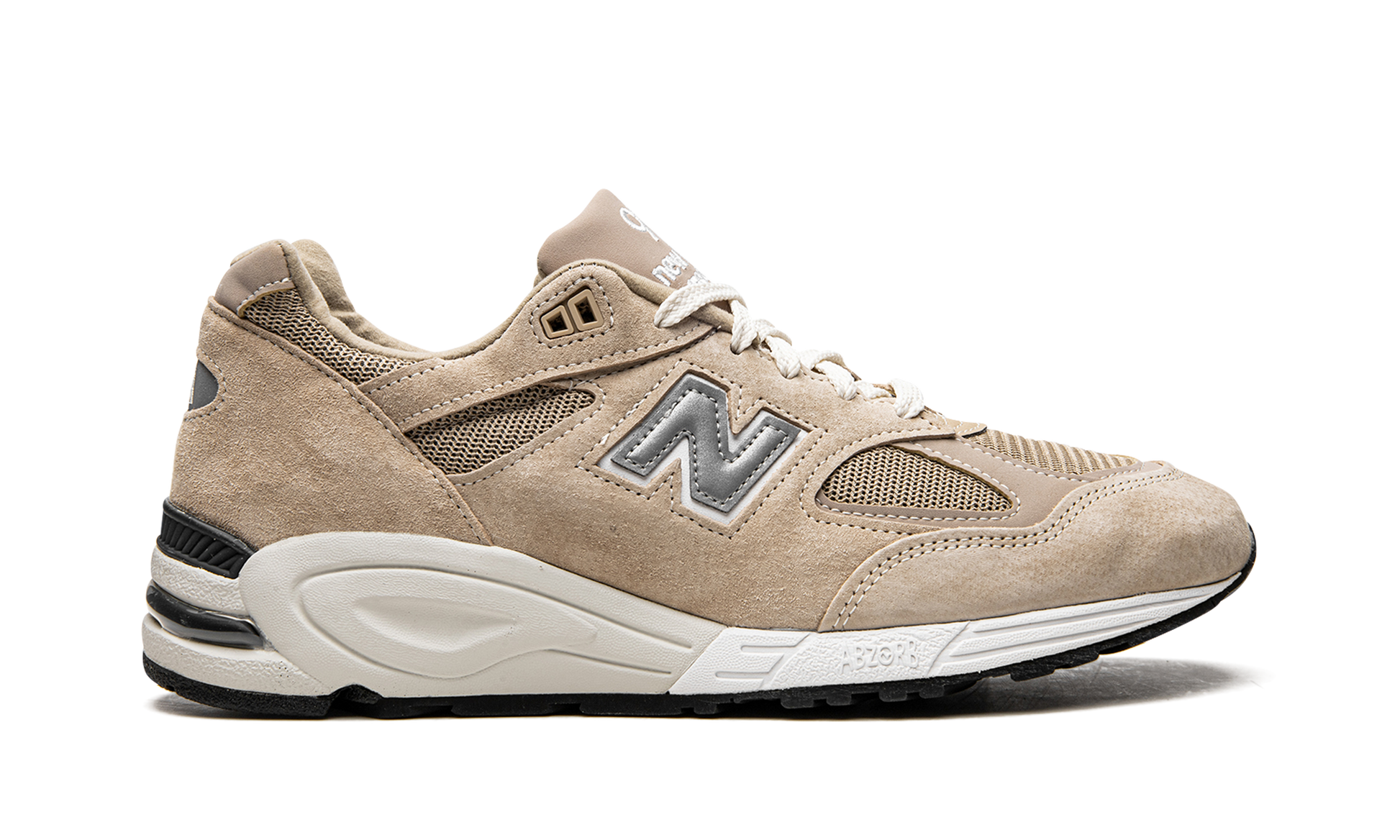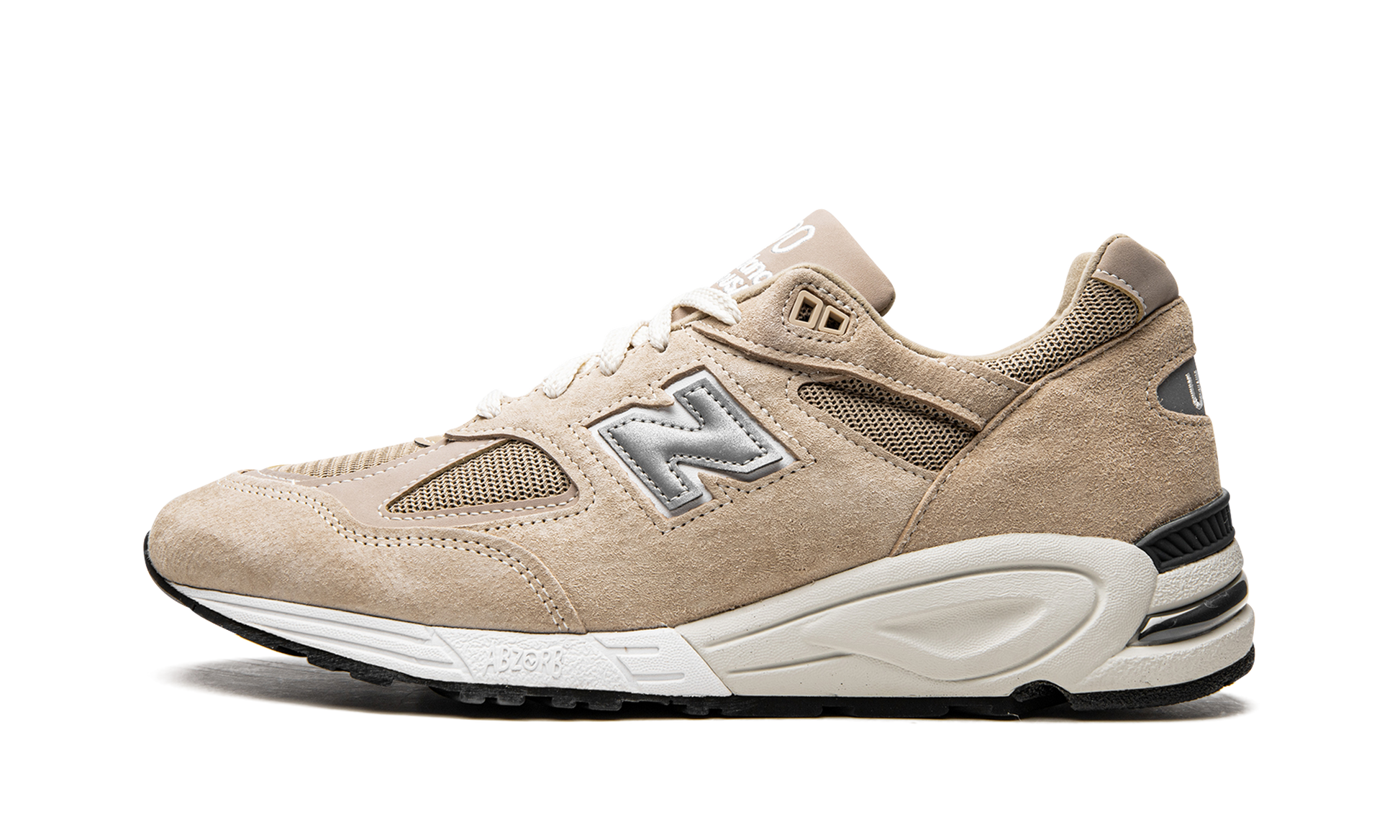 The Kith x New Balance 990 V2 “Tanâ€?is a collaboration between Ronnie Fieg's New York based sneaker and clothing boutique and New Balance on the classic running sneaker. A longtime collaborator with New Balance. Fieg's Kith boutique gives the New Balance 990 V2 a versatile makeover on the “Tanâ€?colorway. A combination of tan mesh and suede appear on the shoe's design. specifically on its base and overlay panels. A contrasting silver “Nâ€?logo appears on the sides. Additional branding includes “USAâ€?detailing on the heel and “New Balance 990â€?and “Made in USAâ€?stitching on the tongue. An ABZORB cushioned midsole provides the wearer with a comfortable ride.