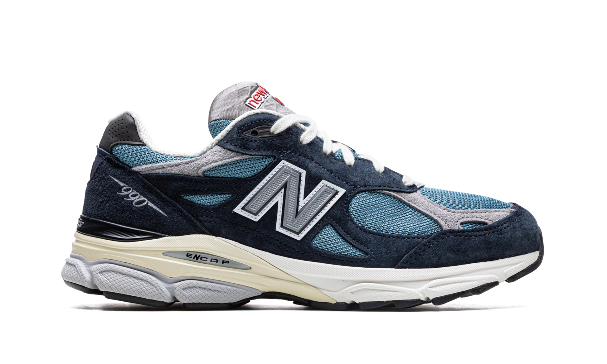 The New Balance 990 v3 “Navy/Castlerockâ€?is a predominantly two-tone. dark-and-light-blue colorway of the premium lifestyle shoe. The New Balance 990 v3 is one of the most popular models from the Boston based footwear brand's line of Made in the USA sneakers. The upper is complete with a Castlerock-colored mesh base with navy suede overlays. A contrasting grey “Nâ€?logo appears on either side of the shoe. Grey leather and suede overlays are found on the toe and collar. respectively. The shoe's ENCAP cushioned midsole provides all-day comfort.
