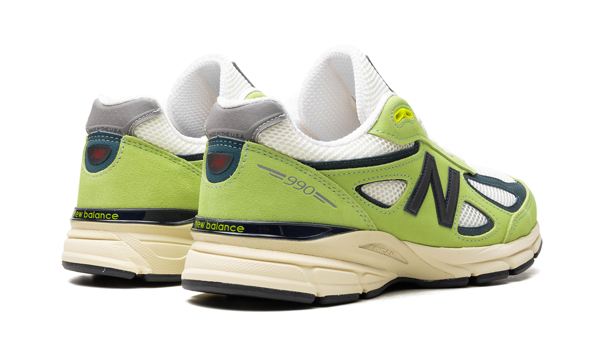 The New Balance 990v4 Made in USA “Hi-Liteâ€?is a head-turning colorway of the popular shoe from New Balance's “Made in USAâ€?collection. The New Balance 990v4 Made in USA is a popular shoe from Aimé Leon Dore founder Teddy Santis's collaboration with New Balance as the Creative Director of its “Made in USAâ€?line. This colorway features an off-white mesh construction with Hi-Lite Green suede overlays. A dark grey “Nâ€?appears on the side. while a “New Balance Made in USAâ€?logo is found on the tongue. Underfoot. a vintage-looking cream ENCAP cushioned foam midsole provides all-day comfort. Release date: June 7. 2024