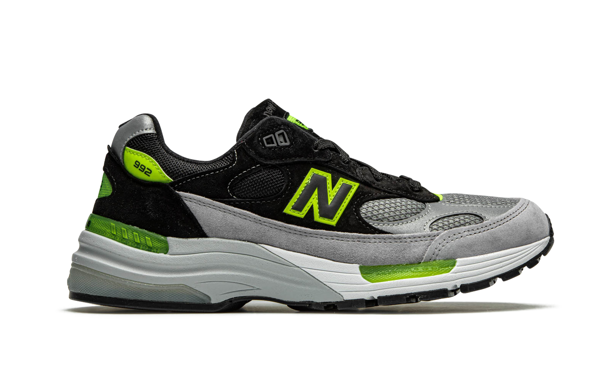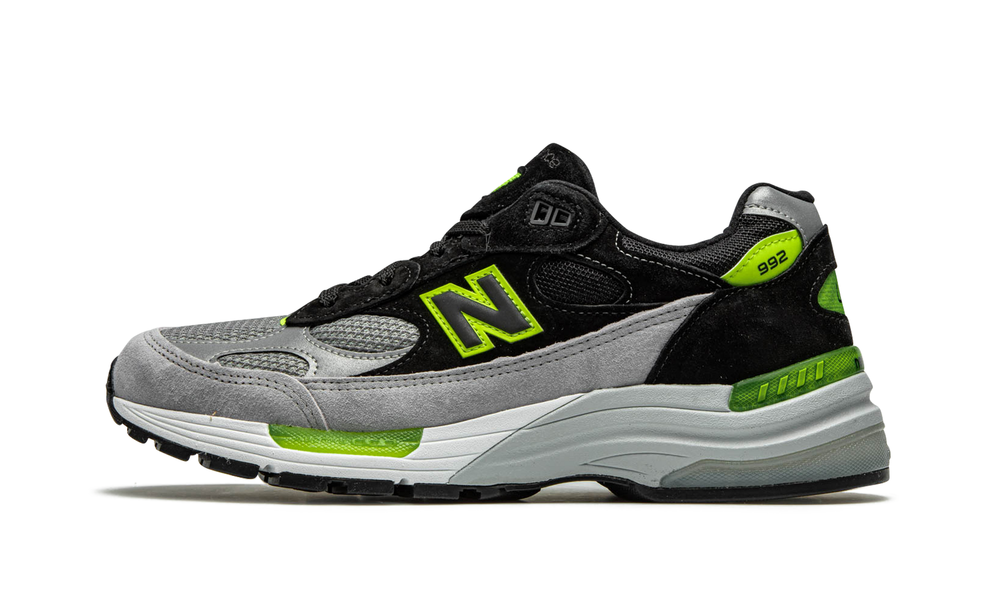 The New Balance 992 “Hi Vizâ€?is a Fall 2020 release by the New England based footwear brand in a desirable lifestyle colorway. The “Hi Vizâ€?(or "High Visibility) features neon accents against predominantly neutral panels and materials for a unique look for the popular 992 model. Plush grey mesh detailing can be found on the toe and forefoot beneath a tonal leather overlay panel. New Balance adds a soft cut of black suede to the shoe's mid-panel. A reflective charcoal “Nâ€?logo with neon green trim adds a burst of color to the look. Elsewhere. tonal mesh appears on the collar and a black suede panel is stitched onto the heel. Subtle â€?92â€?detailing is printed onto the “Hi Vizâ€?or neon green overlay on the collar. The same eye-catching hue appears on the “USAâ€?branding window on the heel. on the clear “New Balanceâ€?panel on the back of the shoe. and on the translucent overlay in the forefoot of the midsole.
