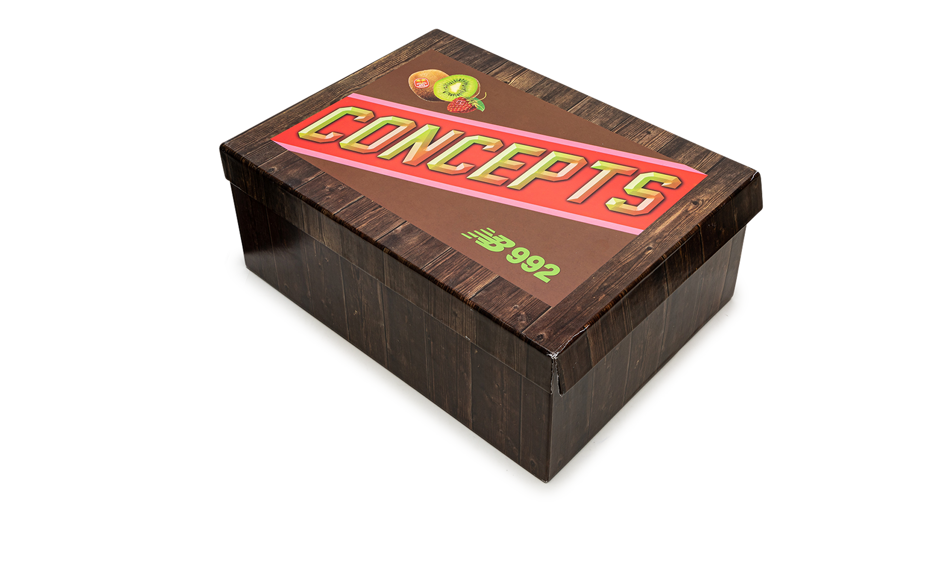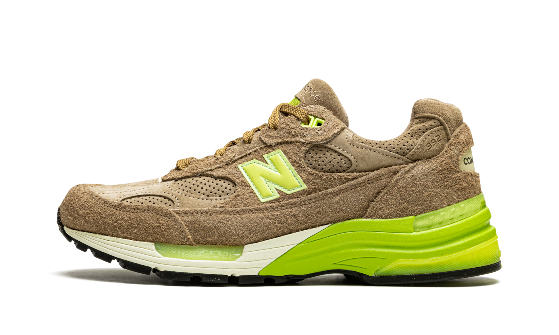 Celebrate sneaker culture with the Concepts x New Balance 992 "Low Hanging Fruit." This collaboration with the Boston boutique is inspired by the kiwi fruit's introduction to the West. Featuring a brown suede upper reminiscent of the kiwi's skin. lime accents. and a strawberry-printed insole nodding to 90s kiwi-strawberry drinks. this shoe is a unique tribute to sneaker history.