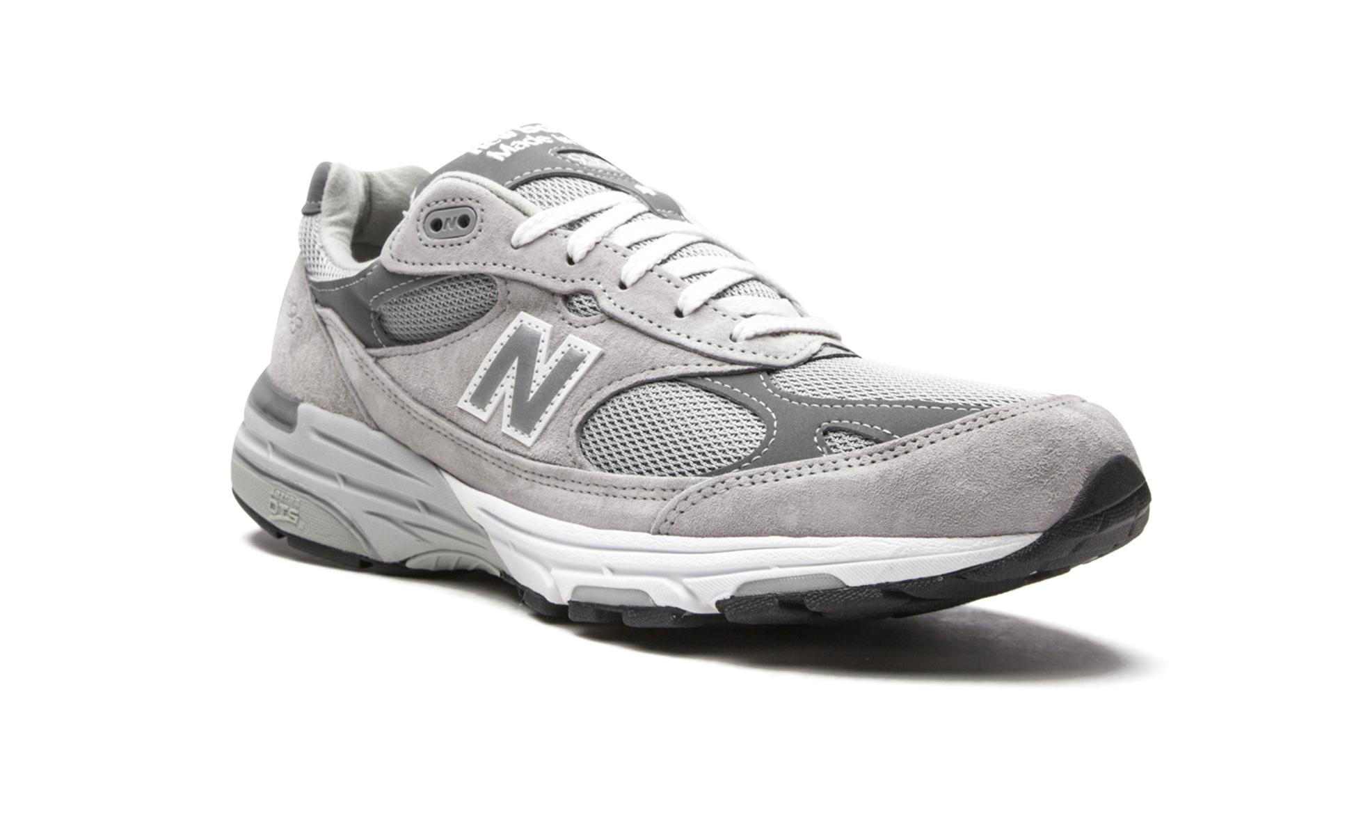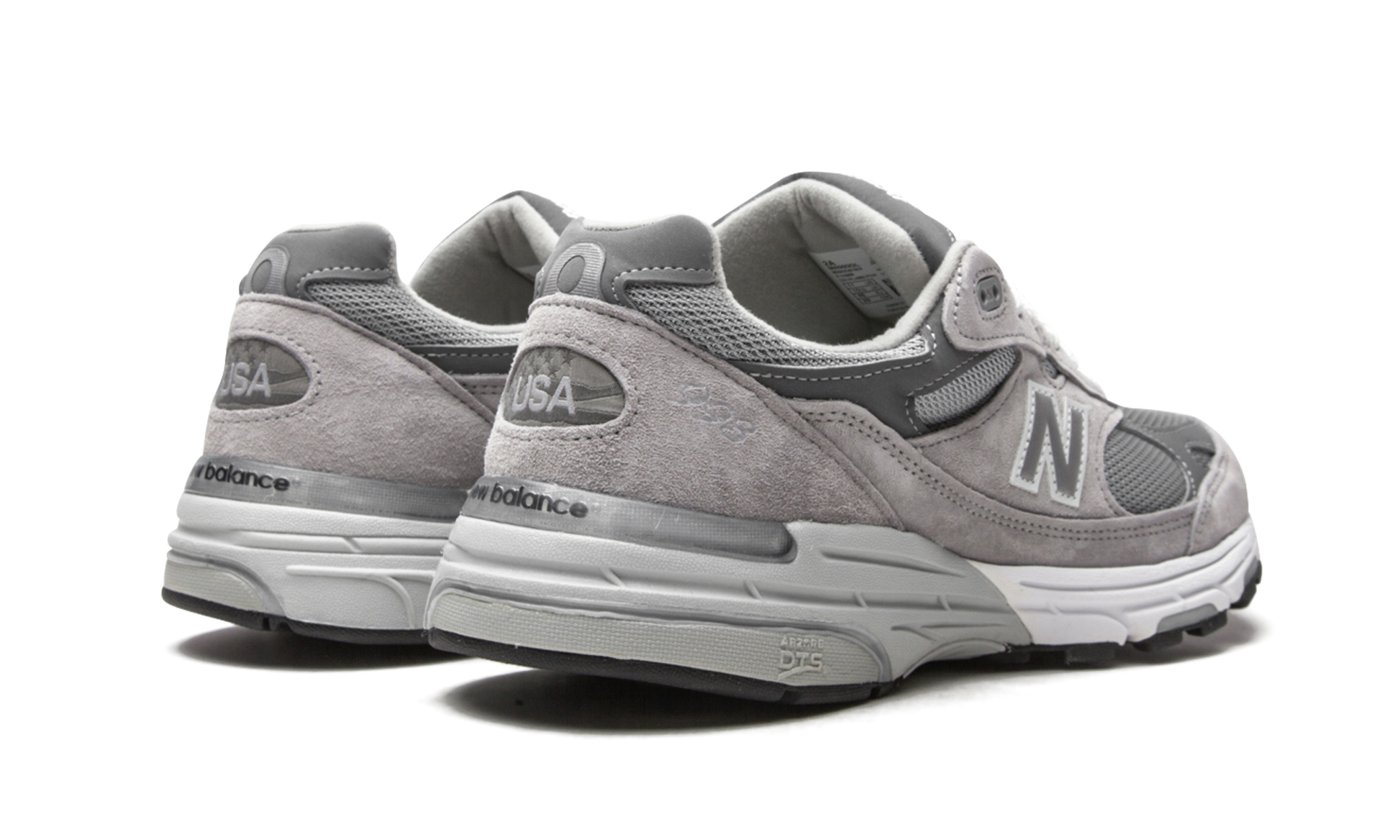 The New Balance 993 “Greyâ€?is a premium lifestyle shoe by the New England based heritage footwear company. A popular option in New Balance's 990 line. the 993 combines elevated craftsmanship with top-tier comfort. As its nickname suggests. the “Greyâ€?is a neutral based look that displays a grey mesh base. Supple tonal suede overlays appear on the toe cap. eyelets. mid-panel. and heel. Dark grey leather detailing on the toe and collar provide a low-contrast look. A silver reflective “Nâ€?logo with a contrasting white trim can be found on both sides of the upper and a “USAâ€?branding window on the heel denotes the origins of the shoe's manufacturing. White “New Balance Made in USAâ€?embroidery is stitched onto the tongue above the â€?93â€?insignia. The chunky grey midsole features New Balance's responsive ABZORB cushioning for superior comfort.