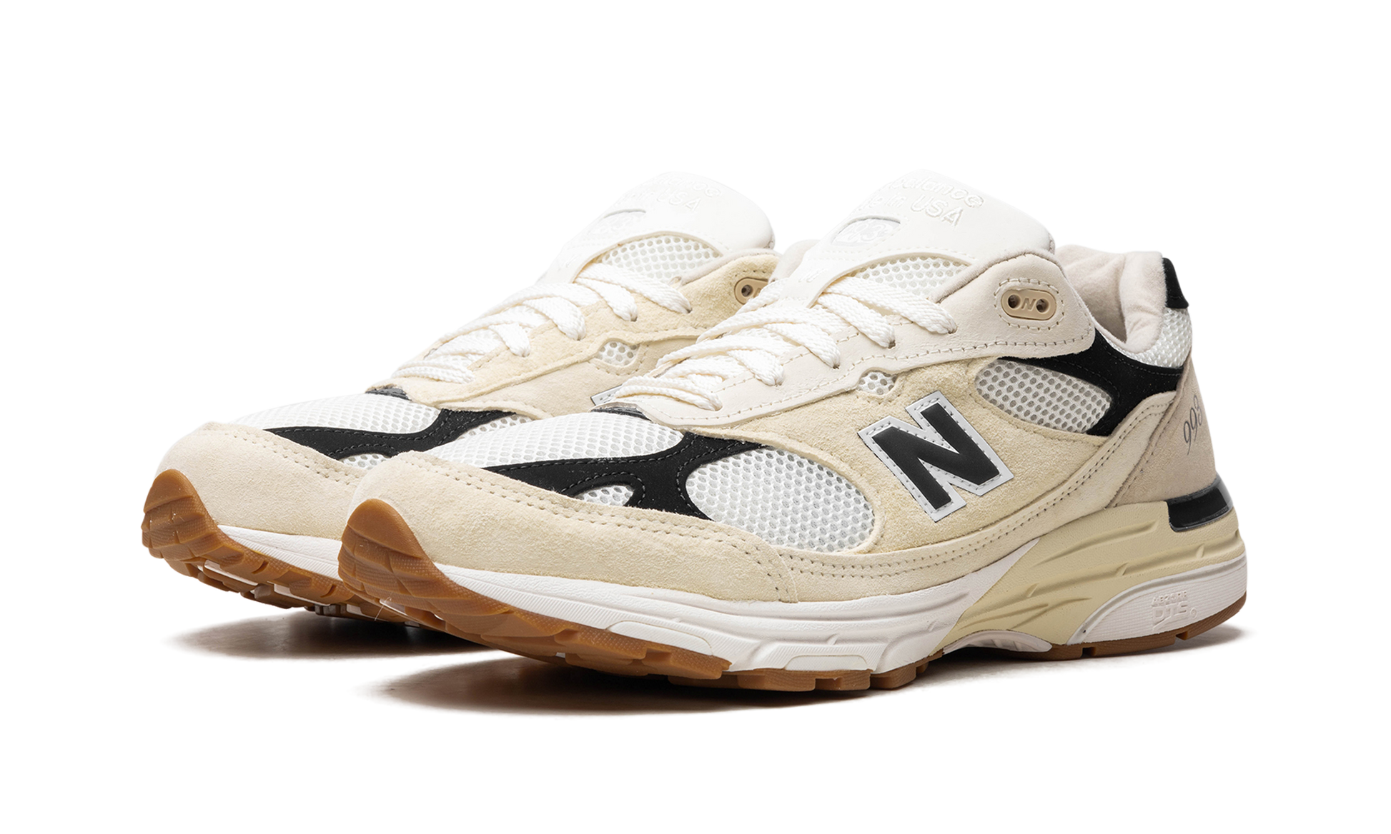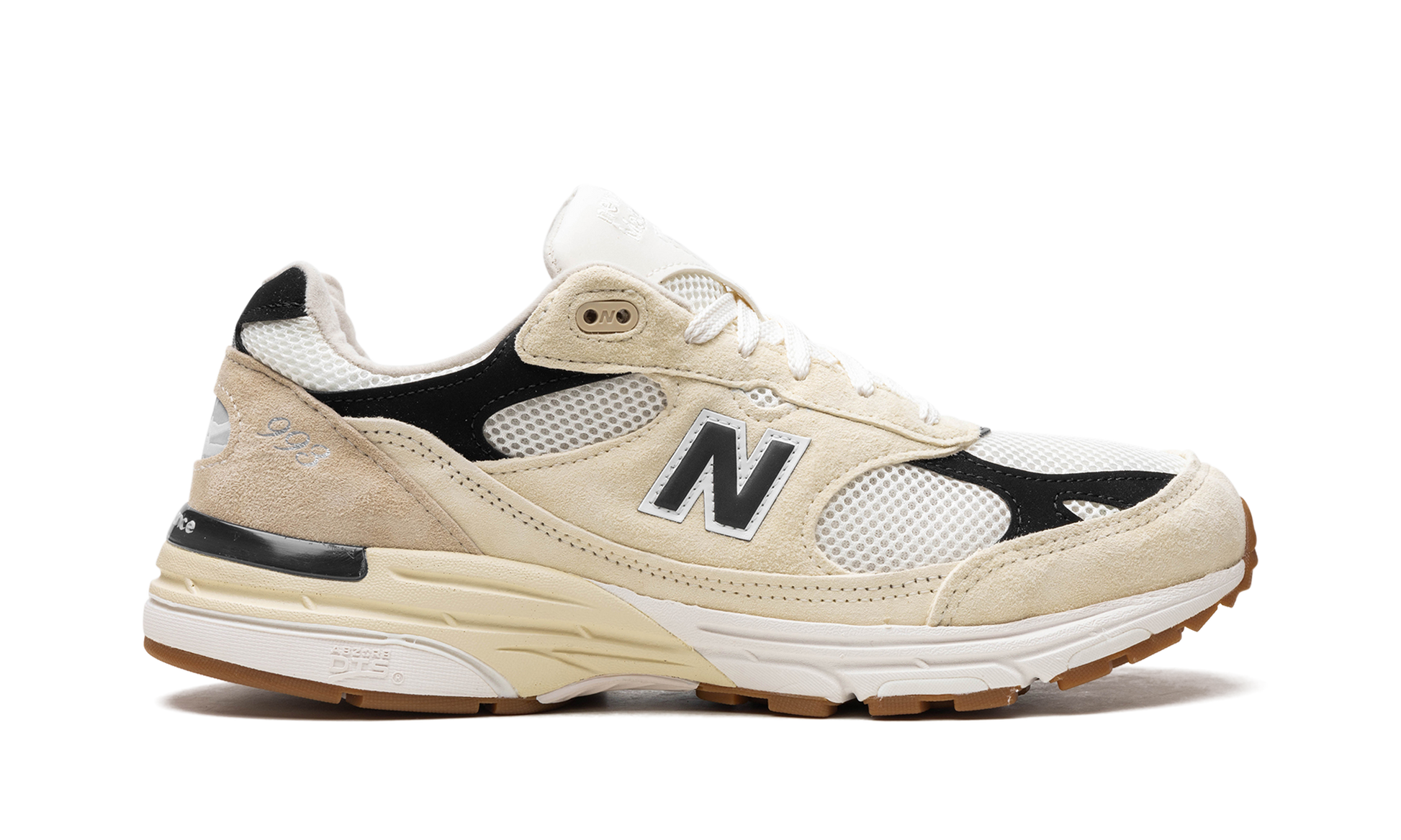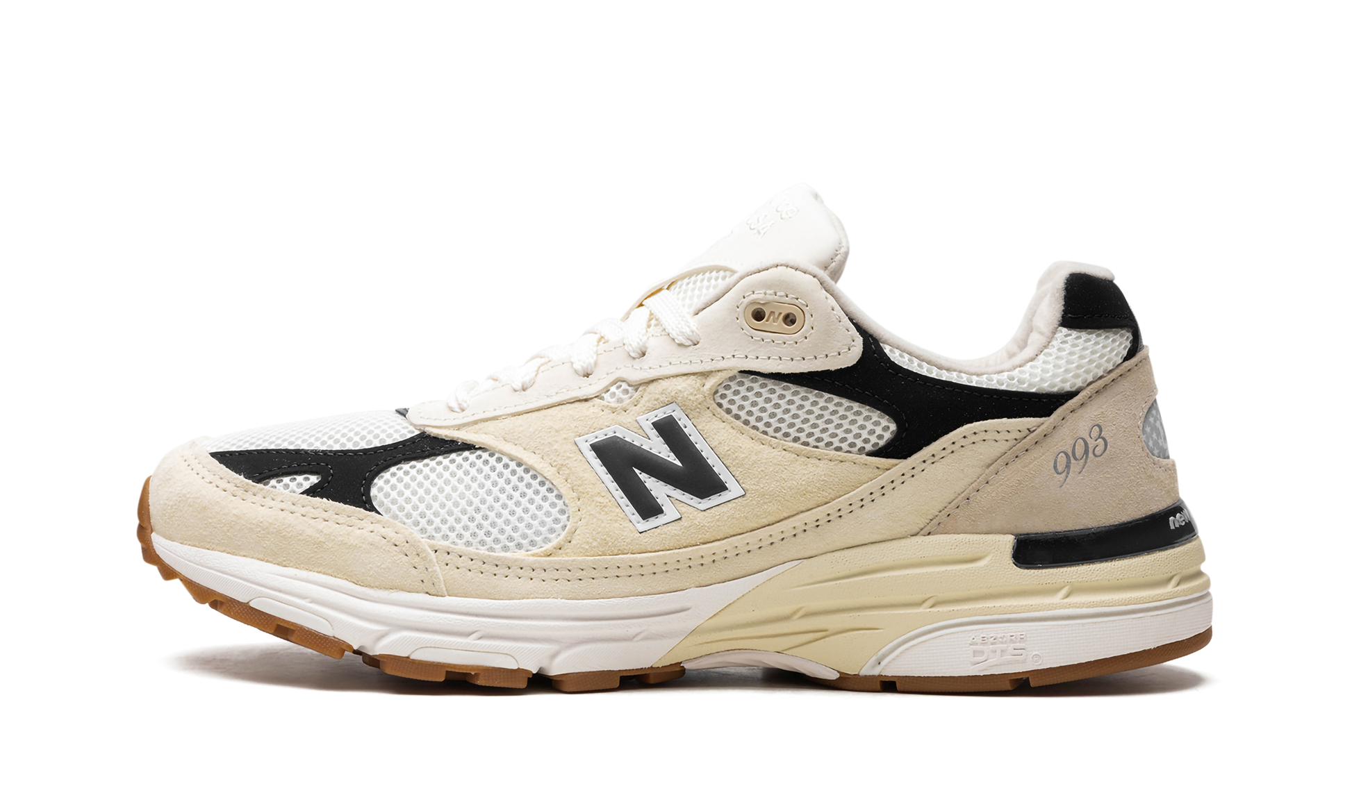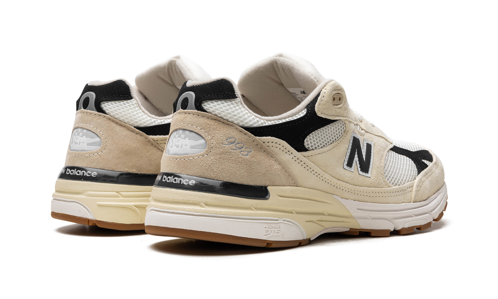The New Balance 993 Made in USA “Sea Salt/Blackâ€?is a neutral-based colorway of the lifestyle shoe from New Balance's “Made in USAâ€?line. The New Balance “Made in USAâ€?collection is a popular lineup of sneakers overseen by Aimé Leon Dore founder and lead designer Teddy Santis. The “Made in USA - Sea Salt/Blackâ€?features a white mesh base with Black and Sea Salt suede overlays. A Black “Nâ€?logo outlined in white appears on the mid-panel and silver â€?93â€?detailing is seen on the lateral side of the heel. “New Balance Made in USAâ€?branding is embroidered on the tongue. The heel of the midsole has an aged finish.