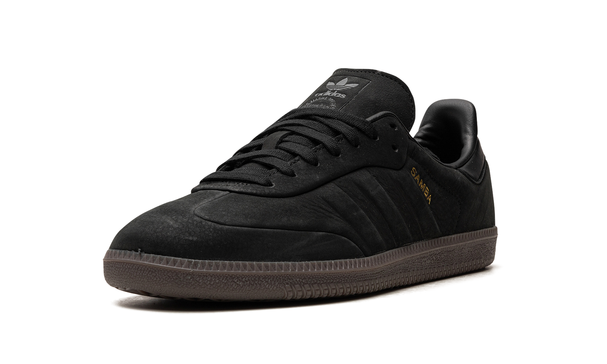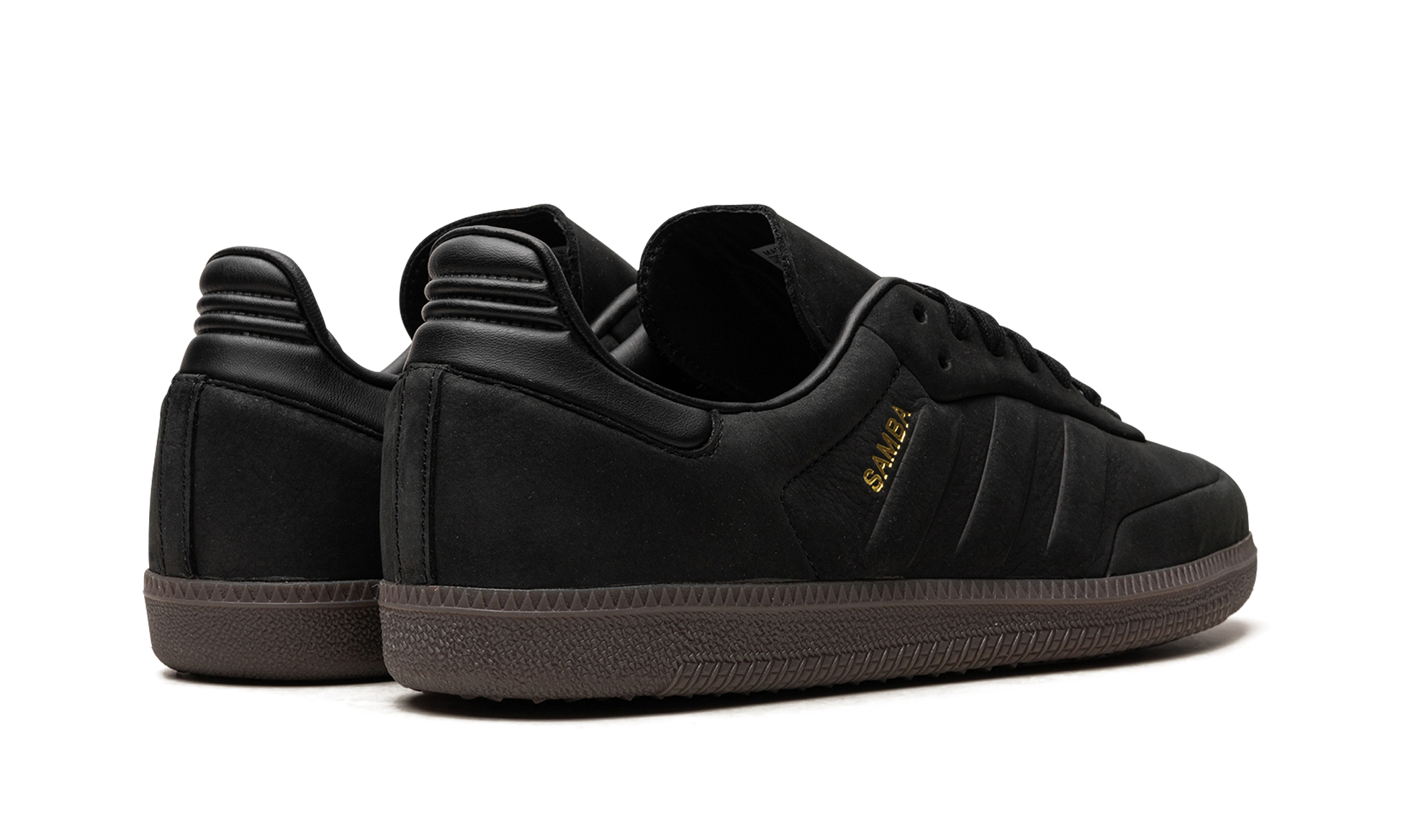The adidas Samba “Core Black/Gumâ€?is a black-based colorway of the popular sneaker by the German footwear company. Versatile in every sense of the word. the Samba in “Core Black/Gumâ€?features a black nubuck construction with a tonal overlay on the toe. Molded Three Stripes branding is seen next to gold “Sambaâ€?detailing on the side. A black leather heel tab and black nubuck tongue with tonal “adidas Sambaâ€?branding add to the look. Underfoot. a dark gum rubber sole completes the stealthy appearance of this premium Samba. Release date: September 15. 2023