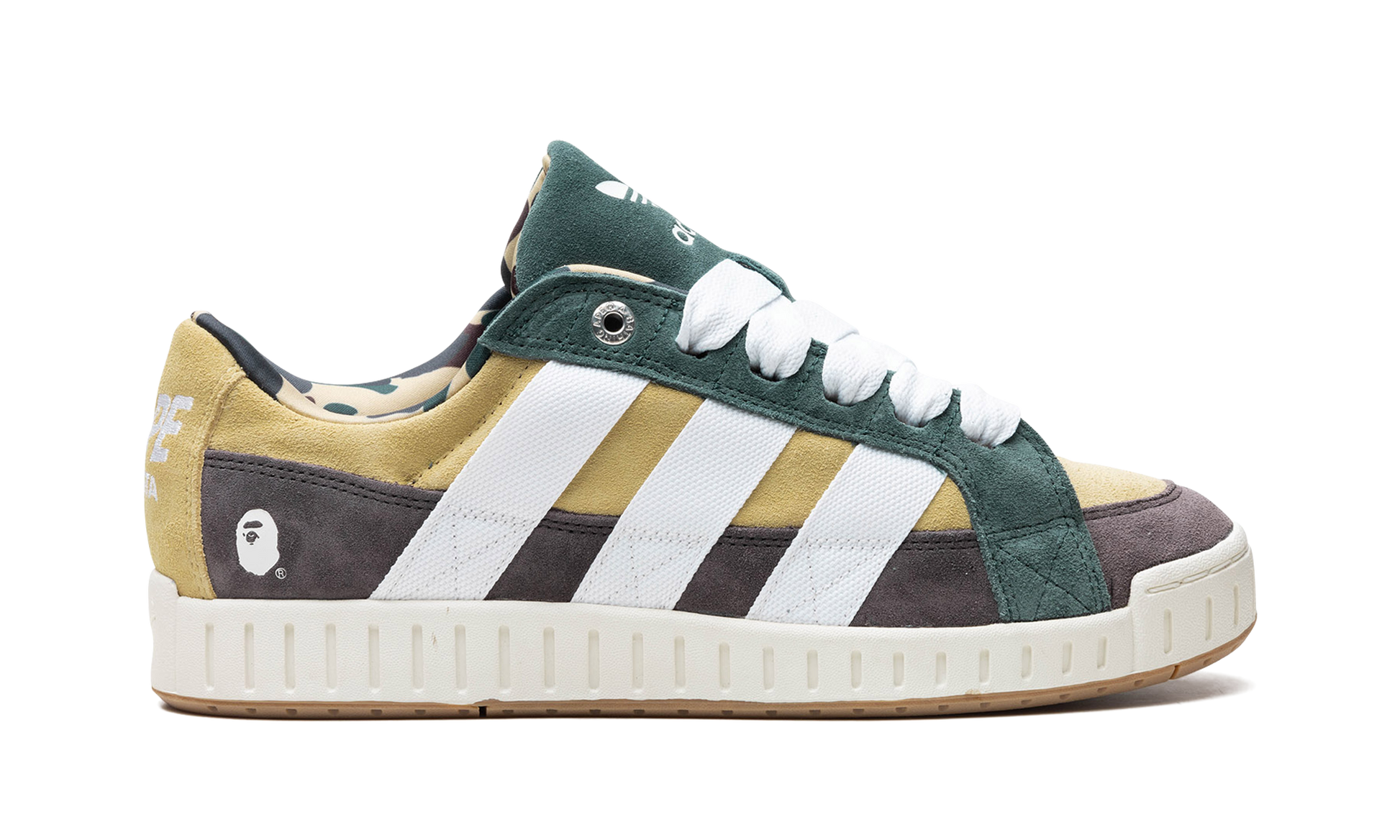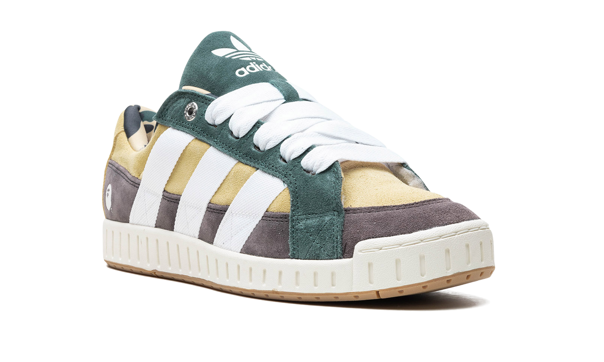 The BAPE x adidas N “Sandâ€?is a collaboration by the popular Japanese streetwear brand and adidas on the lifestyle shoe. The BAPE x adidas N Pack celebrates the brands' storied partnership. Available in “Shadow Greenâ€?and “Sand.â€?the adidas N by BAPE has an early 2000s-era skate shoe design. Specifically. the shoe's upper is complete with a Sand and Brown suede construction. Oversized white nylon Three Stripes branding appears on both sides. while BAPE's signature camo motif appears in the sock liner. A debossed APE HEAD is seen on the lateral side of the heel. while a BAPE STA logo appears on the back of the shoe. A discrete stash pocket can be found on the underside of the tongue and provides storage for small items. Release date: April 20. 2024