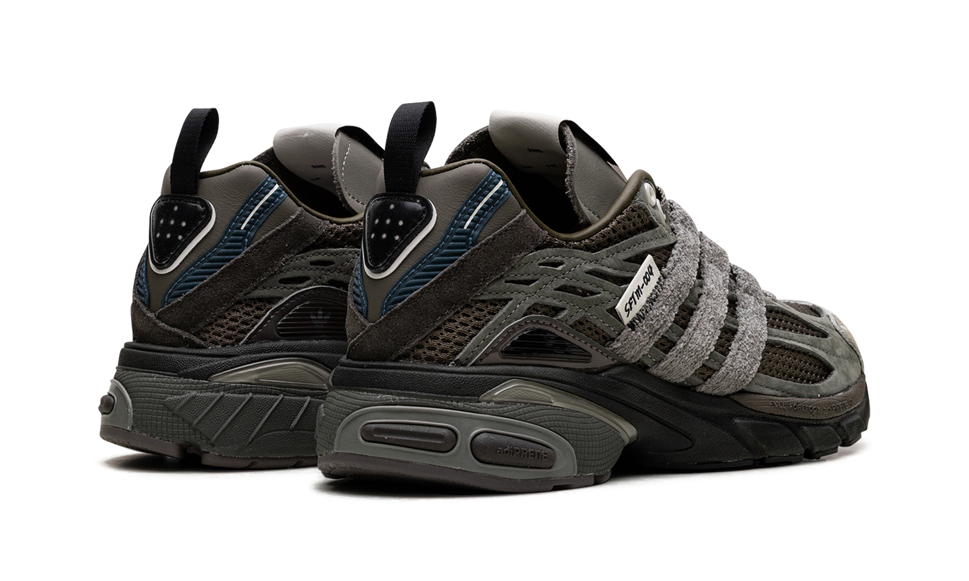 Step into a blend of past and present with the adiStar Cushion 3 "Song for the Mute - Shadow Green" sneaker. This unique collaboration re-imagines the early 2000s runner with a dark. romantic aesthetic inspired by Renaissance and Victorian influences. The textured upper is a rich mix of materials. including breathable mesh. durable synthetic overlays. and a luxe suede toecap. Its plush Adiprene cushioning in the heel and forefoot ensures incredible comfort. while the distinctive. distressed-look midsole and multi-tonal green palette merge vintage inspiration with modern high fashion.
