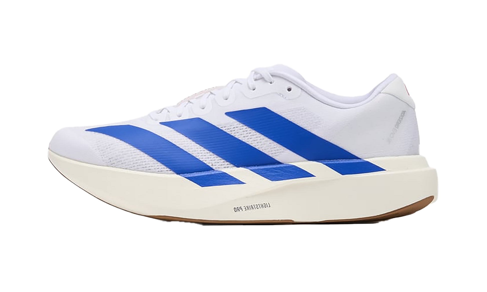 Experience the feeling of fast with the adidas Adizero Evo SL "White Royal Blue." a lightweight running shoe inspired by adidas's elite racing line. Dubbed a "supertrainer." this versatile shoe features a full-length Lightstrike Pro midsole for a responsive. bouncy. and cushioned ride perfect for everything from daily training to tempo runs. The ultralight engineered mesh upper ensures maximum breathability. while the Continentalâ„?Rubber outsole provides excellent grip. all wrapped up in a clean. speed-inspired aesthetic with bright Royal Blue 3-Stripes.