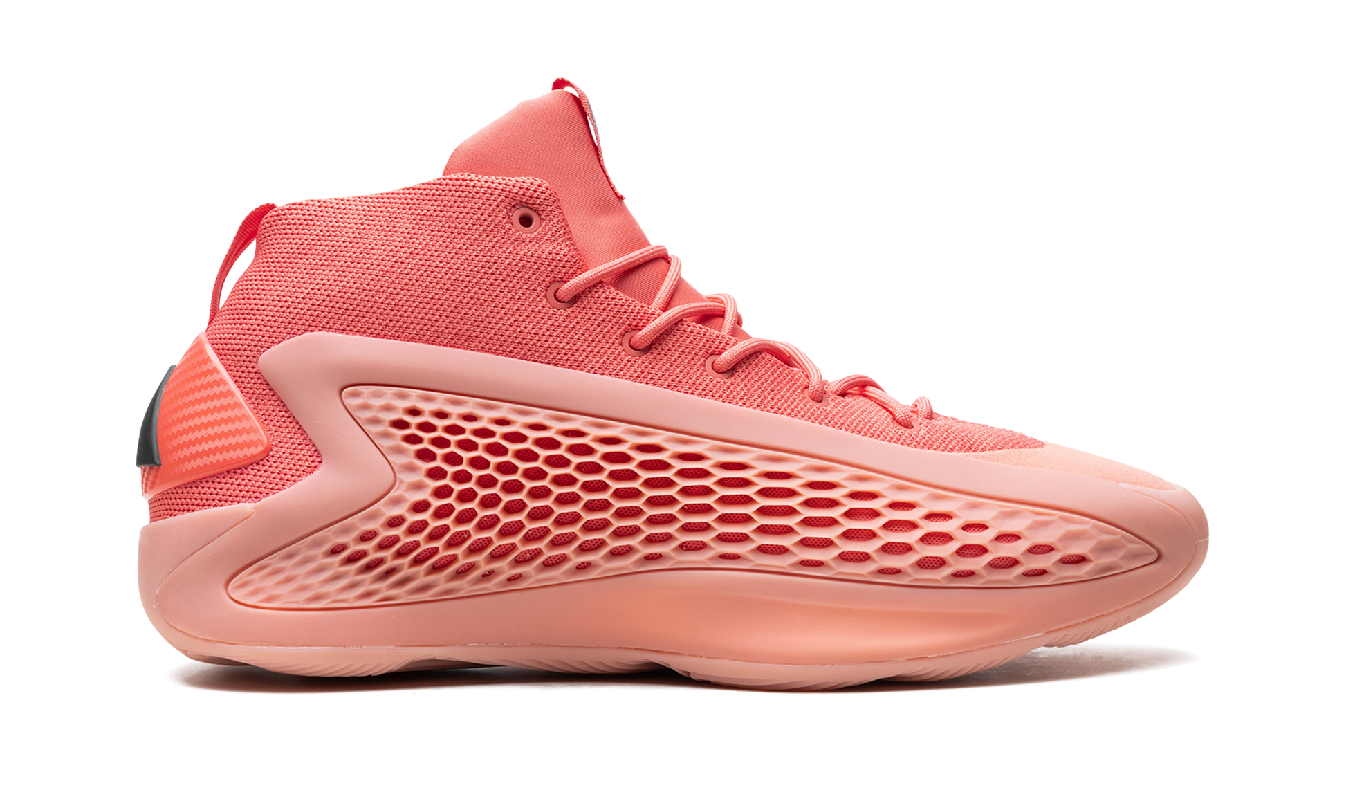 The adidas AE1 "Coral" is a monochromatic pink colorway of Anthony Edwards' first signature shoe with adidas Basketball. A spring and summer-inspired look with its bright appearance. the upper features a Coral-colored knit upper paired with a TPU “cageâ€?in a honeycomb pattern in a slightly lighter shade of Coral. Edwards' signature branding appears on the tongue tag and adidas Three Stripes branding can be found on the heel. Underfoot. the midsole is designed with a combination of adidas's Boost and Lightstrike cushioning for superior performance and energy return. Release date: April 4. 2024