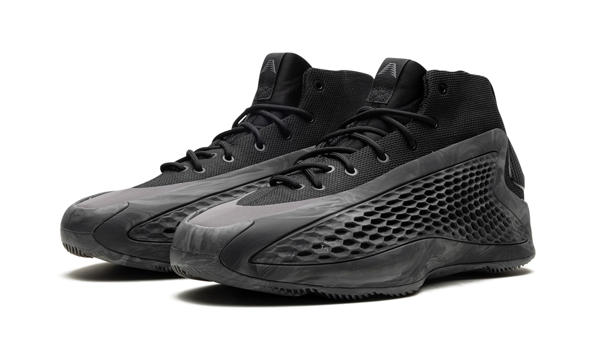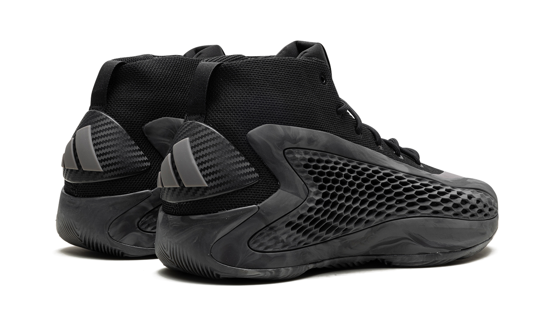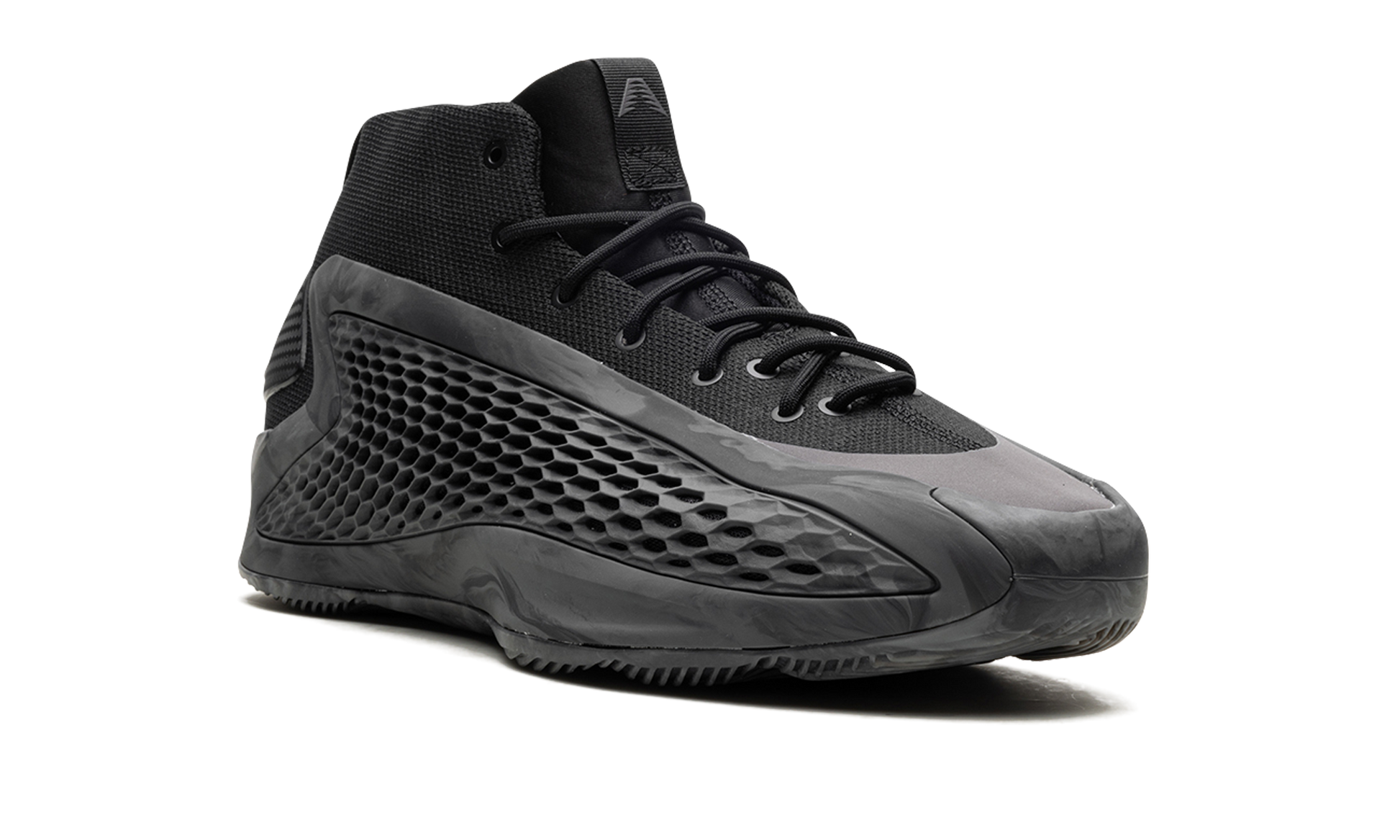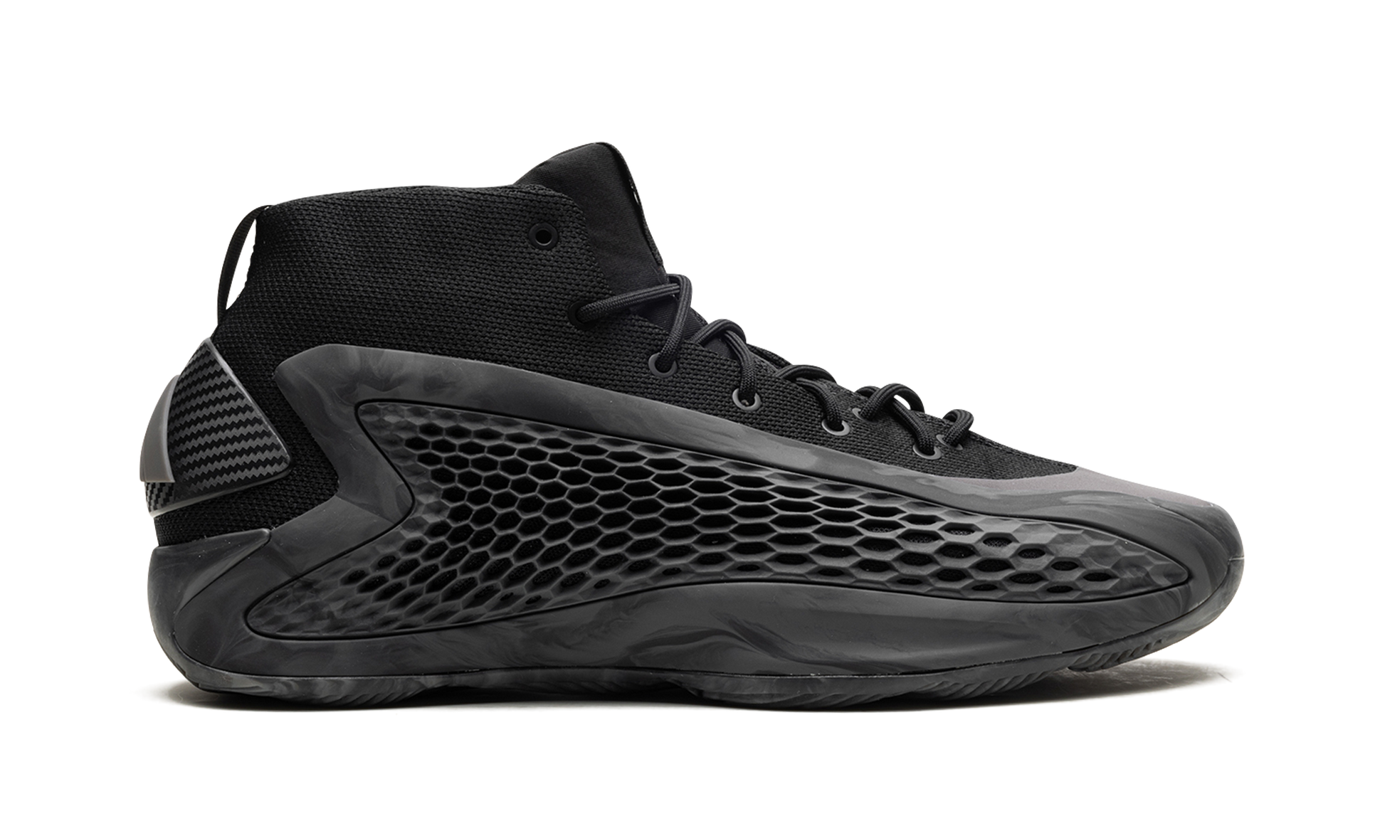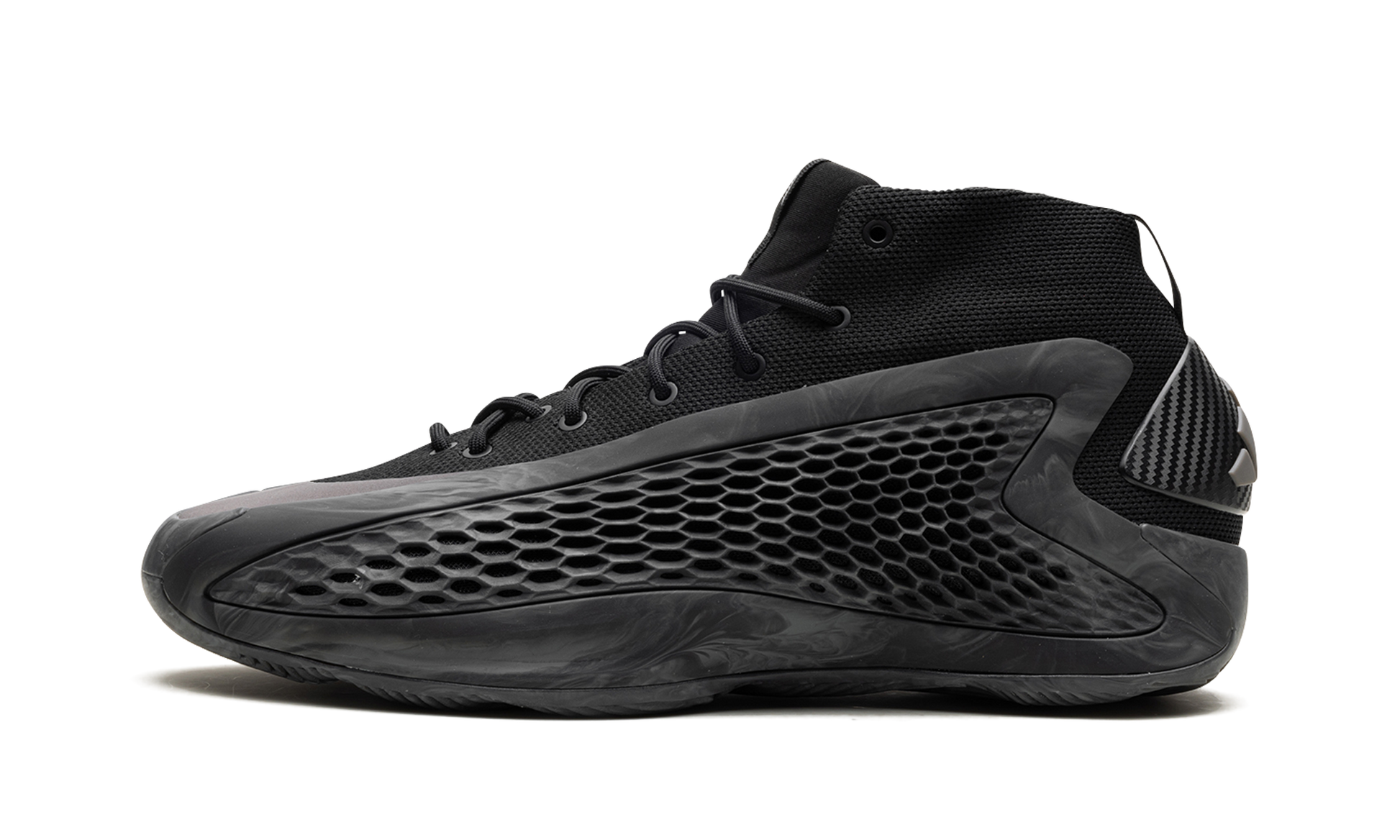 The adidas AE1 "MX Charcoal" is a dark-colored makeup of NBA star Anthony Edwards' first signature shoe with adidas Basketball. On the “MX Charcoal.â€?the upper of the shoe features a black knit textile base with a grey marbled TPU “cageâ€?with perforations in a honeycomb pattern that assist in breathability. Edwards' signature branding appears on the woven tongue tag. while adidas Three Stripes branding can be found on the heel. Underfoot. the midsole is designed with a combination of adidas's Boost and Lightstrike cushioning for superior performance and energy return. Release date: August 2024