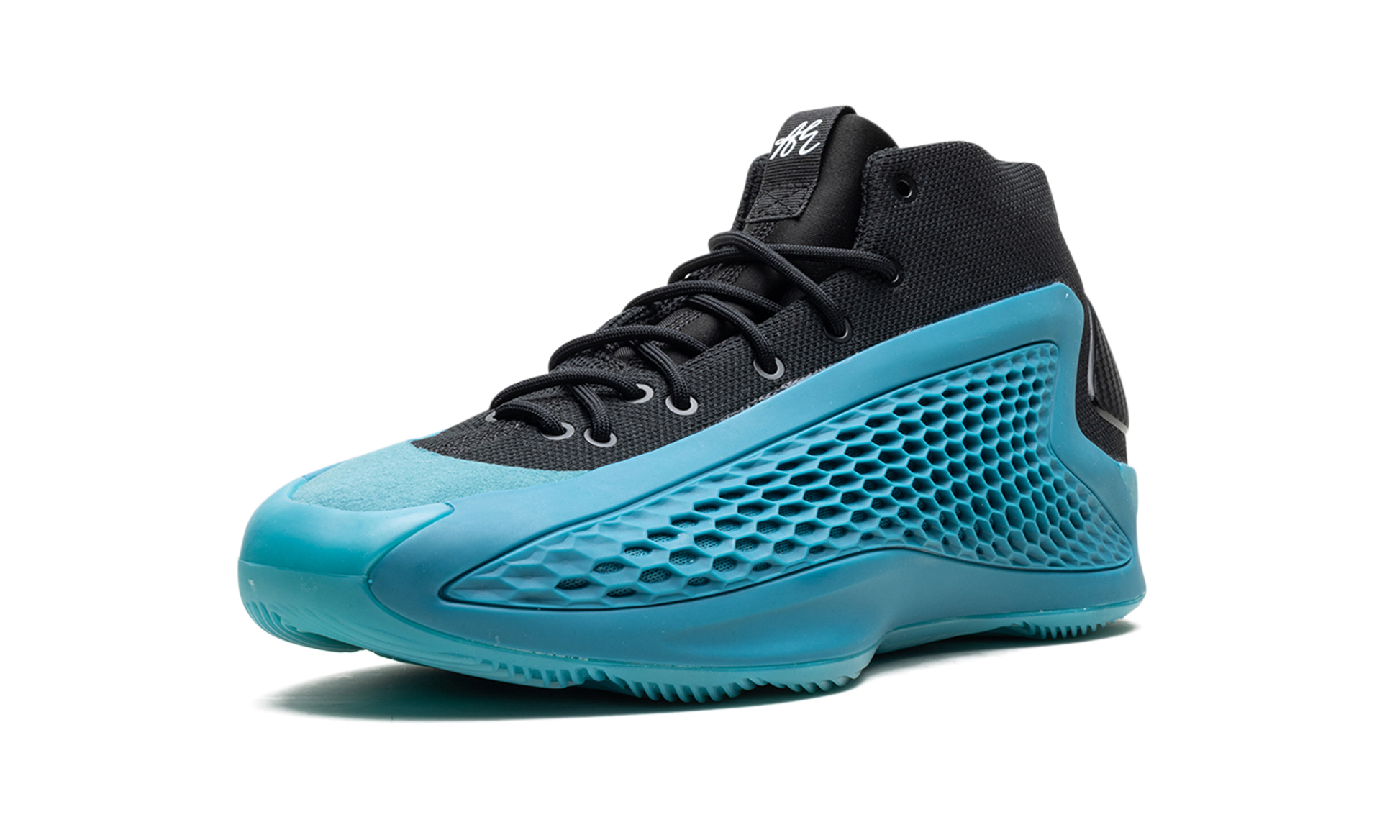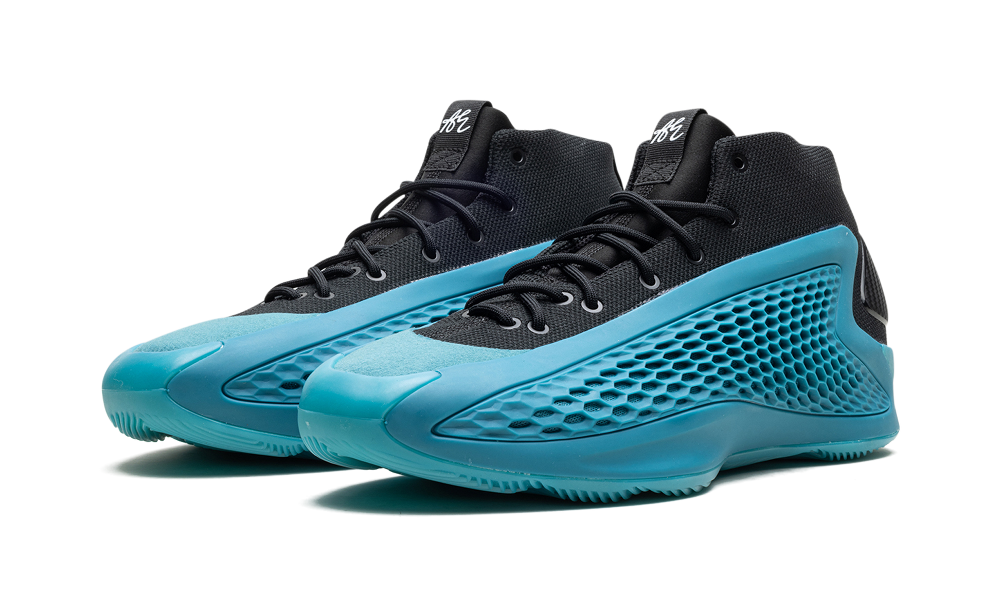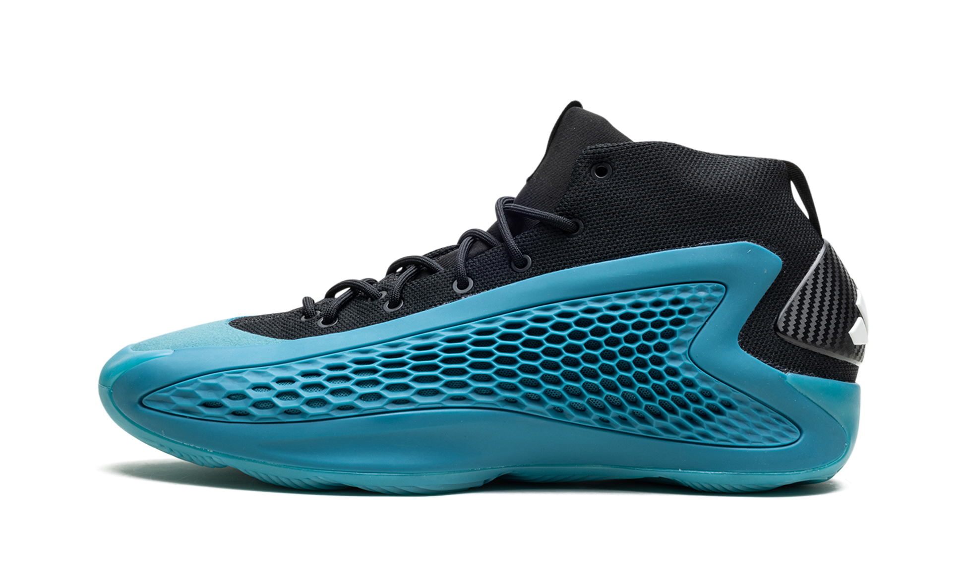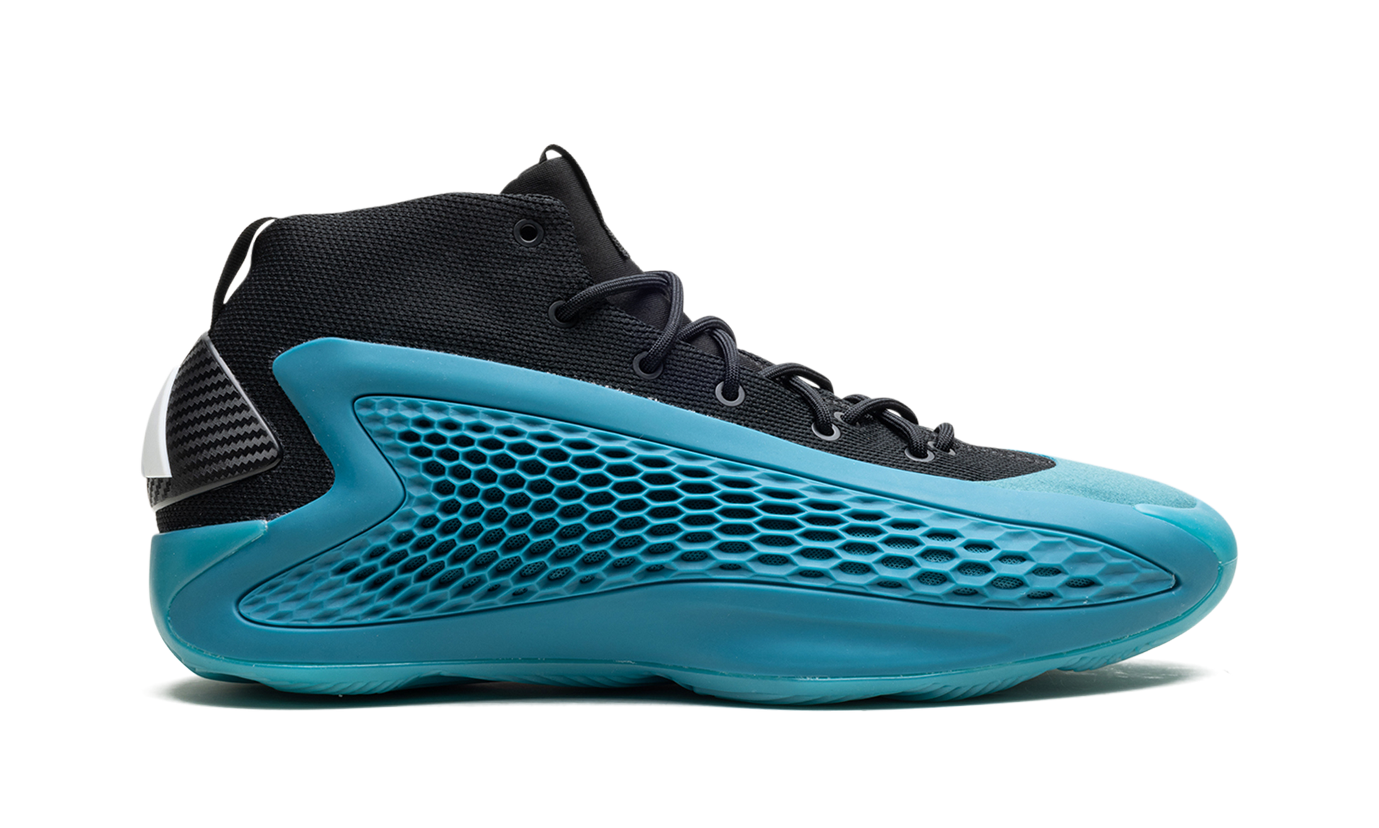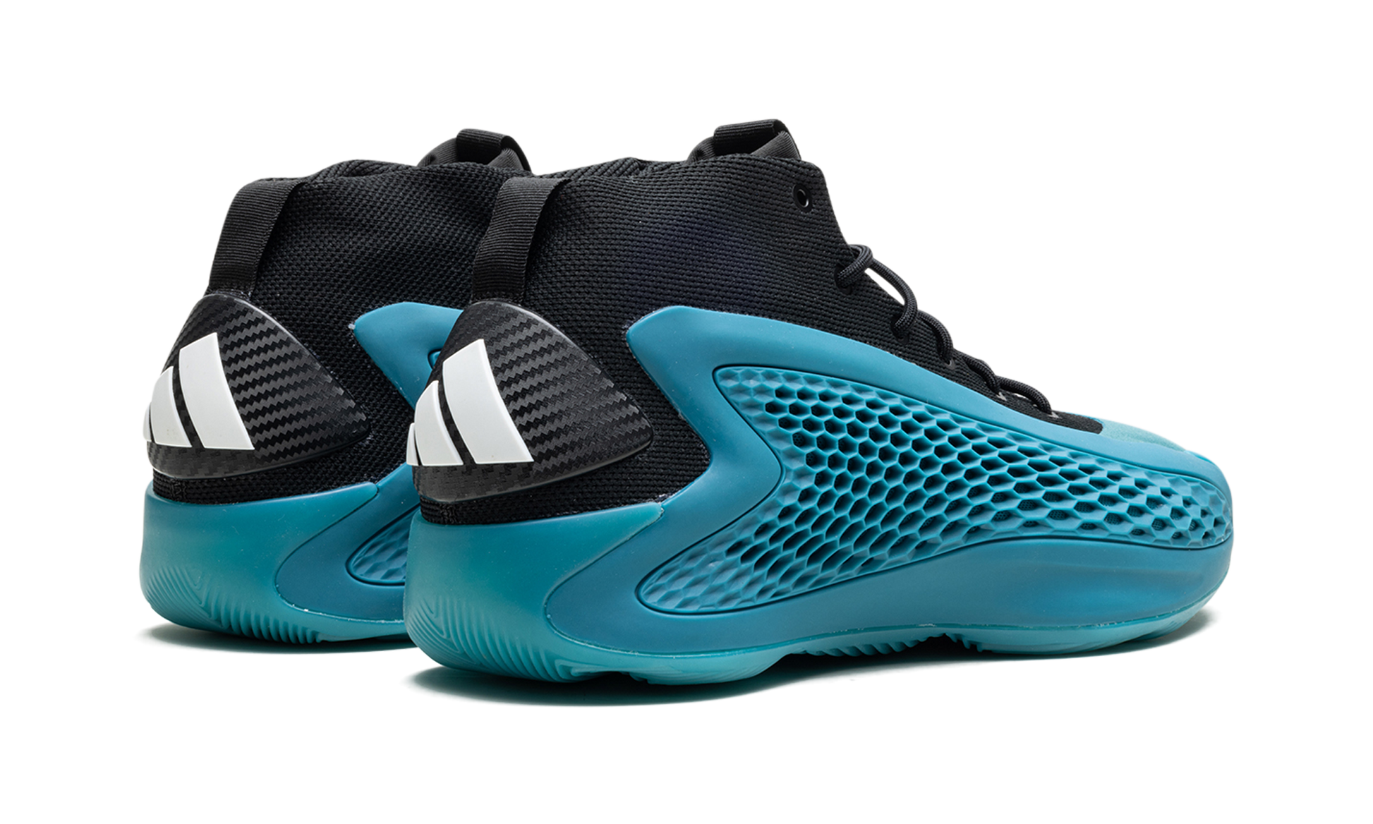 The adidas AE1 "New Wave" is a head-turning colorway of basketball star Anthony Edward's first signature shoe with adidas Basketball. Worn by Edwards during the MInnesota Timberwolves' media day in October 2023. the adidas AE 1 “New Waveâ€?features an Arctic Fusion-colored TPU “cageâ€?with perforations in a honeycomb pattern that assist in breathability. The black Primegreen base is made of recycled materials. Edwards' signature branding appears on the woven tongue tag. while adidas Three Stripes branding can be found on the heel. Underfoot. the midsole is designed with a combination of adidas's Boost and Lightstrike cushioning for superior performance and energy return.