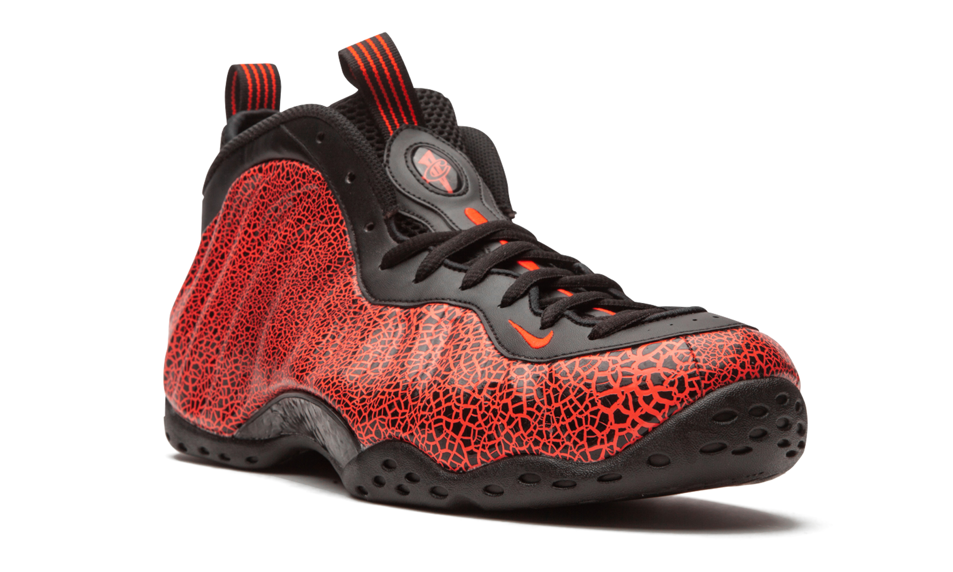 The Nike Air Foamposite One “Cracked Lavaâ€?is a fiery take on Penny Hardaway's former signature performance basketball shoe from the late '90s. The Air Foamposite One is a unique silhouette that utilizes a molded synthetic Foamposite material on its upper that essentially “moldsâ€?to your foot. As for the design. a “Cracked Lavaâ€?pattern appears on the Foamposite material. Contrasting black leather detailing spans from the toe to eyelets and collar. The black mesh tongue features Hardaway's â€?Centâ€?branding on a leather overlay. Additional â€?Centâ€?insignia is embroidered onto the black leather overlay on the heel. Two-tone red and black pull tabs assist in easy on-off wearability. The carbon fiber midfoot plate is surrounded by black rubber pods with holes on the forefoot and heel. Release date: January 19. 2020.