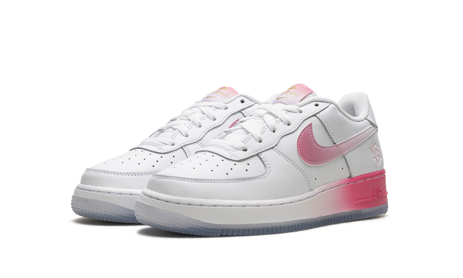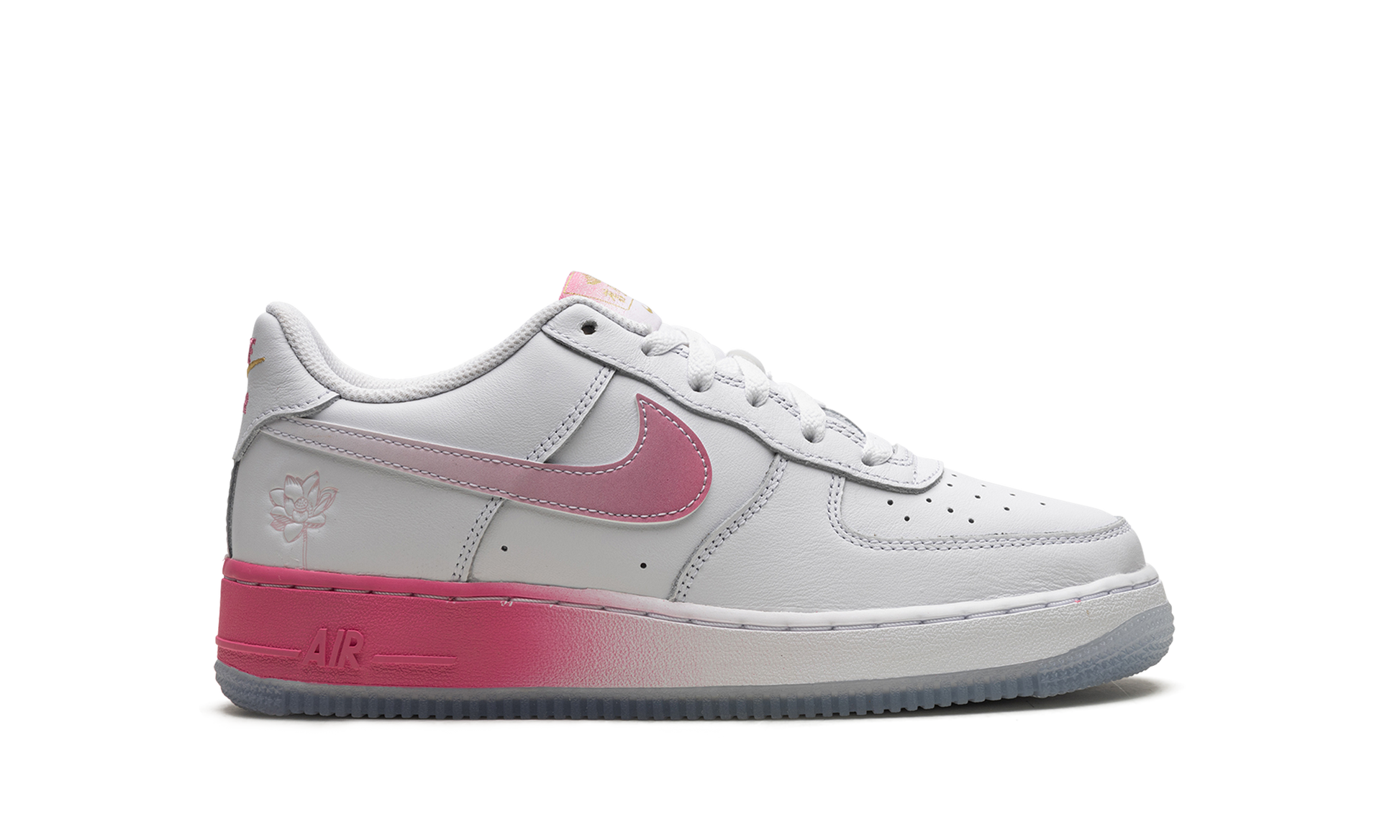 The Nike Air Force 1 Low GS “Gold Mountainâ€?is the youth sizing of the colorway that is inspired by San Francisco's Chinatown neighborhood. The “Gold Mountainâ€?or “San Francisco Chinatown.â€?the colorway's other nickname. features a white leather upper with gradient pink-to-white Swooshes on each side. A lotus flower is debossed on the lateral side of the heel. Additional branding elements include gold foil detailing on the tongue tag and traditional Chinese characters on the insole. A gradient pink midsole and icy blue translucent rubber outsole put the finishing touches on the colorway inspired by the oldest Chinatown neighborhood in the US. Release date: May 9. 2023