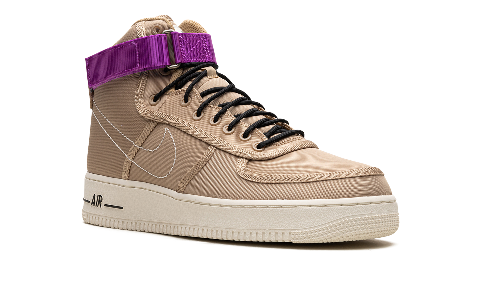 The Nike Air Force 1 High “Moving Companyâ€?is a colorway of the high-top retro basketball sneaker that's part of Nike's fictitious “moving companyâ€?collection. One of several different classic Nike sneakers from the “Moving Companyâ€?series. the Air Force 1 High seen here has a tan canvas construction to represent a cardboard moving box. A white outline Swoosh is located on either side. Fuchsia Dream-colored accenting appears on the ankle strap and heel tab. Underfoot. a white rubber midsole with black “Airâ€?detailing on the side completes the look. Release date: February 2. 2023