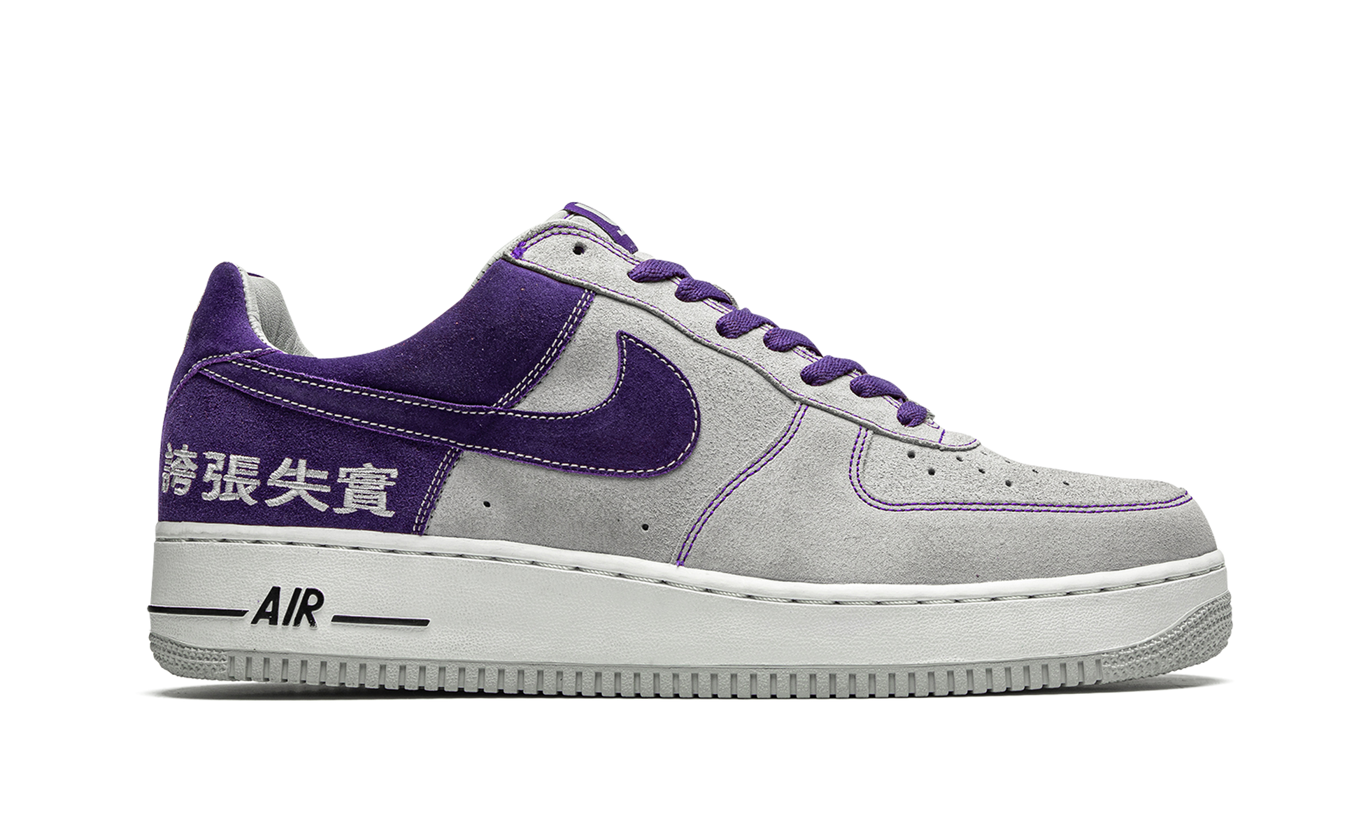 The Nike Air Force 1 Low “LeBron James - Chamber of Fear - Hypeâ€?is one of several colorways of the vintage basketball shoe modeled after the classic 2005 Nike ad campaign starring a young LeBron James. The “Chamber of Fearâ€?series found a young “King Jamesâ€?battling mental obstacles such as “Hype.â€?“Complacency.â€?“Hater.â€?“Self-doubt.â€?and “Temptation.â€?Each fear was transformed into a colorway of the Nike Zoom LeBron II and Air Force 1. What's more. Nike created vintage. Chinese-style kung fu films and posters for the advertisement. as well. The “Hypeâ€?colorway represents LeBron's battle with living up to sky high expectations. The shoe is designed in a two-tone. grey-and-purple look. Neutral Grey suede appears on the perforated toe. forefoot. mid-panel. and eyelets. The Swoosh. collar. heel. and tongue are designed in Varsity Purple suede. Traditional Chinese characters are embroidered on the heel. The purple nylon tongue tag features LeBron's signature old school “L23â€?branding. Finishing touches include purple laces. a grey rubber midsole with purple “Airâ€?branding. and a dark grey outsole.