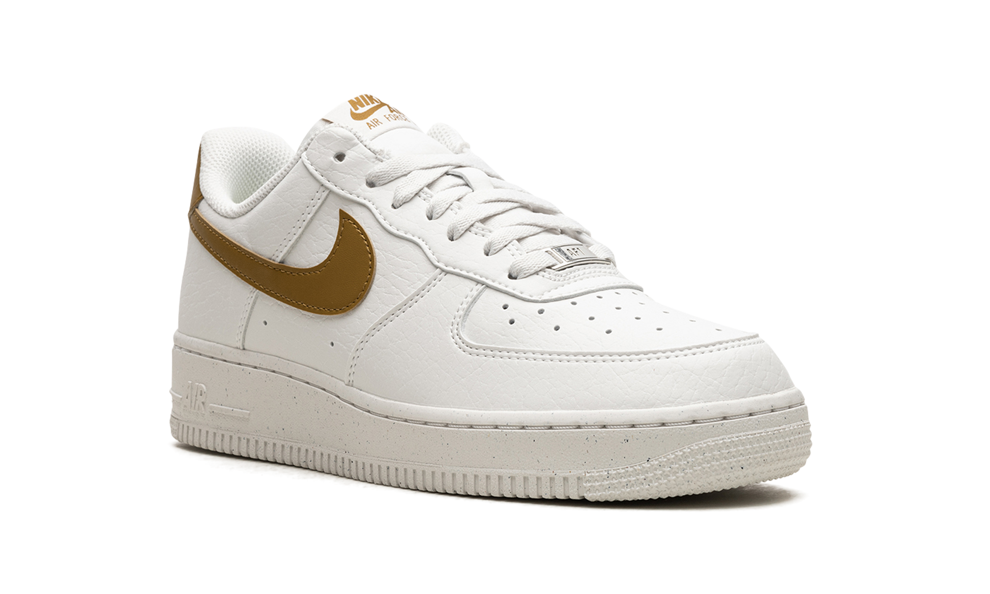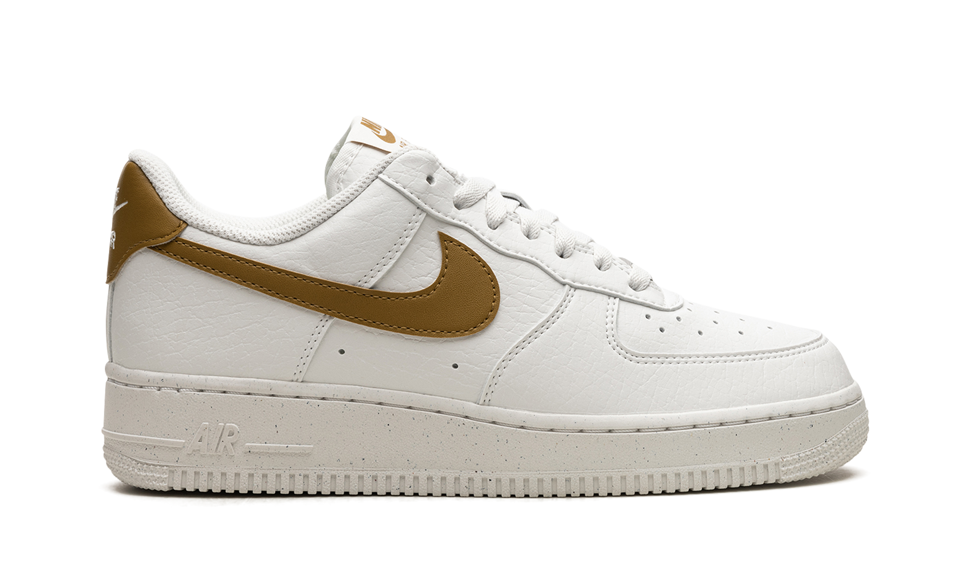 The Women's Nike Air Force 1 Low Next Nature "Bronzine" is a women's-exclusive colorway of the retro basketball shoe made from eco-friendly materials. Composed of at least 20% recycled content by weight. the Air Force 1 Low Next Nature is both sustainable and timeless in design. The “Bronzinoâ€?colorway has a white leather upper with tonal leather overlays and a gold. or Bronzino-colored leather Swoosh. More Bronzino detailing is featured on the leather heel tab and on the “Nike Air Force 1â€?branding on the tongue. Underfoot. a white rubber Nike Grind midsole made from recycled content completes the look. Release date: May 20. 2023