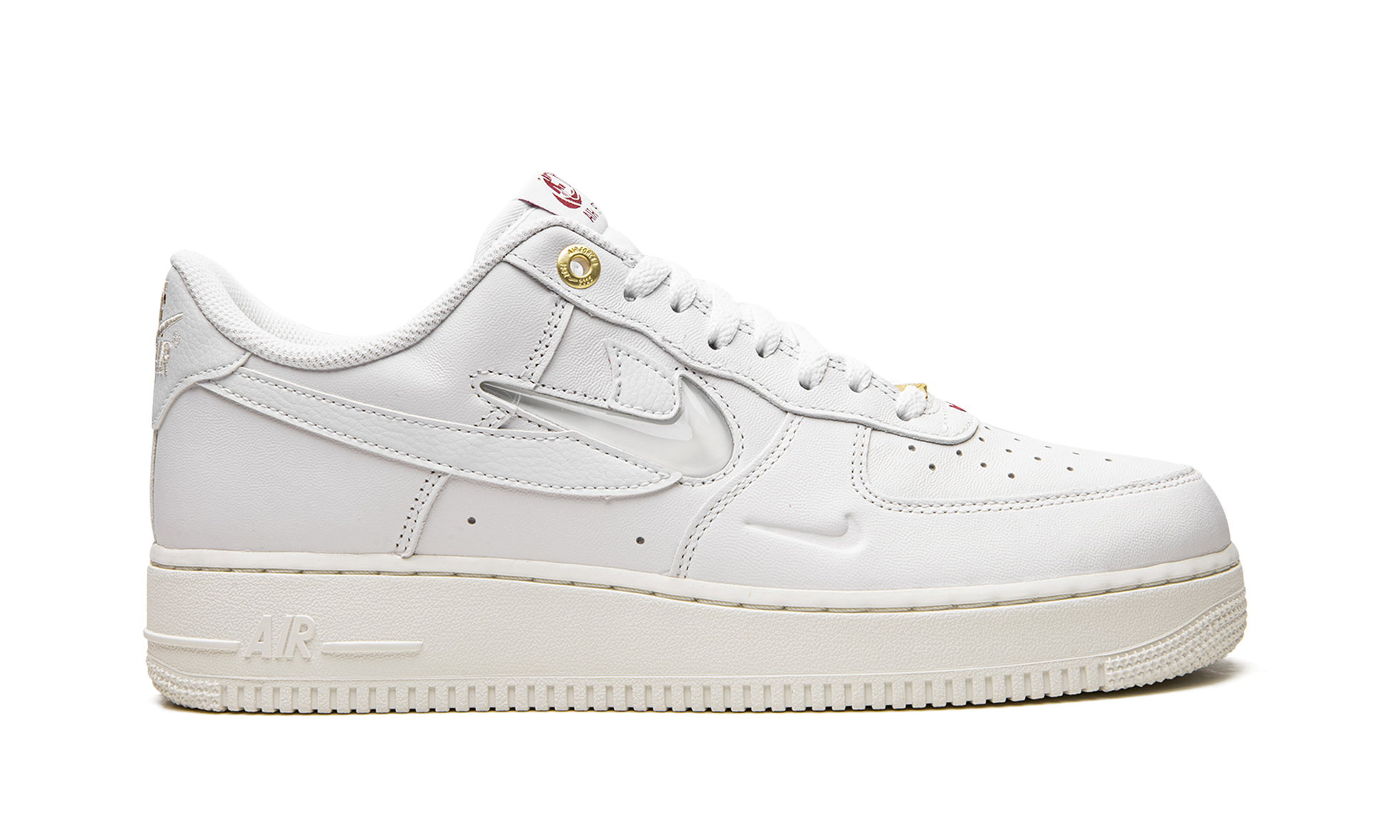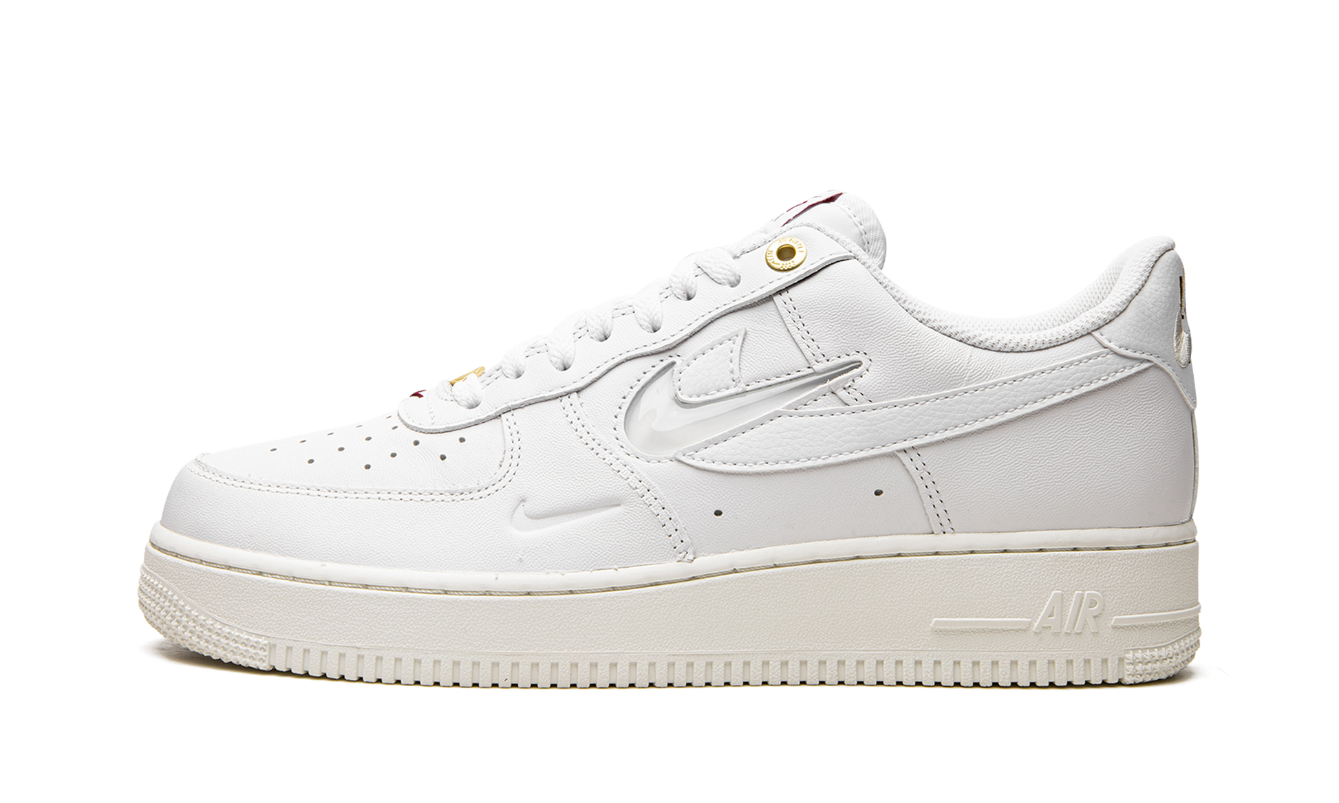 The Nike Air Force 1 Low “Join Forces - Sailâ€?is a colorway of the vintage basketball shoe that features dual Swooshes on its design in celebration of the model's 40th anniversary. One of several colorways from the “Join Forcesâ€?collection of Air Force 1s. the “Sailâ€?edition is complete with a white leather construction with a tonal jeweled Swoosh layered over a Sail leather Swoosh. Brown “Nike Airâ€?branding in an old school style is embroidered over white “Nike Airâ€?detailing on the heel tab. A small Swoosh is debossed on the lateral side of the forefoot overlay. Underfoot. a Sail-colored rubber midsole with tonal “Airâ€?branding completes the look.