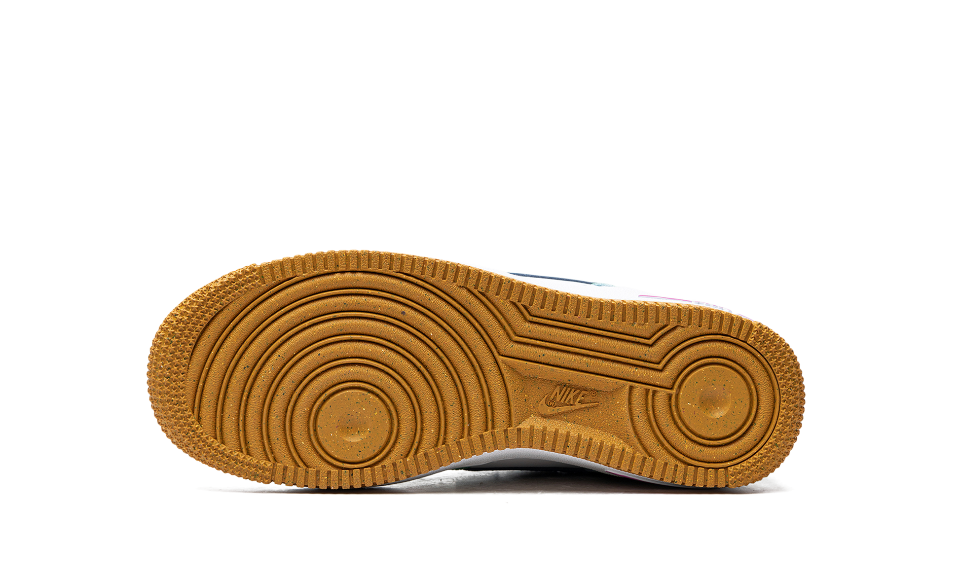 The Nike Air Force 1 Low GS “Playâ€?is the youth sizing of the old school basketball shoe in a unique colorway made from a combination of materials. The “Playâ€?Air Force 1 features a white leather base with contrasting mint green leather overlays and a dark teal leather Swoosh. “Playâ€?branding is found on the heel. The tongue is made from recycled fiber. and gives the shoe a distinctive look. Magenta-colored “Air Force 1â€?branding is found on the tongue. Inside the shoe. the insole is made with recycled content. A white rubber midsole with “Airâ€?branding on the lateral side of the heel and a gum rubber outsole complete the look.