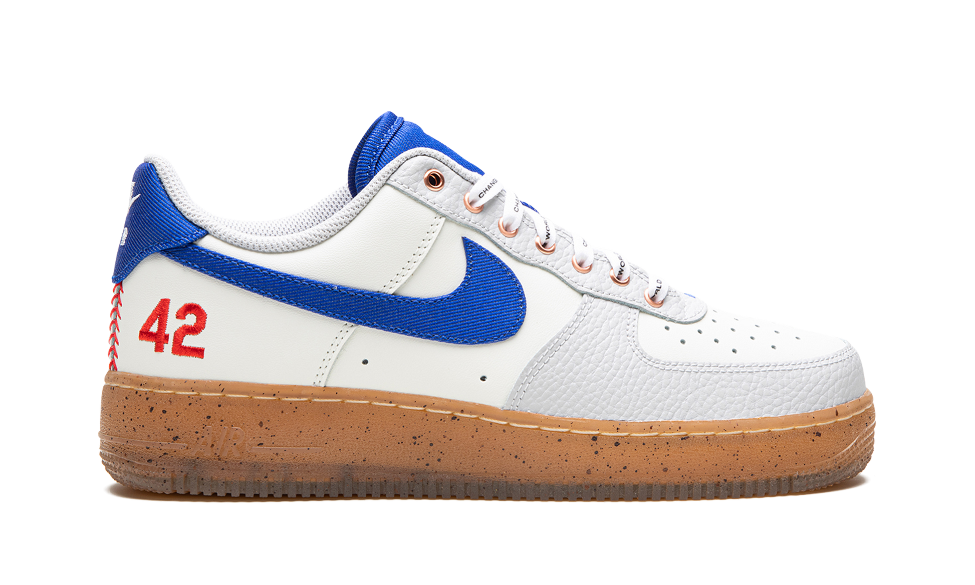 The Nike Air Force 1 Low “Jackie Robinsonâ€?is a special colorway of the vintage basketball and lifestyle shoe that honors the legacy of the iconic Baseball Hall of Famer and civil rights activist. Jackie Robinson is a former Brooklyn Dodger who broke baseball's color barrier in 1947 when he became the first Black player in Major League Baseball. On this Air Force 1. Nike celebrates his triumphant feat with special detailing in his honor. The shoe features a Sail leather construction with a Racer Blue Swoosh on the sides. A red â€?2â€?logo. inspired by Jackie's number with the Dodgers. is embroidered on the lateral side of the heel. The Brooklyn Dodgers “Bâ€?logo is embroidered on the Racer Blue tongue. “Change the Worldâ€?is printed on the laces and branding specific to Robinson appears on the insole. The shoe is complete with a brown speckled rubber sole inspired by baseball field dirt. Release date: April 15. 2023