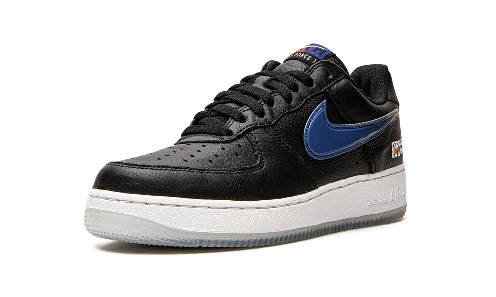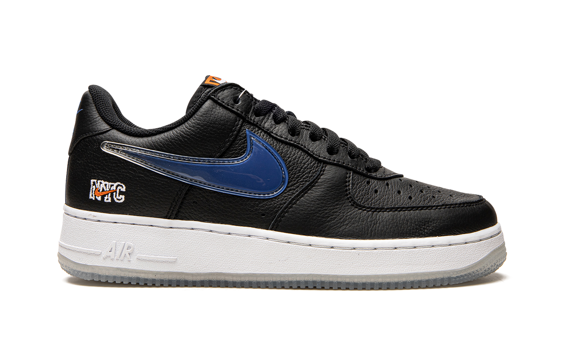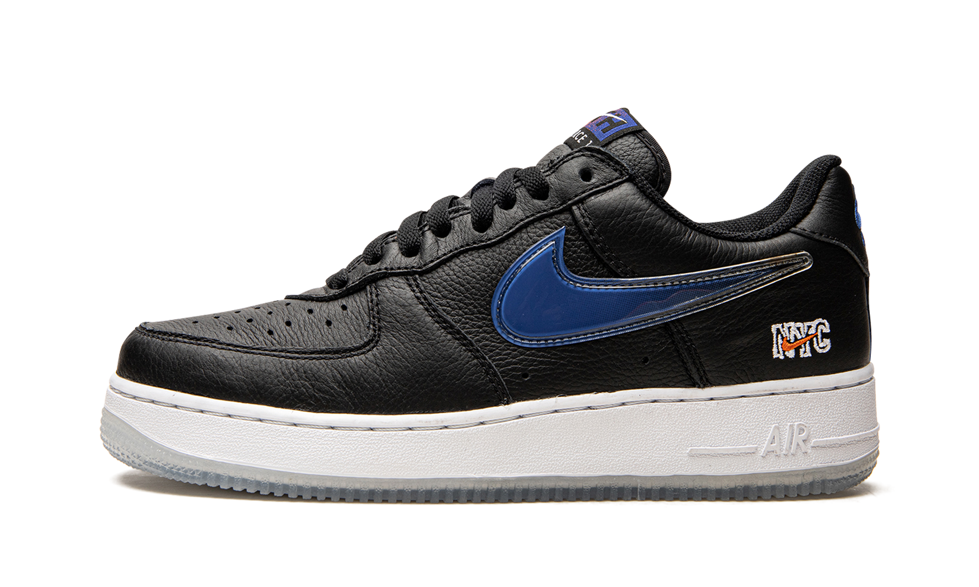The Kith x Nike Air Force 1 Low “NYC Awayâ€?is a collaboration between Ronnie Fieg's sneaker boutique and Nike on the vintage basketball shoe in the basketball-inspired “Homeâ€?and “Awayâ€?collection. The black based “Awayâ€?version of Kith's Air Force 1 Low looks to the boutique's home. New York City. and more specifically. the New York Knicks. for design inspiration. as the shoe features the team's uniform colors on its design. The black tumbled leather upper is contrasted by a blue jeweled Swoosh on either side and old school “NYCâ€?with an orange Swoosh branding hit on the lateral side of the heel. A “Kith Airâ€?logo with a Swoosh is embroidered on the heel. The detailing is a play on the Air Force 1's original “Nike Airâ€?branding. A gradient orange-to-blue “Kith Air Force 1â€?insignia appears on the tongue tag. Release date: December 25. 2021