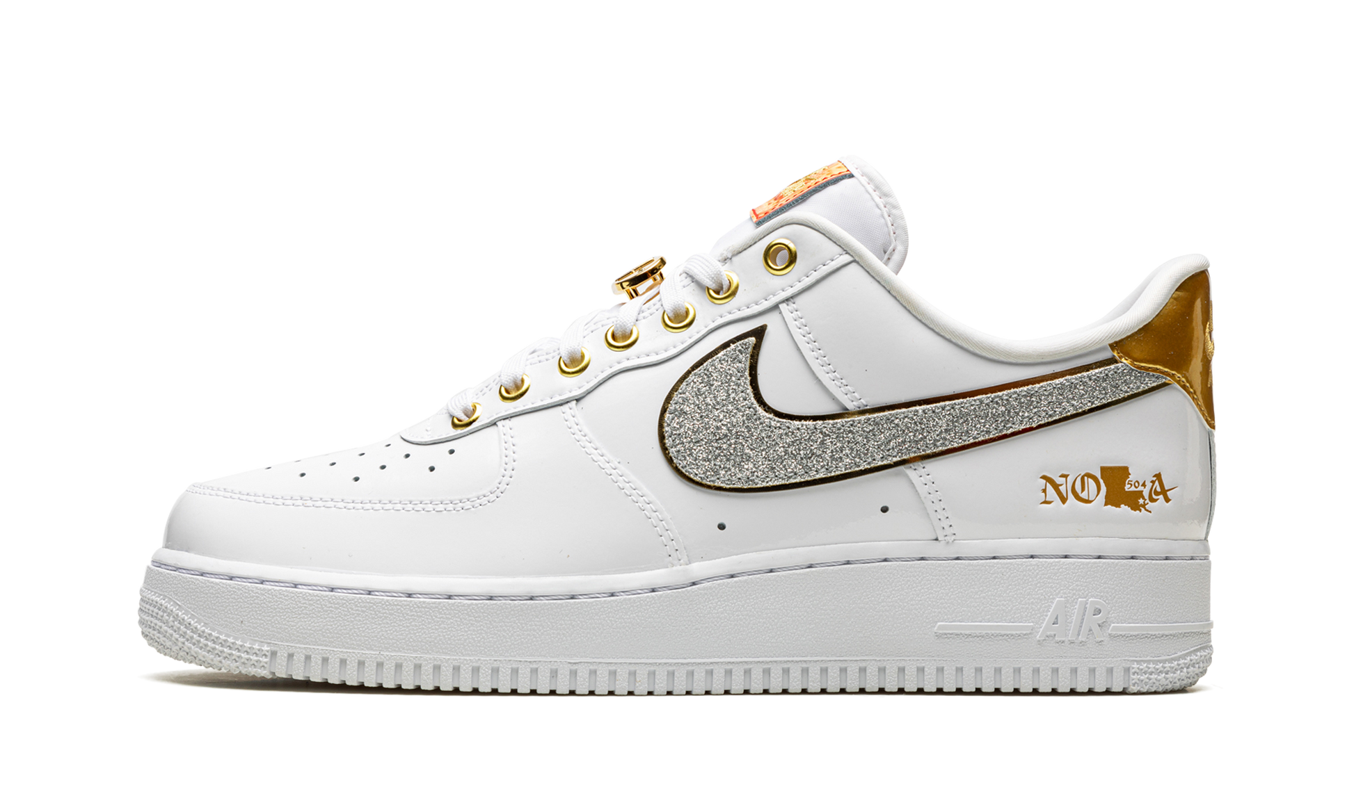 The Nike Air Force 1 Low “NOLAâ€?is a colorway of the popular shoe that celebrates New Orleans' vibrant culture. Nike celebrated the Air Force 1's 40th anniversary in 2022 by releasing the shoe in a variety of colorways. including a collection of styles dedicated to cities like Houston and New Orleans. The head-turning design for New Orleans dons a white leather upper with Shimmering Silver Swooshes on the sides that show love to the “Pen & Pixelâ€?style font found on hip-hop album covers by a variety of New Orleans' rappers. Unique Metallic Gold “NOLAâ€?branding appears on the lateral side of the heel. Additional Metallic Gold accenting is found on the “Nike Airâ€?branded heel tab and â€?04â€?lace dubrae. New Orleans is also honored on the tongue tag with a gradient sunrise design. Release date: November 2. 2022