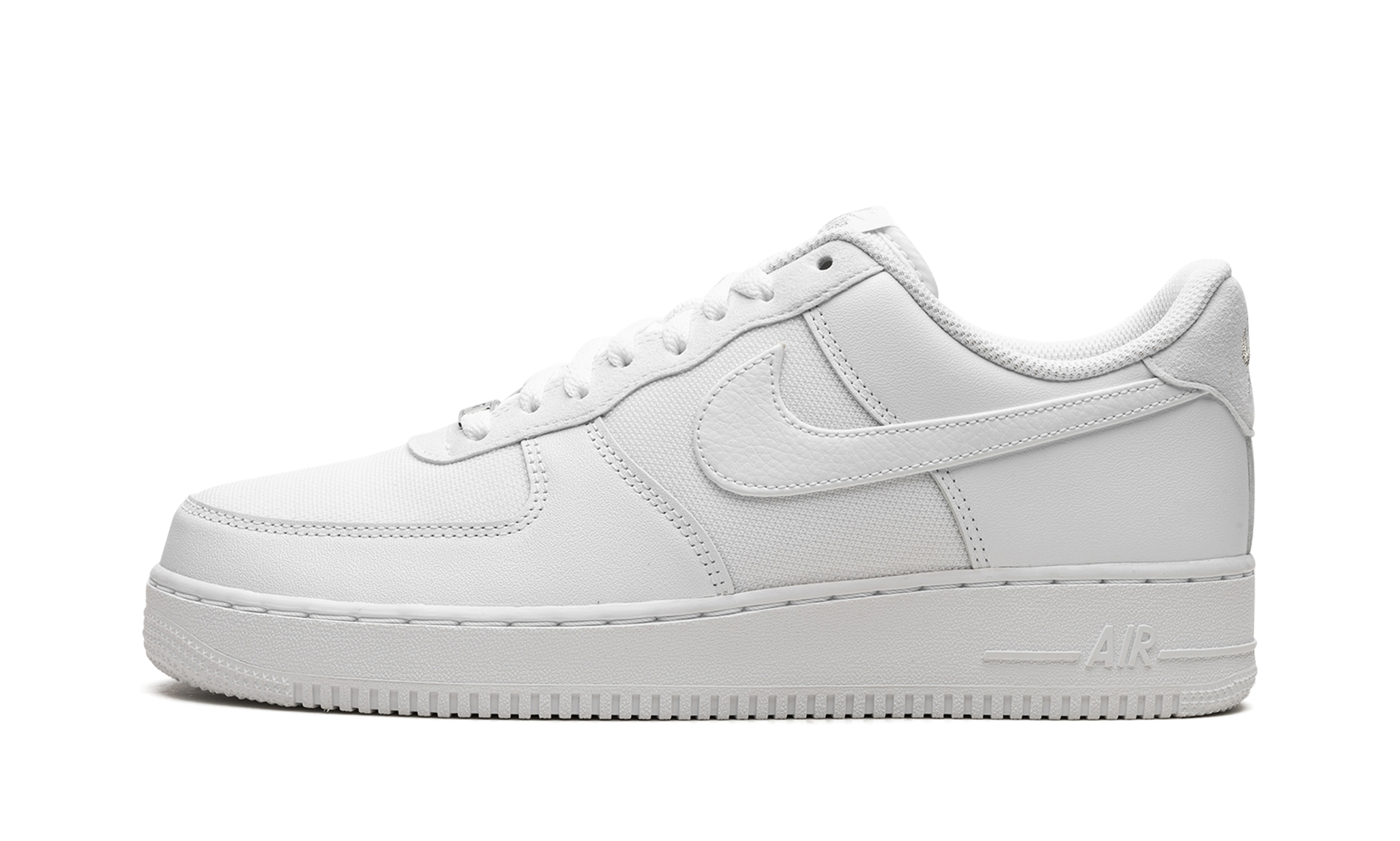 The Nike Air Force 1 Low "White/Metallic Silver" is a timeless colorway of the vintage basketball and lifestyle shoe with a canvas and leather construction. The “White/Metallic Silverâ€?is designed similar to the Air Force 1's “White on Whiteâ€?colorway in that features a monochromatic white appearance. but instead of a full-leather design. white canvas appears on the toe and mid-panel to go along with the white leather found on the toe cap. forefoot. eyelets. heel. and Swoosh. Classic Swoosh branding is displayed on the heel and a silver lace dubrae with “AF1â€?detailing is found on the vamp. Release date: April 25. 2023